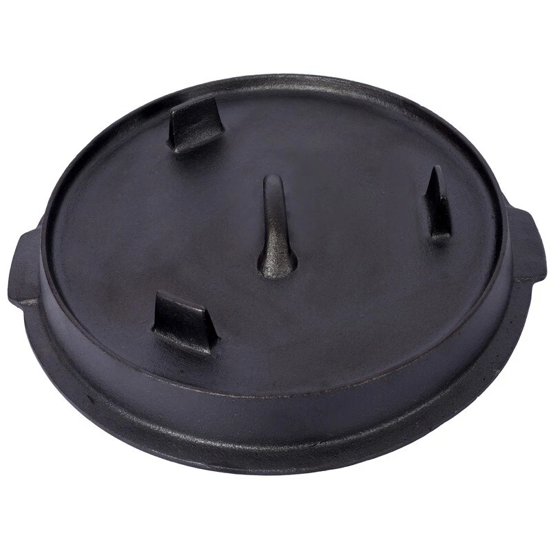 Features and Details: Crafted to endure the harshest of outdoor conditions, this is a camping essential. Whether you're simmering a hearty stew over an open campfire, baking a delicious cobbler in hot coals, or slow-cooking a savory meal during your wilderness escapades, this Dutch oven's excellent heat retention and even distribution ensure culinary success every time. It's the ultimate companion for creating unforgettable camping feasts. The Dutch oven's ingeniously designed lid is a true marvel of functionality. Fitted with sturdy legs, it seamlessly transforms into a skillet or griddle, unlocking a whole new realm of culinary possibilities during your camping trips. Whether you're craving crispy bacon for breakfast, searing succulent steaks for dinner, or flipping fluffy pancakes under the open sky, this dual - purpose lid has you covered. Designed with convenience at its core, this cast iron Dutch oven features a robust built-in carrying handle, enabling you to effortlessly tote it from your vehicle to the campsite. Moreover, the oven can be securely suspended from a tripod stand on level surfaces, providing you with unparalleled flexibility in your cooking setup. That's why we include a specialized dutch oven lid lifter, engineered to ensure a secure and hassle - free experience when handling hot lids. This essential accessory minimizes the risk of burns and accidental spills, allowing you to confidently maneuver the lid while cooking. Specification: Color: Black Main Material: Iron Product Dimensions:10.6"L×11"W×6"H Product Weight (lbs.): 13.5