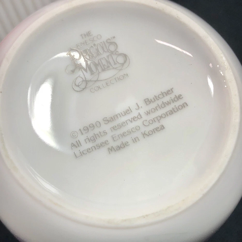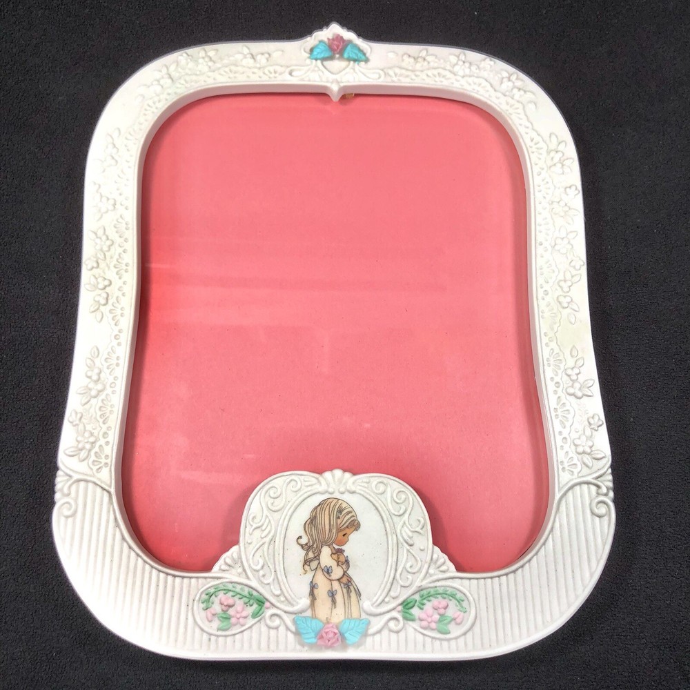 The Precious Moments Porcelain 8x10 Picture Frame from 1995 by Enesco features a delicate rose pattern on a classic white rectangular design. Made of high-quality porcelain, this photo frame can hold one 8x10 inch photo and measures 12 inches in height and 9 inches in width. Perfect for vintage collectors or those who appreciate timeless elegance in their home decor, this item captures the essence of the 1990s with its nostalgic design and intricate details.