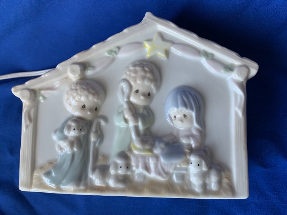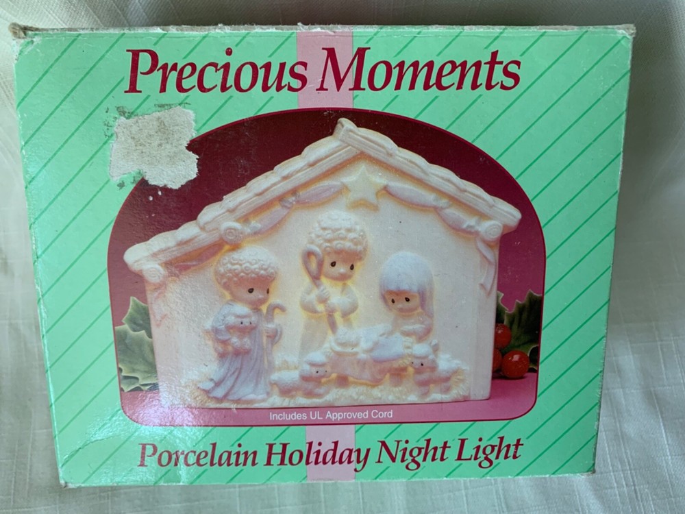1994 Precious Moments Porcelain Christmas Nativity Holiday Night Light in original box #112186B. This was part of my Great Aunt's Estate and has been box stored in my smoke free home ever since. DOWNSIZING EVERYTHING TO RAISE MONEY FOR MY DAUGHTER'S SURGERY. Ship via USPS Ground Advantage with NO HANDLING FEE and NO EXTRA SHIPPING FEE just the actual postage to ship this awesome Precious Moments Christmas Nativity to you. Thanks for looking and helping me raise money needed for my daughter's surgery. Many blessings...
