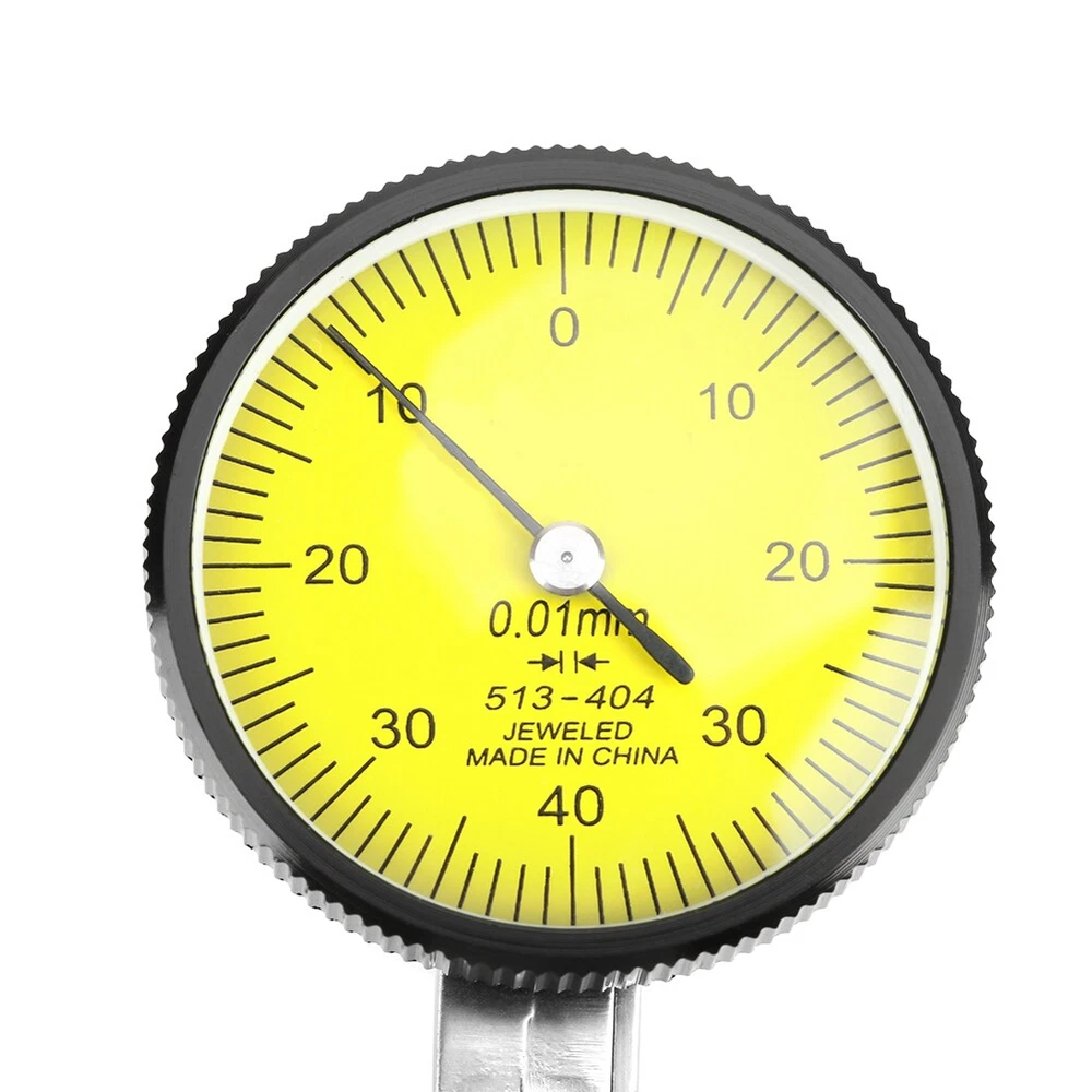 Feature: 1. It is designed to measure surface variations in narrow or recessed areas 2. Durable, accurate measurement, with high sensitivity and rapid response capability 3. The probe can be 180° rotation, free to adjust the measurement direction, left and right swing-type probe 4. Magnetic pointer and stylus can be used reliably in a magnetic environment 5. This dial test indicator is designed for measurement during machining, layout and inspection work Specification: Features: It is designed to measure surface variations in narrow or recessed areas. Durable, accurate measurement, with high sensitivity and rapid response capability. The probe can be 180° rotation, free to adjust the measurement direction, left and right swing-type probe. Magnetic pointer and stylus can be used reliably in a magnetic environment. This dial test indicator is designed for measurement during machining, layout and inspection work. Specifications: Shell Material: Aluminum + Plastic Color: Yellow Length: Approx. 76mm / 3in Diameter: approx. 32mm/1.26in Range: 0-0.8mm Graduations: 0.01mm Weight: Approx. 122g Package Included: 1 x Dial test indicator 1 x 3/8" Dovetail clamp 1 x 5/32" Dovetail clamp 1 x Molded case Note: Please note that the new type and old type of this product will be sent randomly, and make sure you will not mind before ordering.
