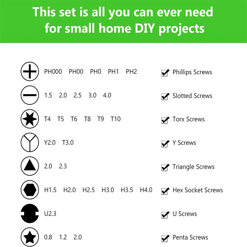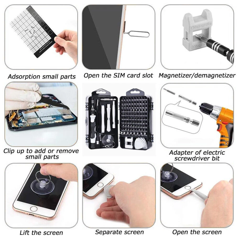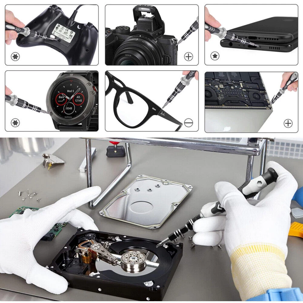 Pshcanyin DESCRIPTION PAYMENT SHIPPING RETURN POLICY CONTACT US Precision Magnetic Screwdriver Bit Set PC Phone Watch Repair TORX Tool Kit Case Magnetic precision bits and multi-functional: repair kits includes different types of screwdriver bit, and all the bits are magnetic, stably connect with the handle. Extension bar: The extra extension bar lengthens the handle, easy to reach narrow places. Handle: Ergonomically and non-slip handle for great comfort and precision. Good quality material: Made of chrome-vanadium steel, which is nontoxic, strong hardness, durable and precise. Multifunctional: Meets your different needs, such as repairing or opening your smart phone, tablet, laptops, mobile devices, wrist watches, eyeglasses and other electronic devices. Easy carry: Comes with a storage case for easy carry, you could carry to everywhere, it also helps keep the tools organized. Set 32 in 1 32 Precision Bits Included: This all-in-one set comes with 32 different bits, including Torx, Phillips, and flathead, ensuring you have the right tool for any job. Perfect for repairing smartphones, laptops, glasses, watches, and even toys. Set 115 in 1 Package includes: 98x screwdriver bits 1x handle (handle) 3x extension pieces (flexible, for bits with adjustable length, for socket wrenches) 1x tweezers 3x slot opener 1x suction cup 1x needle for Sim tray 6x triangular openers (3x large, 3x medium) 1x magnetizer/demagnetizer for tips Product Highlights Tool material: steel C45 + CRV + PP Case material: plastic 98 screwdriver bits: Phillips: 2*PH0000 2*PH000 2*PH00 2*PH0 2*PH1 2*PH2 Slot: SL1.0 SL1.3 2*SL1.5 2*SL2.0 2*SL2.5 2*SL3.0 2*SL3.5 2*SL4.0 Trox: T1 2*T2 2*T3 2*T4 2*T5 2*T6 2*T7 2*T8 2*T9 2*T10 2*T15 2*T20 Pentagonal: 2*P2【☆0.8】 2*P5【☆1.2】 P6【☆1.5】 P8【☆2.0】 Hex:H0.7 H0.9 H1.3 H1.5 H2.0 H2.5 H3.0 H3.5 H4.0 POZI: PZ000 PZ00 PZ0 PZ1 PZ2 Three-point: 2*Y0.6 Y2.0 Y2.5 Y3.0 Triangle: 2*△2.0 △2.3 △2.6 △3.0 U-Shape: 2*U2.6 2*U3.0 Square:S0 S1 S2 MID:W2.0 W2.0 SIM:0.8 1.0 4MM Socket:M2.5 M3.0 M3.5 M4.0 M4.5 M5.0 M5.5 ICS:PH2 Set 138 in 1 The screwdriver set has 138 sets,117 precision screwdriver bits, including 10 Damaged Screw Extractor Set,6 mini wrenches,and 21 practical accessories in the repair box.For example, suction cups, magnetizers,magnetic pads,ESD tweezers,crowbars, memory mat, etc.Whether you are a professional or an amateur,you can use this electronic equipment repair kit to meet all your needs.This repair kit is suitable for repairing iphone,computers,PCs,tablets,Xbox,PS4,Nintendo,watches,glasses, cameras etc. Item Specifics Brand : Unbranded Type : Watch Band Tool Color : silver Custom Bundle : No Material : Metal Model : no Suitable For : watch strap replacement Country/Region of Manufacture : China Seller Warranty : Yes Type of Tool : Link/Pin Remover Payment Shipping Returns Contact Us 1.We only accept PayPal. 2.Please double check your shiping address before payment,thank you. 1.We ship to your eBay or Paypal address. Please make sure your eBay and Paypal address is correct before you pay. 2.Item will be dispatched within 1-2 business days after receipt of full payment. 3.Items located in AU,Delivery time depends on destination and other factors 1.If the item you received is faulty, damaged or incorrect, or any further problems, you can return it for replacement or refund, please contact our customer service on eBay within 30 days from item received. 2.For damaged items on arrival, please contact us immediately, sending us an email with a photo is preferred. We will offer solutions to such cases. Full refund or replacement will be guaranteed. If you have any questions,please feel free to contact us,thank you. All rights reserved. Shop Category Store Home Fairy Lights Kitchen Supply ◈ Cake Decorations ◈ Food Storage Door Knobs Beauty Other Hot Item 200 Quart Size Vacuum Seal Bags 8x12 Embossed Food Saver Sealer Storage Bag 4Mil USD 32.80 10x T Bar Knob Stainless Steel Kitchen Cabinet Pulls Cupboard Door Handle Drawer USD 6.99 500 4x6 Fanfold Direct Thermal Shipping Labels Blank for Zebra and Rollo Printer USD 15.49 10Pcs Crystal Glass Clear Door Knob Drawer Cabinet Furniture Kitchen Handle Pull USD 9.91 4 Pack Vacuum Seal Bags Roll 8”x50’ Embossed Food Saver Sealer Storage Bag 4 Mil USD 33.86 Delivery New List Item 100x Clear Packing List Pouches 7.5 x 5.5 Shipping Label Envelopes Self Adhesive USD 8.99 2"x1" Direct Thermal Labels Barcode FNSKU / UPC/ FBA 1300/Roll for Zebra & Rollo USD 7.98 7in1 External CD DVD Drive Type C USB3.0 Disc Player Burner Writer For Laptop PC USD 19.90 999000LM LED Headlamp Headlight Zoomable Head Torch Lamp Flashlight Rechargeable USD 11.88 9-Eye Projector Laser Light RGB DMX Strobe Beam Stage Lighting Party Club Lights USD 49.79 Help & Info Payment Policy Shipping Policy Return Policy FAQ About Us