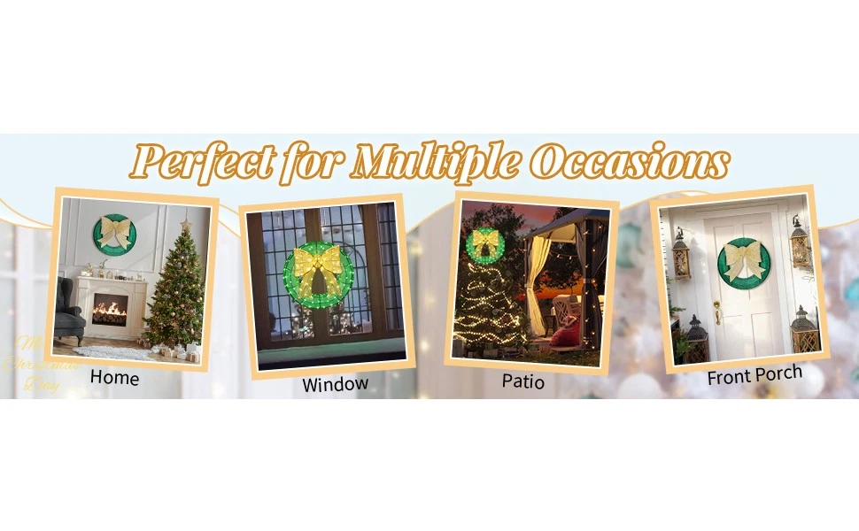 listing template VISIT OUR STORE SIGH UP FOR EMAIL Pre-lit In/Outdoor 24" Christmas Wreath with LED Light, Holiday Party Decoration 24in Pre-lit Outdoor Christmas Wreath Decoration, Lighted Metal Wreath with Golden Bow, Green and Warm White LED Lights, for Front Door Gate Wall Indoor Outdoor Holiday Party Introd uctions: Bring festive cheer to your home this holiday season with our stunning pre-lit outdoor wreath. Designed to add a touch of warmth and elegance to any space, this wreath is the perfect centerpiece for your front door, porch, or gate. Its large size makes it a standout addition to your holiday decor, creating an inviting atmosphere for friends, family, and guests. With weather-resistant materials and sturdy construction, this wreath is built to withstand the elements, ensuring it remains a beautiful part of your celebrations year after year. Easy to set up and store, it's the perfect combination of style and convenience for your seasonal decorating needs. Features: 1. Holiday Wreath & Golden Bow: Elevate your holiday decor with this eye-catching wreath and elegant golden bow. Its festive design will transforming your gate, garage, or exterior walls into a dazzling Christmas display. 2. Eye-catching LED lights: Pre-lit with well-placed LED lights, it creates a beautiful glow that illuminates your space beautifully at night. The lights bring your outdoor decor to life, making your home the highlight of the neighborhood during the holidays. 3. Easy Assembly: This collapsible Xmas wreath can be set up in minutes, allowing you to enjoy your festive decoration without hassle. The lights are pre-installed, simply connect the wires, plug it in, and enjoy your dazzling holiday display. 4. Weather-Resistant and Sturdy Build: Made from a durable, rustproof metal frame with sturdy fabric, this outdoor wreath is designed to withstand winter conditions like rain, snow, and wind, ensuring it remains a beautiful part of your holiday decor year after year. 5. Perfect Holiday Decor for Indoor & Outdoor: Whether you hang it on your front door, window, porch, yard, or living room wall, this lighted wreath enhances any space with festive warmth. Its lightweight design makes it easy to move and position them wherever you want to spread holiday cheer. Specifications: 1. Number of Lights: 200 pcs 2. Light Color: Green & Warm white 3. Voltage: 4.5V 4. Power: 3.6W 5. Overall Dimensions: (23.6 x 6.7 x 23.6) in / (60 x 17 x 60) cm Package Includes: 1 x Christmas Wreath Decoration Shipping Policy 1. Ship worldwide from New Jersey by reliable shipping companies -- USPS, UPS, FEDEX, DHL, etc., and only to VERIFIED PAYPAL ADDRESS. Transport Delivery ETA. Package handling only takes 1 business day at our warehouse, so please make sure entering correct payment and shipping information before checking out. Once your payment is completed, we are not going to accept any more changes to your order. 2. International Buyers – Please Note: a. Import duties, taxes and charges are not included in the item price or shipping charges. These charges are the buyer's responsibility. b. Please check with your country's customs office to determine what these additional costs will be prior to bidding/buying. 3. Please check your shipping address carefully before checkout, it can't be changed if order completed. 4. Orders placed on weekend will be shipped within 2 days.Notification of shipment with tracking number will be sent to buyers. 5. Standard shipping: 2-7 business days Expedited Shipping: 2-3 business days One-day Shipping: 1 business day International shipping: Varies 6.Ship within 1 business day once payment completed. Notification of shipment with tracking No. will be sent to buyer. 7.We offer discounts for combine shipping. Please contact us first if you need combine shipping, and an invoice with discount will be sent to you. 8.Please allow 5 business days for delivery to US destinations on any eBay orders and 14 business days for delivery to any International destinations. We highly recommend our buyer choose priority/expess mail for international delivery which is much more stable. Return Policies 1. Refunds given only if item DOA and cannot be replaced via PAYPAL . If so, Please contact us with 5 days since you receive the item and and return to us within 30 days from the delivery date for exchange or refund. 2. If you need return, please contact our customer service representative, let us know the detailed problem and send us some pictures for confirmation. Payment Payment should be sent within 8(EIGHT) days of auction closing. Feedback If you are dissatisfied for any reason, please do not be quick to leave negative/neutral feedback. We work hard to make sure EVERY CUSTOMER 100% SATISFIED and resolve any problem for you. Work Time Work Time: Monday to Saturday About Us | Newsletter| Feedback| Contact Us Copyright © 2022 LikeDeal. All rights reserved. 无标题文档 Pre-lit In/Outdoor 24" Christmas Wreath with LED Light, Holiday Party Decoration 24in Pre-lit Outdoor Christmas Wreath Decoration, Lighted Metal Wreath with Golden Bow, Green and Warm White LED Lights, for Front Door Gate Wall Indoor Outdoor Holiday Party Introd uctions: Bring festive cheer to your home this holiday season with our stunning pre-lit outdoor wreath. Designed to add a touch of warmth and elegance to any space, this wreath is the perfect centerpiece for your front door, porch, or gate. Its large size makes it a standout addition to your holiday decor, creating an inviting atmosphere for friends, family, and guests. With weather-resistant materials and sturdy construction, this wreath is built to withstand the elements, ensuring it remains a beautiful part of your celebrations year after year. Easy to set up and store, it's the perfect combination of style and convenience for your seasonal decorating needs. Features: 1. Holiday Wreath & Golden Bow: Elevate your holiday decor with this eye-catching wreath and elegant golden bow. Its f