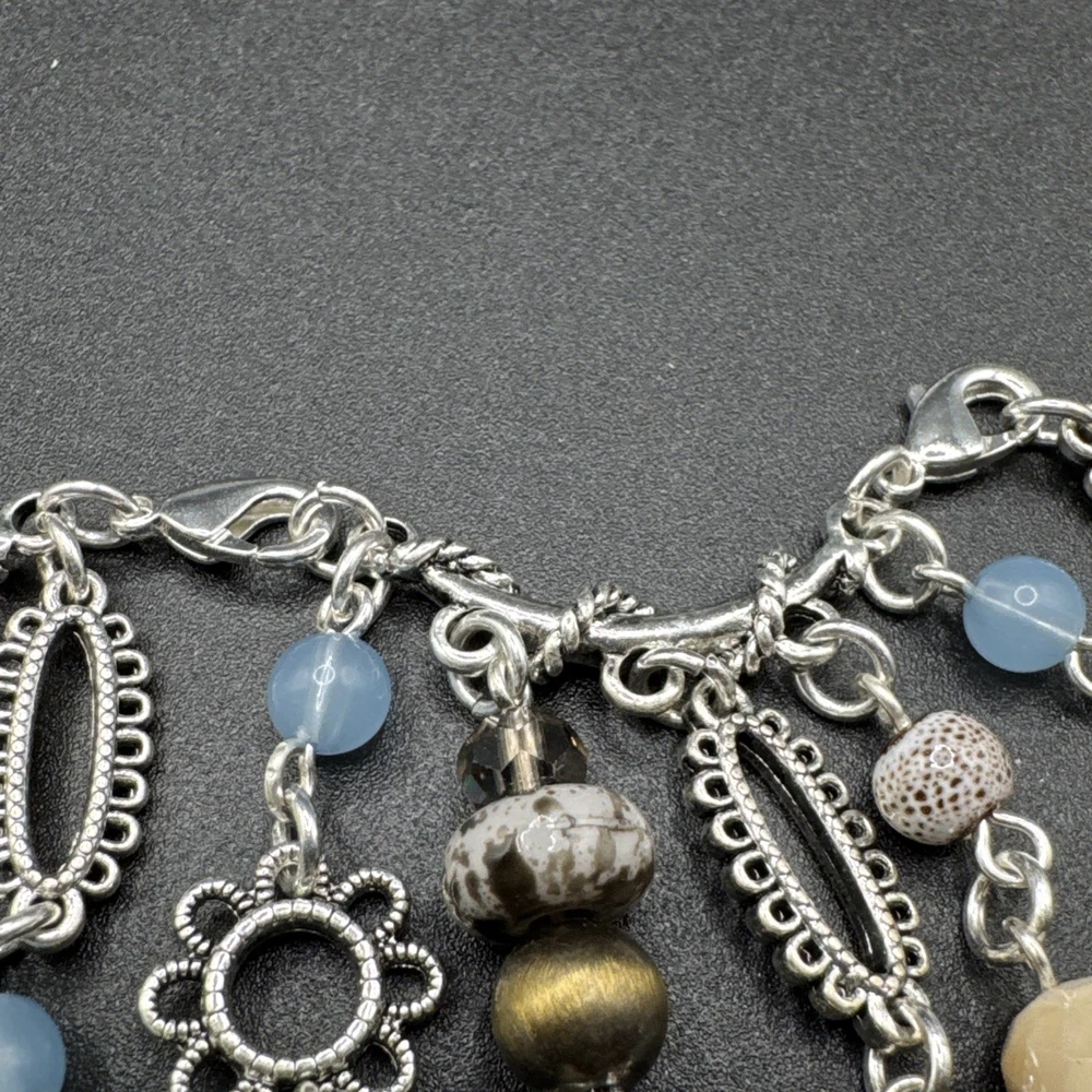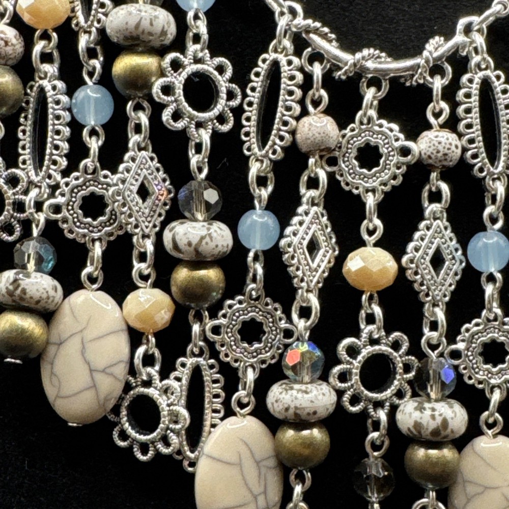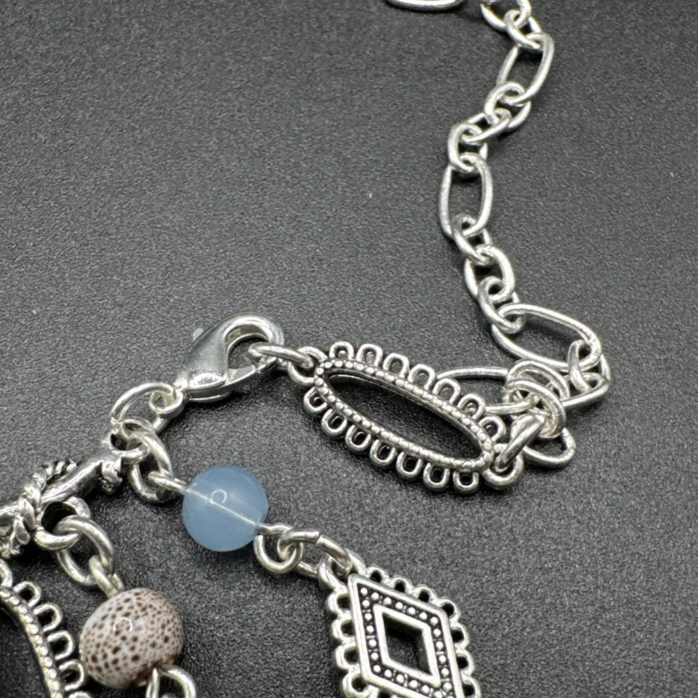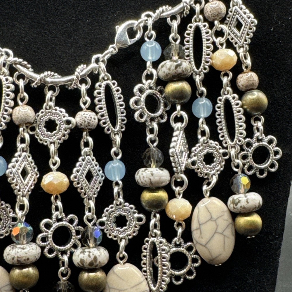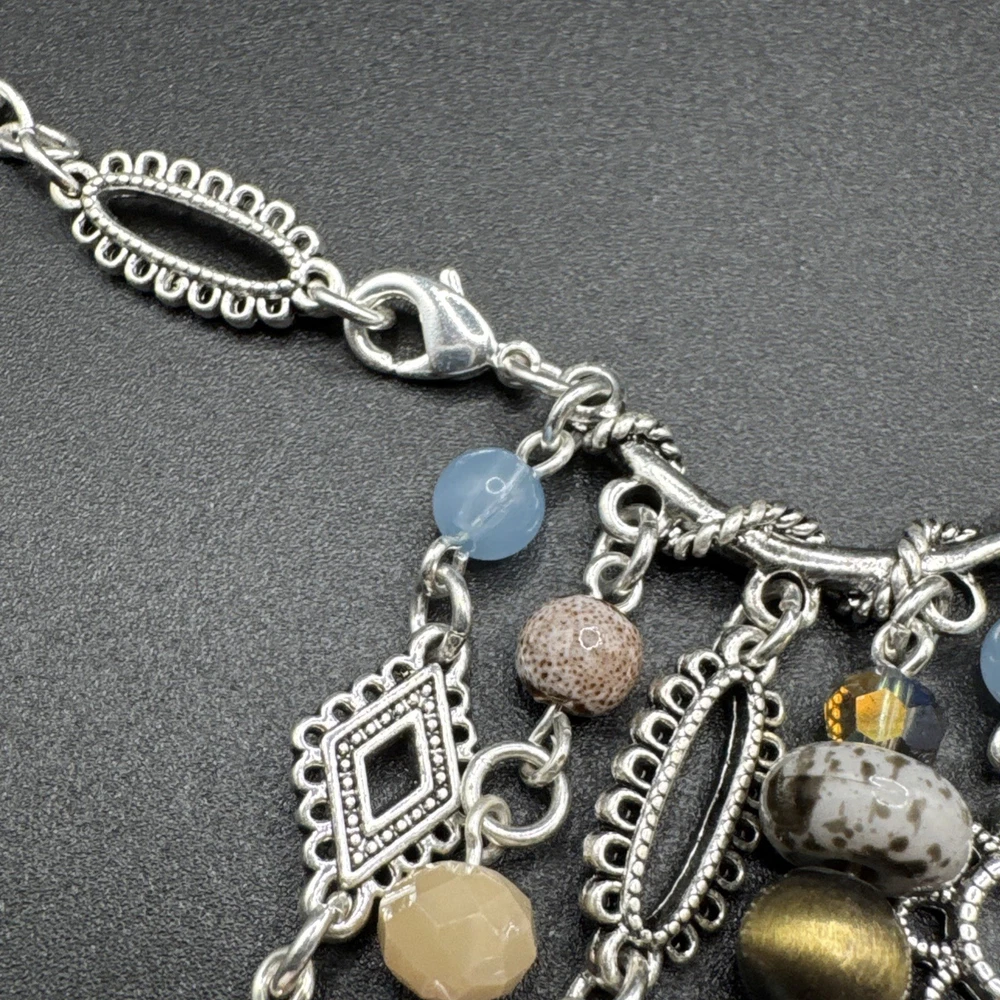 Elevate your jewelry collection with the Premier Designs Grand Canyon Charm Fringe Necklace. This stunning piece showcases a beautiful blend of blue and silver tones, with an oval-shaped pendant that houses a vibrant multicolor main stone. The necklace extends to a generous length of 36 inches, plus an additional 4 inches of extender, providing a comfortable and versatile fit for any occasion. Crafted with high-quality acrylic materials and featuring a lobster closure, this necklace is designed to be interchangeable, perfect for updating your look on the go. Ideal for a variety of special occasions, including birthdays, graduations, Mother's Day, and Valentine's Day, it's a statement piece that's both stylish and timeless.