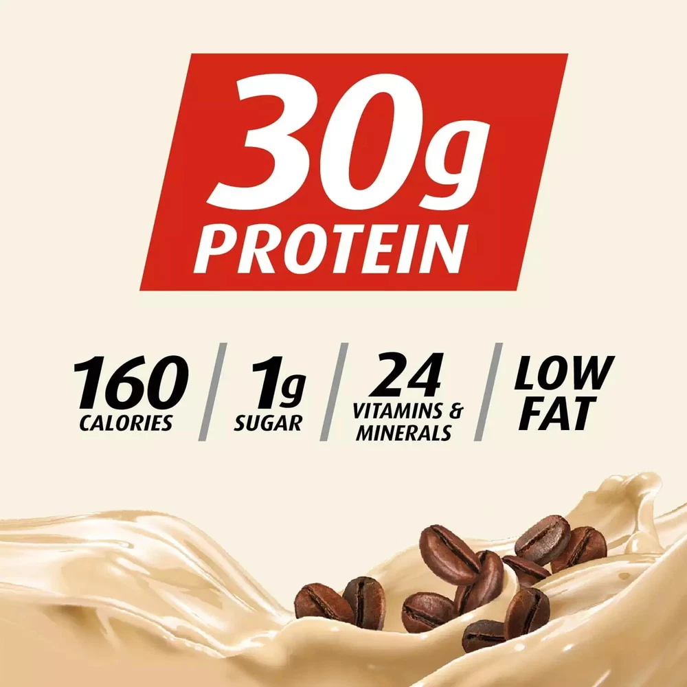 Premier Protein Shake, Café Latte, 30g Protein, 11 Fl Oz, 12 Ct ABOUT THIS ITEM Café Latte 30g Protein Shake has caffeine = 1 cup of coffee to start your day. This item is shipped as a pack of 12 individual shakes. Each Premier Protein Shake contains 30 grams of protein, complete with all of the essential amino acids, 1g of sugar, 3-5g carbs (depending on flavor), 160 calories, 24 vitamins & minerals, and is also low in fat. We use a proprietary blend of milk protein and casein in our shakes to help fuel muscles quickly and for several hours to help support your goals. Enjoy a shake as a healthy snack, a breakfast on-the-go, an afternoon snack, or as pre- or post-workout fuel. They are delicious as is but are also highly customizable. Try blending with your favorite fruits and vegetables for a delicious smoothie or adding to cereal or oatmeal. Available in 12 delicious flavors: Chocolate, Vanilla, Café Latte, Caramel, Cookies & Cream, Strawberries & Cream, Bananas & Cream, Peaches & Cream, Cinnamon Roll, Chocolate Peanut Butter, Cake Batter Delight, and Cookie Dough. Rise and shine with the luscious creamy coffee flavor and energy from caffeine equal to 1 cup of coffee; Winner of American Masters of Taste Gold Medal for SUPERIOR TASTING ready-to-drink protein beverages. 30g of protein to help curb your hunger, as a mid-day snack or for post workout recovery; includes all essential amino acids. 24 Vitamins and Minerals: Support a healthy immune system as part of a healthy diet and lifestyle (Antioxidants Vitamins C and E plus Zinc), 50 percent daily value of calcium and 30 percent daily value of Vitamin D to help maintain healthy bones. Guilt free indulgence: 1g Sugar, 3-5g Carbs (depending on flavor), 160 Calories and Low Fat; Gluten Free, Keto and Bariatric Friendly, Kosher. NOTICE: Use this product as a food supplement only. Do not use for weight reduction. Try all twelve (12) flavors: Chocolate, Vanilla, Caramel, Cookies & Cream, Cafe Latte, Chocolate Peanut Butter, Strawberries & Cream, Peaches & Cream, Bananas & Cream, Cinnamon Roll, Cake Batter Delight, and Cookie Dough