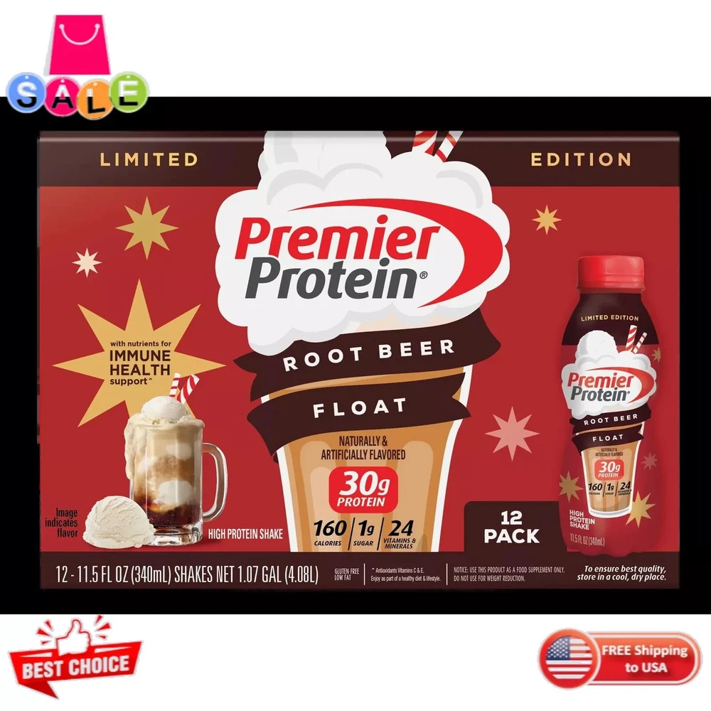 Packaged in a recyclable 11.5 fl oz bottle, each Premier Protein Shake contains 30 grams of protein, complete with all of the essential amino acids, 1g of sugar, 3-5g carbs (depending on flavor), 160 calories, 24 vitamins & minerals, and is also low in fat. We use a proprietary blend of milk protein and casein in our shakes to help fuel muscles quickly and for several hours to help support your goals. Enjoy a shake as a healthy snack, a breakfast on-the-go, an afternoon snack, or as pre- or post-workout fuel. They are delicious as is but are also highly customizable. Try blending with your favorite fruits and vegetables for a delicious smoothie or adding to cereal or oatmeal. Available in 12 delicious flavors: Chocolate, Vanilla, Cafe Latte, Caramel, Cookies & Cream, Strawberries & Cream, Bananas & Cream, Peaches & Cream, Cinnamon Roll, Chocolate Peanut Butter, Cake Batter Delight and Cookie Dough, root beer floated. Enjoy the deliciously smooth bananas and cream flavor; Winner of American Masters of Taste Gold Medal for SUPERIOR TASTING ready-to-drink protein beverages. 30g of protein to help curb your hunger, as a mid-day snack or for post workout recovery; includes all essential amino acids. 24 Vitamins and Minerals: Support a healthy immune system as part of a healthy diet and lifestyle (Antioxidants Vitamins C and E plus Zinc), 50 percent daily value of calcium and 30 percent daily value of Vitamin D to help maintain healthy bones. Guilt free indulgence: 1g Sugar, 3-5g Carbs (depending on flavor), 160 Calories and Low Fat; Gluten Free, Keto and Bariatric Friendly, Kosher. We're all in it together when it comes to helping out the environment! That's why we've designed a more sustainable shake bottle. We've lowered our carbon footprint and created a bottle that's easier to recycle by using less material, eliminating the foil seal on the bottle, and switching to PET plastic. Oh, and don't worry- your shakes will still taste just as amazing as always! Skip the hassle of protein powder with the convenience of this ready to drink protein shake; great on the go nourishment that also pairs well with coffee, cereal, a pancake recipe, or in your favorite smoothie. NOTICE: Use this product as a food supplement only. Do not use for weight reduction. Contains: Milk & Soy Try all twelve (12) flavors: Chocolate, Vanilla, Caramel, Cookies & Cream, Cafe Latte, Chocolate Peanut Butter, Strawberries & Cream, Peaches & Cream, Bananas & Cream, Cinnamon Roll, Cake Batter Delight, and Cookie Dough Brand Premier Protein Flavor Root Beer Float Manufacturer Premier Nutrition Corporation Size 11.5 fl oz Vitamin & Supplement Type Amino Acid Supplements, Letter Vitamins, Performance Supplements, Protein Supplements, Pre-Workout Supplements Food Form Liquids Allergen-Free Statements Wheat-Free, Gluten-Free Gender Unisex Multipack Quantity 1 Age Group Adult Count Per Pack 12 Assembled Product Dimensions (L x W x H) 10.13 x 7.69 x 7.25 Inches