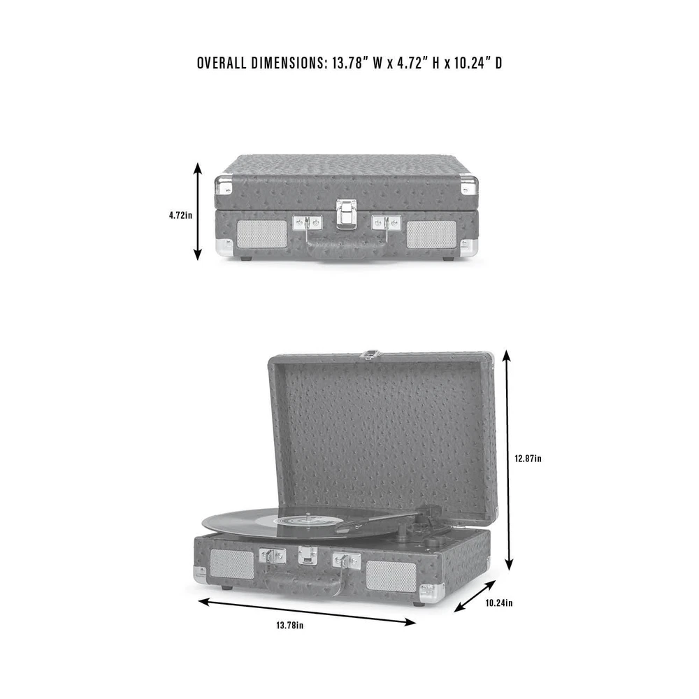 6Ft Folding Table Indoor Outdoor Scratch Resistant Table Built-in Carry Handle 69.45 USD 73.11 USD Free shipping 5% off 1-Drawer Nightstand Side End Table Bedside Table Open Storage Organizer Shelf 81.26 USD 85.54 USD Free shipping 5% off Ergonomic Mesh Task Chair Adjustable Office Chair with Plush Padded Seat Black 42.04 USD 44.25 USD Free shipping 5% off Pro-Max PillarLock Side-by-Side Double Rifle Case Black Gun Case for Rifles Gun 78.59 USD 82.73 USD Free shipping 5% off 72ft 200 LED Color Changing Outdoor Rope Lights with Remote Waterproof New 37.82 USD 39.81 USD Free shipping 5% off Queen Size 7" Steel Bed Frame Easy to Assemble No Tools Needed Bed Frame Black 61.86 USD 65.12 USD Free shipping 5% off Full 14" High Profile Foldable Steel Platform Bed Frame No Box Spring Required 74.23 USD 78.14 USD Free shipping 5% off 50 Yellow LED Twinkle Lights 25ft Green Wire Energy Efficient Christmas Decor US 30.93 USD 32.56 USD Free shipping 5% off 5 Piece Reversible Bed in a Bag Comforter Set with Sheets Artic White Twin-XL 37.82 USD 39.81 USD Free shipping 5% off Compact Countertop Microwave Oven 700W LED Display Kitchen Timer Child Lock New 68.87 USD 72.49 USD Free shipping 5% off Set of 100 Orange LED Mini Christmas Lights 4" Spacing White Wire Indoor Outdoor 32.9 USD 34.63 USD Free shipping 5% off 5 Quart Round Enameled Cast Iron Dutch Oven Nonstick Cooking Pot W/ Lid New 77.33 USD 81.4 USD Free shipping 5% off Some say you can’t improve on a classic, but we are here to prove them wrong with the Crosley Cruiser Premier with dramatically improved sound quality. We took the quintessential Cruiser design and upgraded it with Bluetooth output functionality, so now you can listen to your favorite records on the speaker system of your choice! We retained all the classic features you know and love — the charming portable suitcase shell in a rainbow of colors, three speeds and pitch control for all your listening needs, and a Bluetooth receiver and built-in speakers so you can listen on the go — but with the added option to pair it with your favorite external speakers via Bluetooth output. You asked and we delivered: Classic Cruiser design plus improved functionality is here with the Crosley Cruiser Premier. New and Improved Sound Quality 3–Speed Turntable (33 1/3, 45 & 78 RPM) Built-in Bluetooth Receiver Built-in Full-Range Stereo Speakers Adjustable Pitch Control Cueing Lever Aux Input RCA Output Headphone Jack Bluetooth Out Enhanced Listening Experience You may also like 8.5" x 11" Copy Paper Printer Paper 20 lb White 500 Sheets for Home Office US 10.58 USD Free shipping Great Value 3 Pack Crispy Nutter Butter Peanut Butter Wafer Cookies 10.5 Oz NEW 21.2 USD Free shipping Frost Locking & Stacking Utility Box Tool Box Plastic 11.5" x 5.06" x 7.25" US 13.07 USD Free shipping 20" x 20" Ophelia Taupe Plaid Cotton Decorative Pillow Living Room Throw Pillows 21.76 USD Free shipping Black Rust-Oleum Stops Rust Custom Sprays 5-in-1 Gloss Spray Paint 12-oz 15.16 USD Free shipping Butter Powder 2 Lbs 4 Oz No.10 Can for Food Storage Emergencies Survival Camping 36.63 USD Free shipping 8ft Giant Cute Blow Up Snowman Inflatables Christmas Outdoor Yard Decoration US 61.27 USD Free shipping Halloween Mini PE Jack-o'-Lantern Blow Mold Decor 17 in Outdoor Yard Decor New 21.77 USD Free shipping 6 Triple Rolls Select-A-Size Paper Towels Absorbent Quick Cleanup Perforated New 42.87 USD Free shipping Tear-a-Square Paper Towels 12 Double Rolls White for Kitchen Bathroom US 19.03 USD Free shipping 12oz Gingerbread House Glazed Stoneware Ceramic Stacking Mug Set with Metal Rack 18.92 USD Free shipping Heavy Duty Adjustable Steel Wire Rack 3-Shelf Storage Organizer Shelving Black 49.58 USD Free shipping
