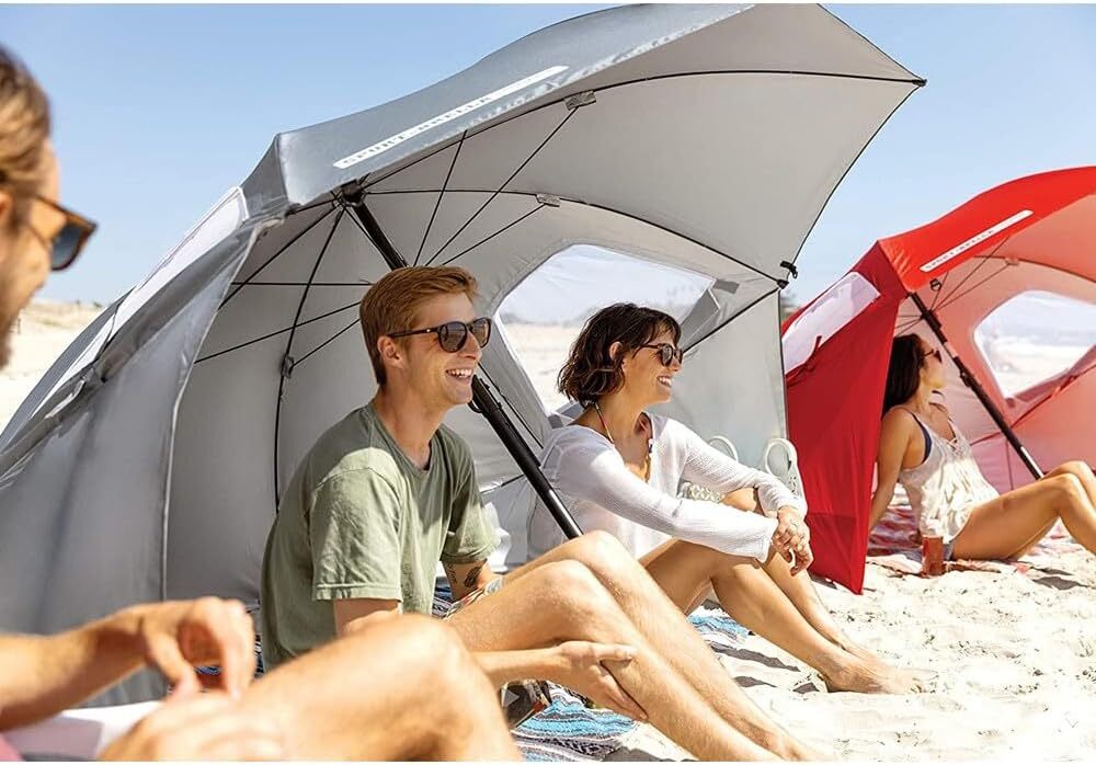 Product Description Premiere UPF 50+ Umbrella Shelter for Sun and Rain Protection (8-Foot, Gray) 8-foot umbrella canopy features UPF 50+ sun and weather protection for the beach, camping, sporting events, concerts and festivals Oversized umbrella provides privacy and maximum protection from the sun’s rays and rain with two patented side panels; stow-away clips store the flaps when not in use A heavy-duty 1.25-inch center pole has a built-in tilt mechanism for adjustability; zippered windows allow for airflow and prevent the umbrella from blowing away The oversized auger bit with an integrated twist handle easily and securely anchors the umbrella in sand, grass, and dirt; included stakes offer extra security Internal pockets store a phone, snacks, or other gear; carry bag, stakes, and guy lines are included; packed umbrella measures 53x3.5x3.5 inches and weighs 8 pounds About Us We are a reputable seller with many years of experience selling on eBay. Our goal is to provide high-quality products and excellent customer service. Shipping Items will be shipped within 1-3 business days when we received payment. (Orders are not processed on weekends & holidays) Tracking information will be sent once item is shipped. Delivery time depends on destination and other factors Item is shipped to ebay address. Leaving correct address can minimize delay. For international shipping and shipping to Guam, Hawaii and Alaska, Please contact us before placing the order. International buyers please note: Import duties, taxes and charges are not included in the item price or shipping charges. These charges are buyer’s responsibility. We will try our best to reduce the risk of the custom duties. Local pick-up is unavailable at the moment. Contact Us We reply any email messages within 1 business / working days(off-duty at weekend). If you do not get a response from us, then please check your junk or spam mailbox. Our Business hours: Mon-Fri 9:00-18:00, UTC/GMT +8 hours. Please contact us either by clicking "contact seller" in the "purchase history" section or simply click "ask a question" at the bottom of this page. If you are unsatisfied with our item or service, please contact us before leaving any feedback. We are committed to resolve all issues in a friendly and satisfactory manner.