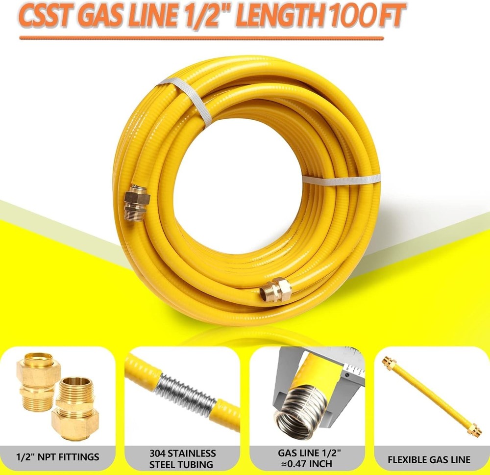 Premium 100ft Flexible Gas Line - CSST Tube for Natural Gas & Propane Systems ‹ › ‹ › ‹ › ‹ › ‹ › ‹ › ‹ › ‹ › ‹ › ‹ › Premium 100ft Flexible Gas Line - CSST Tube for Natural Gas & Propane Systems Sturdy Construction: Experience exceptional performance with a 100FT length and 1/2" gas pipe size featuring a 0.63" inner diameter and a 0.79" outer diameter. This high-capacity natural gas hose delivers up to 150,000 BTU/hour of flow, ensuring ample airflow for all your larger equipment needs. Flexible and Safe: Our corrugated stainless steel tubing is designed for flexibility and ease of installation. Easily cut to your desired length, this gas line effortlessly snakes into tight spaces — attics, basements, and around corners. The one-piece molded design eliminates any mid-body interface, minimizing connection points and dramatically reducing the risk of gas leakage. Corrosion Resistant & Buried: Constructed from SUS304 corrosion-resistant stainless steel, the gas line’s surface features a 0.079 inch UV-resistant yellow polyethylene jacket. For underground installations, the gas pipe must be housed within a non-metallic water-tight conduit that is at least ½" larger than the CSST tubing's outer diameter, ensuring both safety and longevity. Widely Applicable: This versatile natural gas grill hose suits a wide range of uses—from natural gas, liquid propane applications, propane fire pits, and gas ranges to water heaters. Its flexibility makes it ideal for various pressure loss considerations in installation. After-Sales Support: Customer satisfaction is paramount. Should any connector fitting be missing, we offer a complimentary replacement. Enjoy peace of mind with our 90-day hassle-free return or exchange policy. Be sure to follow installation guidelines to prevent air leakage — your safety is our priority. A Great Partner for Portable Grills Connect your natural gas or LPG supply to larger BTU outdoor equipment with ease. Tailored for portable gas grills, heaters, lanterns, propane stoves, and more, our flexible CSST tube can adapt to your specific layout needs. Choose from multiple installation methods — buried wall, concealed, or exposed installation — making it easier than ever to achieve your desired setup. Transformyour gas appliances into a permanent supply with our premium tubing solution. Shipping Free & Fast Shipping - We offer free shipping to most of the USA with a normal delivery time of 3-10 businessdays. However, due to various situations, additional delivery time (up to 3 weeks) may be required for some items. Alternative Carriers - We may use alternative carriers (e.g. USPS, FedEx, UPS, etc.) to ensure your package arrives safely and on time. Due to the use of multiple carriers, we are unable to provide a tracking number automatically. Handling Time - Orders are processed and shipped within 1-5 business days of receiving cleared payment. Shipping Restrictions - Shipping to Alaska, Hawaii, Puerto Rico, Guam, and other US territories may incur shipping charges or delivery restrictions. Please contact us before ordering, or your order can be refunded/cancelled. State Restrictions - There may be restrictions based on your state of purchase. For example, certain items may not be shipped to California due to state regulations. Contact for Tracking Updates - If you require tracking updates or have any concerns about the delivery of your order, please feel free to contact us, and we will be happy to assist you. Return Please see our ebay return policy. We do not accept return on most products. This is to avoid customers mis-using ebay returns. All sales are final. Please be sure to check the return policy listed at the top of the listing. In rare cases, we may accept returns, if the buyer pays both ways shipping and 20% restocking fee. If you are un-sure of return policy of a particular item, please ask before buying. Payment We accept all major credit cards, PayPal, and Apple Pay for your convenience. Your payment information is secure and encrypted to ensure a safe and seamless transaction. Please complete your payment within 3 days of purchase to avoid any delays in shipping. Feedback Your feedback is extremely important to us. We strive to provide the best products and customer service possible. If you are satisfied with your purchase, please take a moment to leave us a positive review. If you have any concerns or issues with your order, please contact us before leaving negative feedback. We are committed to resolving any problems and ensuring your satisfaction. Contact Us If you have any questions or concerns, please feel free to reach out to our customer support team. You can contact us through the eBay messaging system. We are available Monday to Friday, 9:00 am to 5:00 pm EST, and we will do our best to respond to your inquiry within 24 hours. Buy it now and enjoy a pleasant shopping experience! UPC: Not Set Model: Not Set Item Weight: 5.04 kg Unit Quantity: 100 Set Includes: Gas Supply Hose,2 Male Adapter Fittings Suitable For: Natural Gas,Liquid Propane,Propane Fire Pit,Natural Gas Fire Pit,Gas Range,Water Heater,Portable Grills,Heaters,Lanterns,Propane Stoves,Tabletop Grills Features: Flexible and Safety,Sturdy Construction,Corrosion Resistant,Buried Installation,Easy to Install,Durable,Fast Installation,One-Piece Molding,UV Resistant Jacket,No Interface in Pipe Body,Reduced Connection Points,Prevent Gas Leakage Brand: Unbranded Type: Flexible Gas Line Power Source: Natural Gas Color: Yellow Installation: Buried Wall Capacity: 150 Compatible Brand: Not Set Compatible Model: Not Set MPN: Not Set Material: Stainless Steel SUS304 Finish: Not Set Number of Items in Set: 2 Power: Not Set Country/Region of Manufacture: Not Set Manufacturer Warranty: Not Set Item Width: Not Set Item Height: Not Set Item Depth: 0.5 in Unit Type: ft