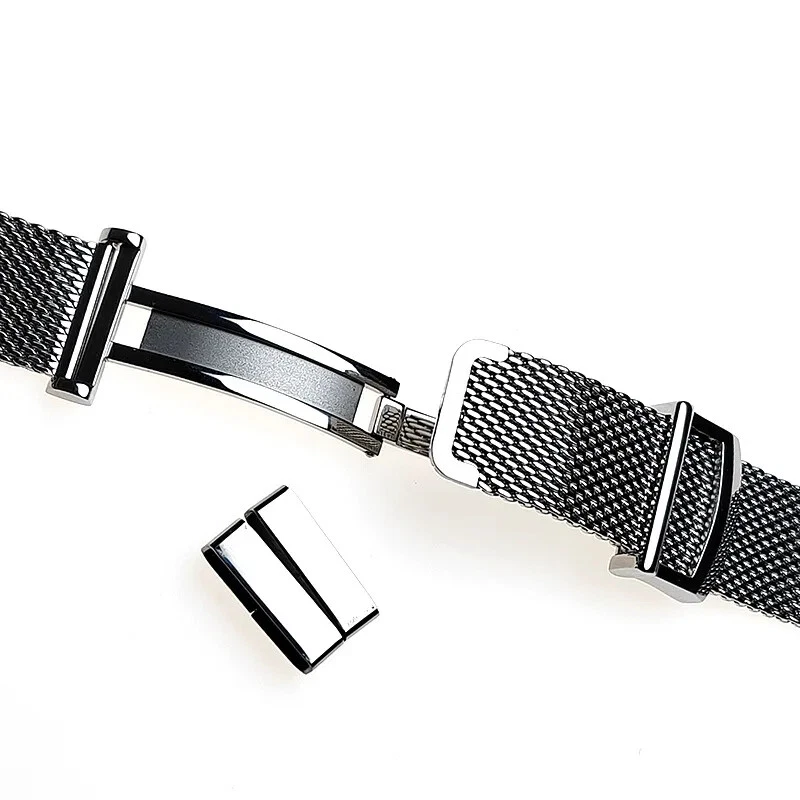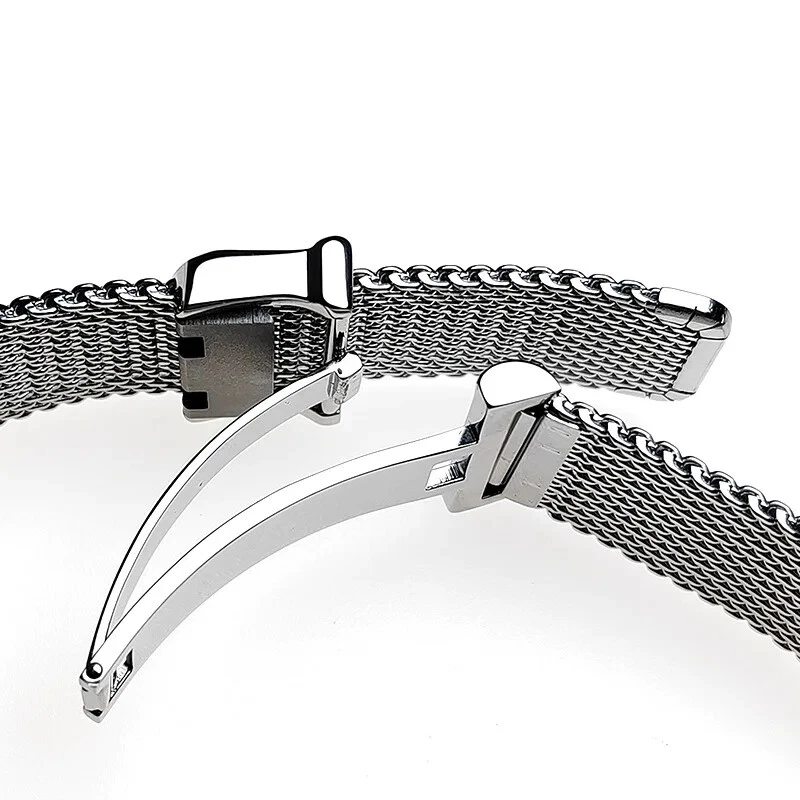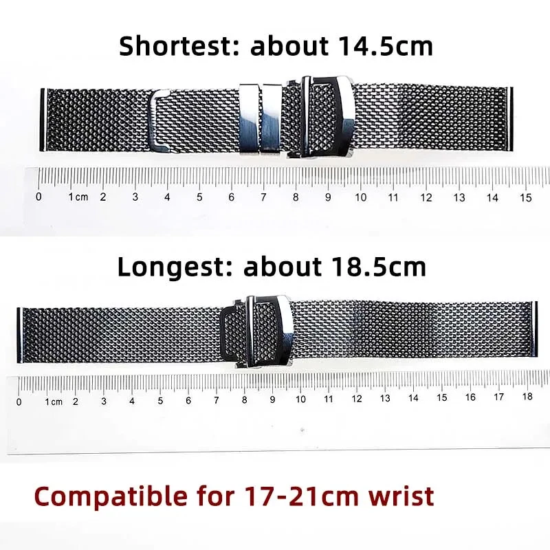 Material: Stainless steel Color: Silver (original color of steel) Length: 14.5cm-18.5cm. Compatible for 17-21cm wrist. If you have small wrists, this watch strap may be too big for you. Weight: about 80g (depends on size) The watch straps come with quick release spring bars Please Note: The strap and clasp are original designed, feature no logos or trademarks.