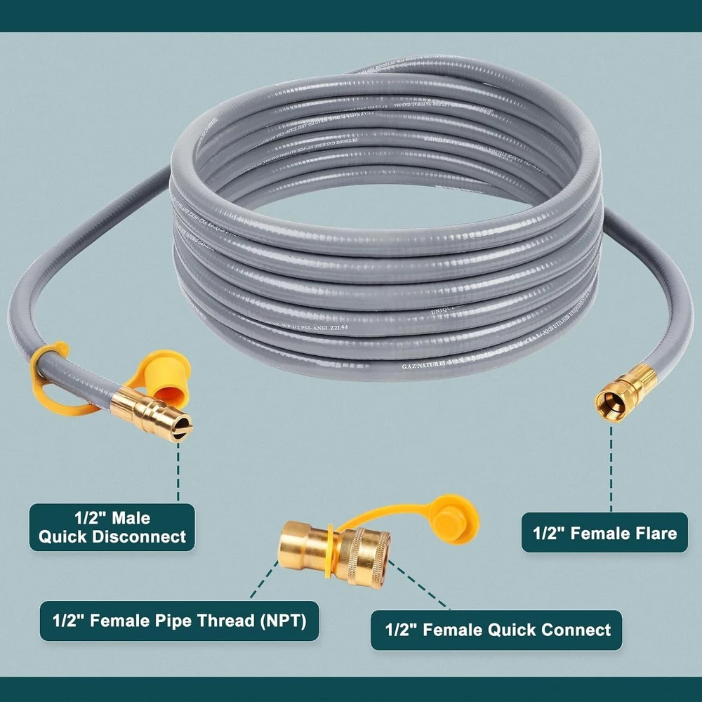 Premium 24 FT Natural Gas Hose for Weber & Char-Broil Grills - Quick Connect