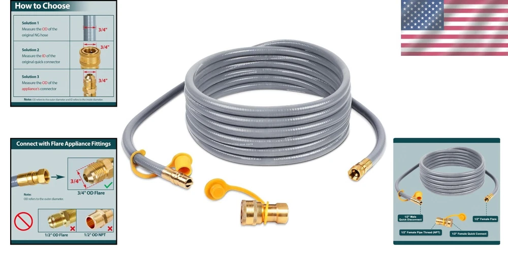 Premium 24 FT Natural Gas Hose for Weber & Char-Broil Grills - Quick Connect ‹ › ‹ › ‹ › ‹ › ‹ › ‹ › ‹ › ‹ › ‹ › Premium 24 FT Natural Gas Hose for Weber & Char-Broil Grills - Quick Connect Features: Compatibility: Perfectly fits a wide range of Weber models including Genesis E-435, S-435, Summit E-470, and Spirit II E-310, among others. Versatile Use: Ideal for Char-Broil dual-fuel grills, patio heaters, pizza ovens, and more. Length & Capability: 24 ft NG Hose, ideal for moderate distances with an impressive capacity of 85,000 BTU/H. Sturdy Construction: Made of high-quality rubber and solid brass for exceptional wear resistance and secure connections. Quick Connect: Features a 1/2" ID gas hose with a 1/2" Male Quick Connect Plug and a 1/2" Female Flare for easy installation. Benefits: Expand Your Grilling Experience: Connect your favorite gas appliances with ease for a truly versatile outdoor kitchen. Safety First: High-quality materials ensure durability and a leak-free operation, making your grilling sessions worry-free. Easy Installation: Designed for quick assembly, saving you time so you can focus on enjoying your cooking. Long Reach: The 24 ft length provides flexibility and convenience for your outdoor layout. Why choose our Premium Natural Gas Hose? Elevate your outdoor cooking game with our Premium 24 FT Natural Gas Hose, engineered for compatibility with a variety of popular gas appliances. Crafted from high-quality rubber and solid brass, this hose ensures a robust and secure connection for all your grilling needs. Experience the freedom of extended reach and the assurance of safe, efficient gas delivery right to your grill or other appliances. Before ordering, be sure to measure your original hose or connector dimensions for guaranteed compatibility. Don't settle for anything less in your outdoor culinary adventures—choose reliability, choose quality, choose our Premium Natural Gas Hose. Shipping Free & Fast Shipping - We offer free shipping to most of the USA with a normal delivery time of 3-7 days. However, due to the current situation, additional delivery time (up to 3 weeks) may be required for some items. Alternative Carriers - We may use alternative carriers (e.g. USPS, FedEx, UPS, etc.) to ensure your package arrives safely and on time. Due to the use of multiple carriers, we are unable to provide a tracking number automatically. Handling Time - Orders are processed and shipped within 1-2 business days of receiving cleared payment. Shipping Restrictions - Shipping to Alaska, Hawaii, Puerto Rico, Guam, and other US territories may incur shipping charges or delivery restrictions. Please contact us before ordering, or your order can be refunded/cancelled. State Restrictions - There may be restrictions based on your state of purchase. For example, certain items may not be shipped to California due to state regulations. Contact for Tracking Updates - If you require tracking updates or have any concerns about the delivery of your order, please feel free to contact us, and we will be happy to assist you. Return Please see our eBay Return Policy. Thank you. Payment We accept all major credit cards, PayPal, and Apple Pay for your convenience. Your payment information is secure and encrypted to ensure a safe and seamless transaction. Please complete your payment within 3 days of purchase to avoid any delays in shipping. Feedback Your feedback is extremely important to us. We strive to provide the best products and customer service possible. If you are satisfied with your purchase, please take a moment to leave us a positive review. If you have any concerns or issues with your order, please contact us before leaving negative feedback. We are committed to resolving any problems and ensuring your satisfaction. Contact Us If you have any questions or concerns, please feel free to reach out to our customer support team. You can contact us through the eBay messaging system. We are available Monday to Friday, 9:00 am to 5:00 pm EST, and we will do our best to respond to your inquiry within 24 hours. Thank you for supporting our small family business! UPC: Not Set Unit Quantity: 24 ft Material: Rubber,Brass Compatible Brand: For Charbroil Compatible Model: For Weber Genesis E-435,For Weber Genesis S-435,For Weber Summit E-470,For Weber Summit S-670,For Weber Summit S-470,For Weber Spirit S-315,For Weber Spirit E-310,For Weber Spirit II E-310,For Weber Genesis S-325S,For Weber Genesis EX-325S,For Weber Genesis E-325S,For Weber Genesis E-335,For Weber Genesis S-335,For Weber Smart SX-325S,For Weber Smart EX-335,For Weber Smart SX-335,For Weber Smart EPX-335,For Weber Smart SPX-435,For Charbroil dual-fuel grills,For patio heaters,For pizza ovens Brand: Unbranded Type: Natural Gas Hose Color: Gray MPN: Not Set Year Manufactured: Not Set Item Depth: 0.75 in Item Diameter: 0.5 in Model: Not Set Item Height: Not Set Item Width: Not Set Country/Region of Manufacture: Not Set Item Weight: 3.36 kg Manufacturer Warranty: Not Set Unit Type: ft