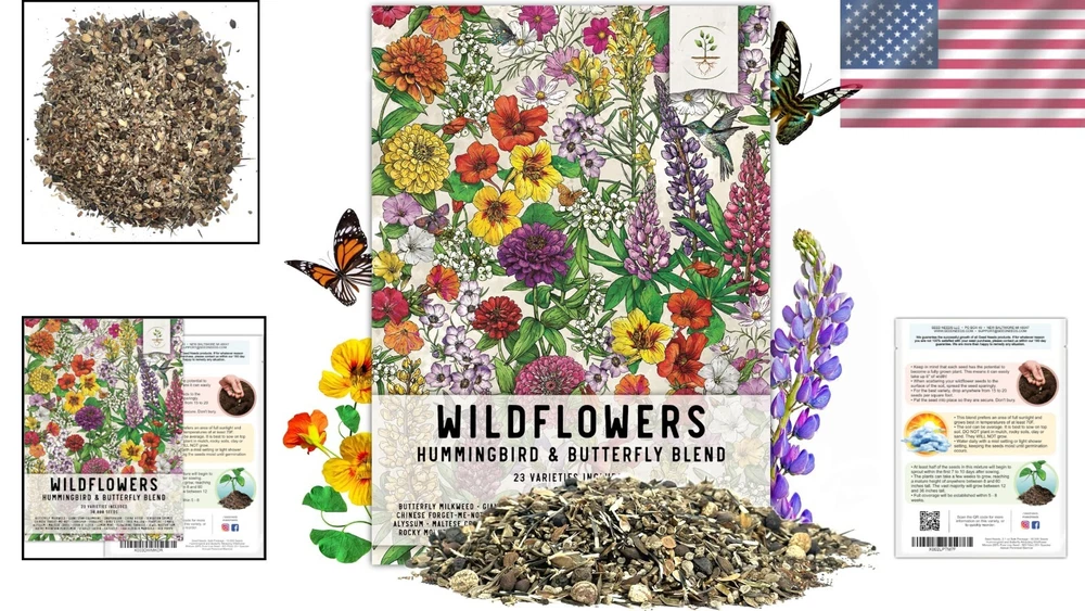 Premium 30,000+ Wildflower Seed Mix for Hummingbirds and Butterflies - 99% Pure ‹ › ‹ › ‹ › ‹ › ‹ › ‹ › ‹ › ‹ › ‹ › Premium Wildflower Seed Mix -30,000+ Seeds for Hummingbirds and Butterflies -99% Pure Flowers Features: Includes over 20 varieties of beautiful annual, perennial, and biennials 99% pure live seed with next to no inert matter Plants grow to an average height of 12 to 36 inches tall Attracts butterflies such as swallowtails and monarchs Beneficial pollinators like bumblebees, honeybees, and ladybugs Stored in a temperature controlled facility free of moisture Generous quantities for sharing or saving for the following season Artful seed packets with detailed sowing information Non-GMO, open pollinated, and heirloom seeds Fresh seeds for quick germination Tear and moisture resistant packaging for freshness Benefits: Beautiful and diverse mix of wildflowers Attracts hummingbirds, butterflies, and other pollinators Easy to grow and maintain Great for creating a vibrant and colorful garden High quality seeds for successful germination Perfect for creating a butterfly garden Environmentally friendly and non-GMO Artful packaging makes for a great gift Long-lasting freshness for optimal results Why choose our Premium Wildflower Seed Mix? Transform your garden into a paradise for hummingbirds and butterflies with our Premium Wildflower Seed Mix. With over 20 varieties of beautiful flowers, this mix is designed to attract a wide range of pollinators and create a vibrant and colorful garden. Our high-quality, non-GMO seeds are stored in optimal conditions for freshness and quick germination, ensuring a successful and stunning garden display. Don't settle for ordinary wildflower seeds - choose our Premium Wildflower Seed Mix for a truly exceptional garden experience. Order now and watch your garden come to life with beauty and biodiversity! Shipping Free & Fast Shipping - We offer free shipping to most of the USA with a normal delivery time of 3-7 days. However, due to the current situation, additional delivery time (up to 3 weeks) may be required for some items. Alternative Carriers - We may use alternative carriers (e.g. USPS, FedEx, UPS, etc.) to ensure your package arrives safely and on time. Due to the use of multiple carriers, we are unable to provide a tracking number automatically. Handling Time - Orders are processed and shipped within 1-2 business days of receiving cleared payment. Shipping Restrictions - Shipping to Alaska, Hawaii, Puerto Rico, Guam, and other US territories may incur shipping charges or delivery restrictions. Please contact us before ordering, or your order can be refunded/cancelled. State Restrictions - There may be restrictions based on your state of purchase. For example, certain items may not be shipped to California due to state regulations. Contact for Tracking Updates - If you require tracking updates or have any concerns about the delivery of your order, please feel free to contact us, and we will be happy to assist you. Return 30-Day Hassle-Free Returns - We want you to be completely satisfied with your purchase. If you are not, you can return the item within 30 days of receiving it for a full refund or exchange. Easy Return Process - To start a return, simply contact us and we will provide you with a prepaid return shipping label and detailed instructions. Restocking Fee - There are no restocking fees for returns. However, the buyer is responsible for return shipping costs if the return is not due to a seller's error. Refund Processing Time - Refunds will be processed within 5 business days of receiving the returned item in its original condition. Payment We accept all major credit cards, PayPal, and Apple Pay for your convenience. Your payment information is secure and encrypted to ensure a safe and seamless transaction. Please complete your payment within 3 days of purchase to avoid any delays in shipping. Feedback Your feedback is extremely important to us. We strive to provide the best products and customer service possible. If you are satisfied with your purchase, please take a moment to leave us a positive review. If you have any concerns or issues with your order, please contact us before leaving negative feedback. We are committed to resolving any problems and ensuring your satisfaction. Contact Us If you have any questions or concerns, please feel free to reach out to our customer support team. You can contact us through the eBay messaging system. We are available Monday to Friday, 9:00 am to 5:00 pm EST, and we will do our best to respond to your inquiry within 24 hours. Thank you for supporting our small family business!