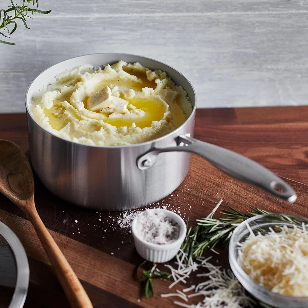 Premium 3.3QT Stainless Steel Saucepan with Ergonomic Handle & Nonstick Finish ‹ › ‹ › ‹ › ‹ › ‹ › ‹ › Premium 3.3QT Stainless Steel Saucepan Your kitchen assistant for culinary excellence, this Premium 3.3QT Stainless Steel Saucepan combines state-of-the-art technology with timeless style. Features: CUTTING-EDGE CERAMIC NONSTICK: Infused with diamonds for remarkable durability, this metal utensil safe ceramic nonstick offers balanced heating and effortless cleanup. TOXIN-FREE: Our signature ceramic nonstick coating is free of PFAS, PFOA, lead, and cadmium, ensuring a safe cooking experience. 3-PLY STAINLESS STEEL BODIES: Equipped with two layers of stainless steel and a full aluminum core for fast and even heat distribution. EVERSHINE TECHNOLOGY: Keeps your tri-ply stainless steel gleaming and resists discoloration for years to come. ERGONOMIC HANDLE: Designed to stay cool on the stovetop, riveted for extra strength and stability, making it easy to maneuver. BUILT FOR OVEN COOKING: Safe for oven and broiler use up to 600°F, gives you versatility in your cooking options. INDUCTION READY: Suitable for all stovetops, including induction, making it universally compatible. EASY TO CLEAN: Simply wipe clean or place in the dishwasher for tough messes without worry. Benefits: Versatile size suitable for any culinary task Combines the ease of nonstick with the elegance of stainless steel Enhances cooking techniques such as searing, braising, and deglazing Durable and built to last, maintaining its beauty through every meal Why choose our Premium Stainless Steel Saucepan? This saucepan is more than just a kitchen tool; it’s a gateway to gourmet cooking. Its innovative ceramic nonstick finish allows for superior cooking and easy cleanup, while the sleek stainless steel design elevates your kitchen aesthetic. Perfect for a novice or a professional chef, our Premium 3.3QT Stainless Steel Saucepan promises an exceptional cooking experience. Transform your culinary capabilities with this standout piece of cookware — order your Premium Stainless Steel Saucepan today! Shipping Free & Fast Shipping - We offer free shipping to most of the USA with a normal delivery time of 3-7 days. However, due to the current situation, additional delivery time (up to 3 weeks) may be required for some items. Alternative Carriers - We may use alternative carriers (e.g. USPS, FedEx, UPS, etc.) to ensure your package arrives safely and on time. Due to the use of multiple carriers, we are unable to provide a tracking number automatically. Handling Time - Orders are processed and shipped within 1-2 business days of receiving cleared payment. Shipping Restrictions - Shipping to Alaska, Hawaii, Puerto Rico, Guam, and other US territories may incur shipping charges or delivery restrictions. Please contact us before ordering, or your order can be refunded/cancelled. State Restrictions - There may be restrictions based on your state of purchase. For example, certain items may not be shipped to California due to state regulations. Contact for Tracking Updates - If you require tracking updates or have any concerns about the delivery of your order, please feel free to contact us, and we will be happy to assist you. Return 30-Day Hassle-Free Returns - We want you to be completely satisfied with your purchase. If you are not, you can return the item within 30 days of receiving it for a full refund or exchange. Easy Return Process - To start a return, simply contact us and we will provide you with a prepaid return shipping label and detailed instructions. Restocking Fee - There are no restocking fees for returns. However, the buyer is responsible for return shipping costs if the return is not due to a seller's error. Refund Processing Time - Refunds will be processed within 5 business days of receiving the returned item in its original condition. Payment We accept all major credit cards, PayPal, and Apple Pay for your convenience. Your payment information is secure and encrypted to ensure a safe and seamless transaction. Please complete your payment within 3 days of purchase to avoid any delays in shipping. Feedback Your feedback is extremely important to us. We strive to provide the best products and customer service possible. If you are satisfied with your purchase, please take a moment to leave us a positive review. If you have any concerns or issues with your order, please contact us before leaving negative feedback. We are committed to resolving any problems and ensuring your satisfaction. Contact Us If you have any questions or concerns, please feel free to reach out to our customer support team. You can contact us through the eBay messaging system. We are available Monday to Friday, 9:00 am to 5:00 pm EST, and we will do our best to respond to your inquiry within 24 hours. Buy it now and enjoy a pleasant shopping experience! UPC: Not Set Unit Quantity: 1.86 kg Stove Type Compatibility: Electric,Gas,Induction Material: Ceramic,Stainless Steel Set Includes: Lid Features: Dishwasher Safe,Non-Stick,Oven-Safe Type of Oven: Electric,Gas,Induction,Oven Brand: Unbranded Surface Coating: Ceramic Capacity: 3.3 qt Type: Saucepan Color: Silver Item Width: Not Set Item Length: Not Set Item Diameter: 16.7 in MPN: Not Set Country/Region of Manufacture: Not Set Shape: Round Manufacturer Warranty: Not Set Item Height: Not Set Item Depth: 15.3 in Model: Not Set Number of Items in Set: One-Piece Item Weight: 1.86 kg Heat Resistance: 600°F Unit Type: Not Set