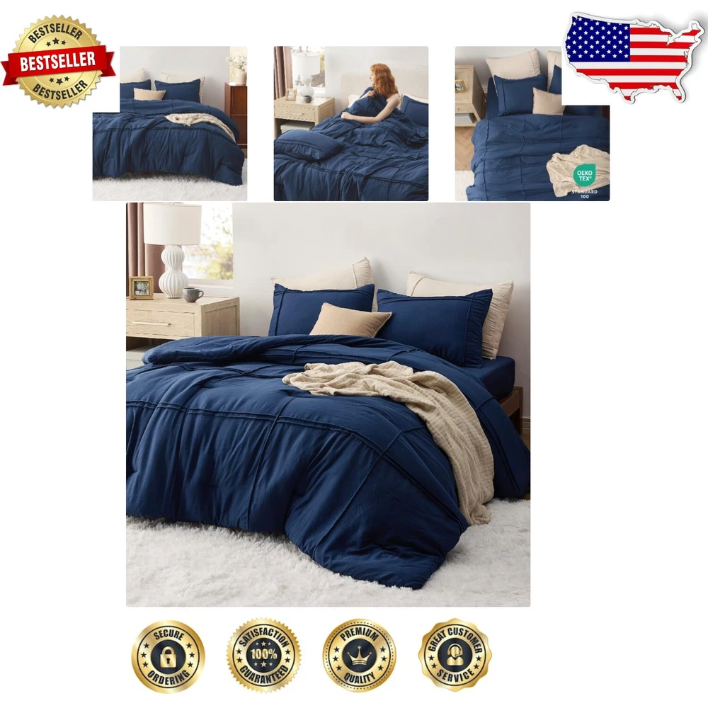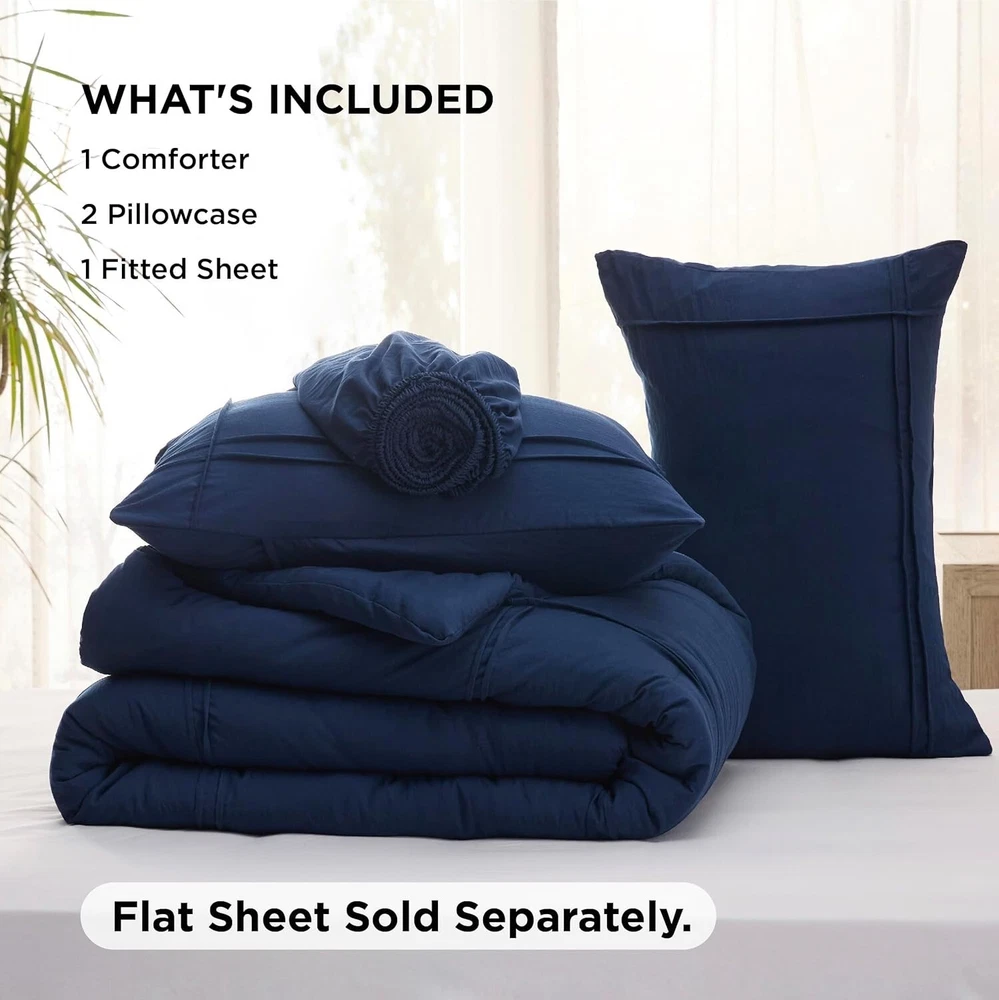 Premium 4-Piece King Bedding Set - Soft Pinch Pleat Comforter with Fitted Sheet ‹ › ‹ › ‹ › ‹ › ‹ › ‹ › ‹ › ‹ › ‹ › ‹ › ‹ › Premium 4-Piece King Bedding Set Indulge in sophistication and luxurious comfort with our stunning Premium King Bedding Set. Perfectly crafted to elevate your sleeping space, this set exudes elegance and charm, making it an ideal gift for yourself or your loved ones. Features: Elegant Design: Exquisite pinch pleat combined with a grid pattern adds refined style to any bedroom décor. Premium Filling: A perfect blend of down-alternative microfiber filling ensuring warmth and weight balance for a heavenly sleep experience throughout the year. Exceptional Softness: Prewashed microfiber cover offers unparalleled softness and luxurious texture while remaining noiseless. Certified Safety: OEKO-TEX Standard 100 certified, ensuring the highest safety criteria free from harmful chemicals, promoting a healthy sleep environment. Easy Care: Designed to resist fading, shrinking, and seam slippage with easy machine wash instructions. Complete Set: This king size bedding set includes 1 comforter (104" x 90"), 2 pillowcases (20" x 36"), and 1 fitted sheet (78" x 80" + 14"), ensuring you have everything you need for a complete bedding experience. Benefits: Transforms your sleep space into a luxurious retreat. Provides unparalleled comfort for restful nights. Promotes a healthy sleeping environment with non-toxic materials. Effortless maintenance that keeps your bedding looking new. Fits snugly on mattresses up to 14" thick with a full elastic fitted sheet. Why Choose Our Premium Bedding Set? Why settle for less when you can envelop yourself in luxury every night? Our Premium 4-Piece King Bedding Set marries sophisticated design with supreme comfort, making it a worthy addition to your home. With thoughtful features such as certified safety, easy care, and a perfect fit for your mattress, it’s not just bedding—it’s a sanctuary. Experience the difference between ordinary and extraordinary sleep. Treat yourself to the premium bedding set you deserve today! Shipping Free & Fast Shipping - We offer free shipping to most of the USA with a normal delivery time of 3-7 days. However, due to the current situation, additional delivery time (up to 3 weeks) may be required for some items. Alternative Carriers - We may use alternative carriers (e.g. USPS, FedEx, UPS, etc.) to ensure your package arrives safely and on time. Due to the use of multiple carriers, we are unable to provide a tracking number automatically. Handling Time - Orders are processed and shipped within 1-2 business days of receiving cleared payment. Shipping Restrictions - Shipping to Alaska, Hawaii, Puerto Rico, Guam, and other US territories may incur shipping charges or delivery restrictions. Please contact us before ordering, or your order can be refunded/cancelled. State Restrictions - There may be restrictions based on your state of purchase. For example, certain items may not be shipped to California due to state regulations. Contact for Tracking Updates - If you require tracking updates or have any concerns about the delivery of your order, please feel free to contact us, and we will be happy to assist you. Return 30-Day Hassle-Free Returns - We want you to be completely satisfied with your purchase. If you are not, you can return the item within 30 days of receiving it for a full refund or exchange. Easy Return Process - To start a return, simply contact us and we will provide you with a prepaid return shipping label and detailed instructions. Restocking Fee - There are no restocking fees for returns. However, the buyer is responsible for return shipping costs if the return is not due to a seller's error. Refund Processing Time - Refunds will be processed within 5 business days of receiving the returned item in its original condition. Payment We accept all major credit cards, PayPal, and Apple Pay for your convenience. Your payment information is secure and encrypted to ensure a safe and seamless transaction. Please complete your payment within 3 days of purchase to avoid any delays in shipping. Feedback Your feedback is extremely important to us. We strive to provide the best products and customer service possible. If you are satisfied with your purchase, please take a moment to leave us a positive review. If you have any concerns or issues with your order, please contact us before leaving negative feedback. We are committed to resolving any problems and ensuring your satisfaction. Contact Us If you have any questions or concerns, please feel free to reach out to our customer support team. You can contact us through the eBay messaging system. We are available Monday to Friday, 9:00 am to 5:00 pm EST, and we will do our best to respond to your inquiry within 24 hours. Buy it now and enjoy a pleasant shopping experience! UPC: Not Set Model: Not Set Set Includes: Comforter,Fitted Sheet,Pillowcase,Comforter Set Material: Microfiber,Polyester Character: Not Set Features: Breathable,Down Alternative,Hypoallergenic,Lightweight,Stain Resistant Theme: Modern Care Instructions: Do Not Bleach,Machine Wash Department: Unisex Baby & Toddler,Kids,Teens,Adults Room: Bedroom Labels & Certifications: Not Set Size: King Type: Comforter Brand: Unbranded Color: Navy Fill Material: Microfiber Pattern: Solid Item Width: Not Set Item Length: Not Set MPN: Not Set Insulation: All Seasons Character Family: Not Set Number of Items in Set: 4 Style: Modern Season: All Country/Region of Manufacture: Not Set Closure Type: No Closure Thread Count: 200 or Less Drop Length: Not Set GSM (Grams per Square Meter): 150 to 300 Product Line: Not Set Personalize: Not Set