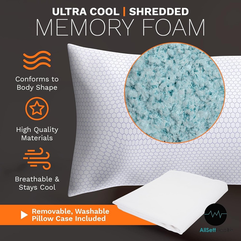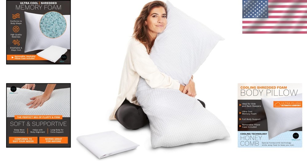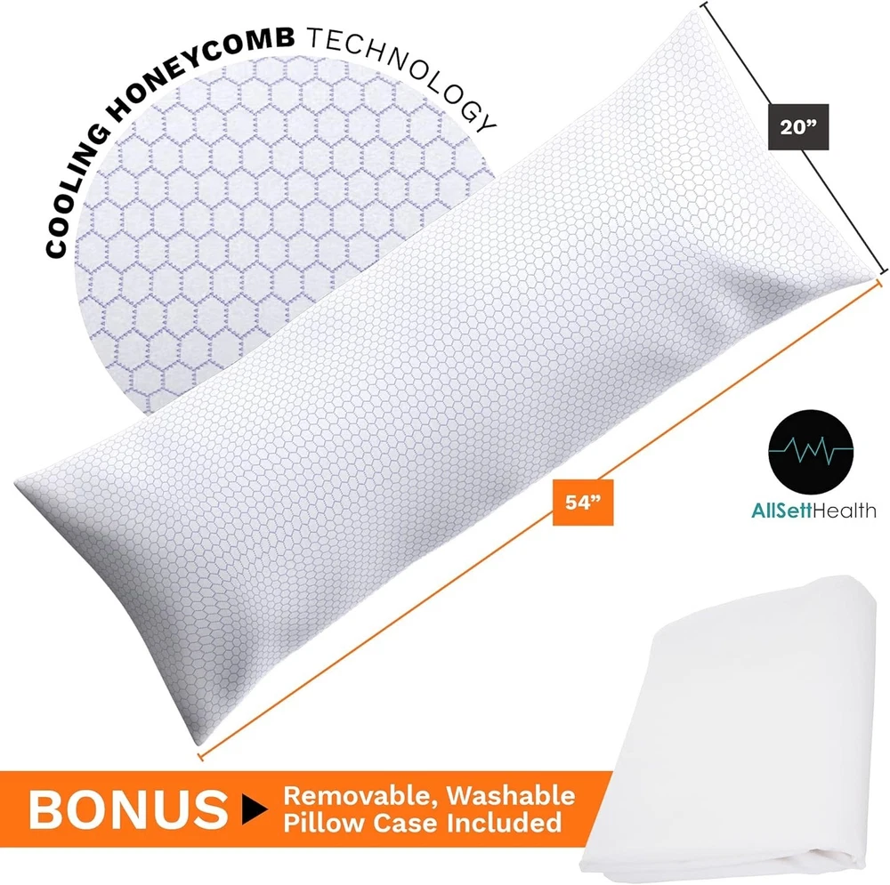 Luxury 20x54 Memory Foam Body Pillow with Adjustable Support & Removable Washable Cover