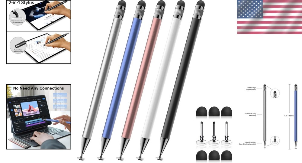 Luxury 5-Pack 2-in-1 Stylus Pens for Touch Screens - Precision & Comfort ‹ › ‹ › ‹ › ‹ › ‹ › ‹ › ‹ › ‹ › ‹ › Luxury 5-Pack 2-in-1 Stylus Pens for Touch Screens Elevate your digital interaction with our 2-in-1 stylus pens, designed for ultimate precision and comfort. Features: Stylus for Touch Screen: Designed to replace your fingers, our stylus offers higher sensitivity and responsiveness on all touch screens, ensuring smooth navigation. 2-in-1 Stylus Pen: Crafted from lightweight alloy, this tablet pen requires no Bluetooth connection or charging. Simply remove it from the package and experience its sturdy, anti-aging design in hand. High Accuracy and High Sensitivity: The flexible transparent disc tip effortlessly glides across screens, providing a seamless experience without disconnect lines ensuring pinpoint accuracy. Compatibility and Multi-Purpose: Universally compatible with all major touch screen devices, including Apple, Samsung, Lenovo, and more; enjoy drawing, note-taking, gaming, and more with the precise touch of a pen. What You Get: A set of 5 uniquely colored stylus pens, complete with a portable replacement set of 5 rubber nibs and 3 clear nibs to keep your creativity flowing. Benefits: Experience a comfortable grip and effortless maneuverability. Capture your ideas on-the-go, mimicking the feeling of writing on paper. Enjoy extended usability without worries of battery life or connectivity. Adapt your stylus to various applications—whether writing, drawing or gaming—achieve professional results with ease. Unleash Your Creativity: Discover a world of creative possibilities with our Luxury 5-Pack 2-in-1 Stylus Pens. Forged for the modern creator, this collection not only enhances your touch screen experience but empowers your digital expression. Why settle for ordinary when you can indulge in the extraordinary? Embrace the luxury of precision—order your set today and redefine how you interact with technology! Shipping Free & Fast Shipping - We offer free shipping to most of the USA with a normal delivery time of 3-7 days. However, due to the current situation, additional delivery time (up to 3 weeks) may be required for some items. Alternative Carriers - We may use alternative carriers (e.g. USPS, FedEx, UPS, etc.) to ensure your package arrives safely and on time. Due to the use of multiple carriers, we are unable to provide a tracking number automatically. Handling Time - Orders are processed and shipped within 1-2 business days of receiving cleared payment. Shipping Restrictions - Shipping to Alaska, Hawaii, Puerto Rico, Guam, and other US territories may incur shipping charges or delivery restrictions. Please contact us before ordering, or your order can be refunded/cancelled. State Restrictions - There may be restrictions based on your state of purchase. For example, certain items may not be shipped to California due to state regulations. Contact for Tracking Updates - If you require tracking updates or have any concerns about the delivery of your order, please feel free to contact us, and we will be happy to assist you. Return 30-Day Hassle-Free Returns - We want you to be completely satisfied with your purchase. If you are not, you can return the item within 30 days of receiving it for a full refund or exchange. Easy Return Process - To start a return, simply contact us and we will provide you with a prepaid return shipping label and detailed instructions. Restocking Fee - There are no restocking fees for returns. However, the buyer is responsible for return shipping costs if the return is not due to a seller's error. Refund Processing Time - Refunds will be processed within 5 business days of receiving the returned item in its condition. Payment We accept all major credit cards, PayPal, and Apple Pay for your convenience. Your payment information is secure and encrypted to ensure a safe and seamless transaction. Please complete your payment within 3 days of purchase to avoid any delays in shipping. Feedback Your feedback is extremely important to us. We strive to provide the best products and customer service possible. If you are satisfied with your purchase, please take a moment to leave us a positive review. If you have any concerns or issues with your order, please contact us before leaving negative feedback. We are committed to resolving any problems and ensuring your satisfaction. Contact Us If you have any questions or concerns, please feel free to out to our customer support team. You can contact us through the eBay messaging system. We are available Monday to Friday, 9:00 am to 5:00 pm EST, and we will do our best to respond to your inquiry within 24 hours. Buy it now and enjoy a pleasant shopping experience! Unit Quantity: 5.0 Item Height: Stylus Pen for Touch Screens Item Length: Stylus Pen for Touch Screens Item Width: Stylus Pen for Touch Screens Compatible Model: Universal,Apple,Samsung,Moto,Lenovo,Xiaomi Features: Flexible,High Precision,High Sensitivity,Anti-Aging,Comfortable Grip,Durable,Sturdy,No Charging Required,Universal Compatibility,Multi-Purpose,Lightweight Type: Stylus Color: Black Unit Type: Unit Material: Lightweight Alloy