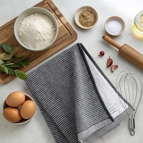 Return Policy Fast Delivery Trusted seller Premium Kitchen Towels 6 Pack (18 x 28 Inches, Black), Large Cotton Kitchen Hand Towel, Flat & Terry Dish Towels for Drying Dishes, Super Absorbent Tea Dishtowels Set with Hanging Loop Product Description HIGH-QUALITY: Crafted from 100% ring spun cotton, these kitchen hand towels boast a 380 GSM heavyweight fabric that is soft, durable and highly absorbent. They resist fraying, pilling, and thinning even after repeated washing. These towels quickly soak up spills and grease while drying fast to leave no odor DUAL-TEXTURE DESIGN: dish towels feature both flat and terry textures, making them ideal for achieving a no-streak and no-lint finish on smooth surfaces. Meanwhile, the terry texture offers enhanced absorbency and scrubbing power, making them perfect for more kitchen tasks like tackling grease or revitalizing upholstery GENEROUS 6-PACK: Hang loop towels come in various colors to complement your kitchen decor. Pair the large 18"x 28" size with this 6-pack quantity, you've got a kitchen essential that balances convenience and functionality. Designate specific towels for specific tasks to keep things hygienic and organized MULTI-PURPOSE USE: These tea towels are highly versatile and built to last, catering to every kitchen cleaning requirement. Whether it's washing dishes, wiping countertops, or drying hands and kitchenware, they prove to be the ideal choice. Beyond the kitchen, use them for polishing surfaces, dusting furniture, or even as luxurious decorative hand towels CARE INSTRUCTIONS: Easy to wash and clean. Hand or machine wash in warm water using a gentle cycle for best results, and tumble dry on low heat. To preserve their absorbency and longevity, avoid using bleach or fabric softeners Shipping Returns Payment Shipping Shipping is FREE to all addresses other than APO/PO boxes in the lower 48 states. All our stock ships from US-based warehouses. Shipped via USPS or UPS (depending on location and package weight) Unless stated otherwise, all orders will ship within 24-72 hours of your payment being processed. Check our feedback to see the great reviews of FAST shipping we offer. Returns Seller does not accept returns Payment We currently accept payment via eBay managed payments only. Once payment is cleared, we will dispatch your shipment within 1-3 business days. Please refer to the "Shipping" tab for more information regarding shipping speed to your destination.