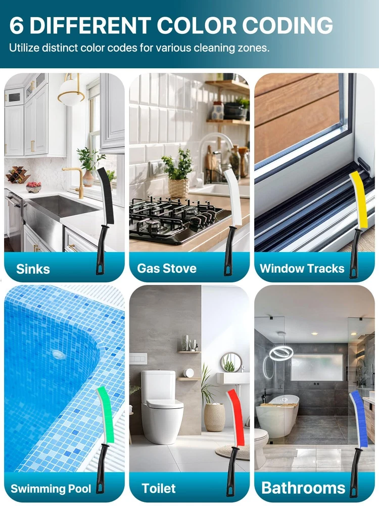 Premium 6Pcs Hard Bristle Crevice Cleaning Brushes, Multifunctional Cleaning MULTIFUNCTIONAL CREVICE CLEANING TOOLS:This hard bristle crevice cleaning brush is specially designed to handle narrow spaces and corners, making it perfect for cleaning grout lines, shower door tracks, toilet seat hinges, kitchen sinks, faucets, shower walls, and window sills. 6PAS COLORFUL CREVICE BRUSHES:With a variety of vibrant bristle designs, these hard bristle cleaning brushes for matching different areas and tasks. This helps to organize the brushes effectively and prevent cross-contaminatio. HIGH QUALITY MATERIAL:Crafted from high-quality plastic and stainless steel, this crevice brush is sturdy, break-resistant, and long-lasting. The brush head is securely attached to a non-slip, wear-resistant handle for a comfortable grip. SUITABLE TO CLEAN ANY SURFACE:Crevice cleaning brushes are versatile tools designed for various surfaces including tile, ceramic, hardwood, stone, glass, metal, granite, and quartz. They effectively tackle bathroom corners, Grout lines, Wall corner gap, Tile countertops, window tracks, and more. AFTER-SALES SERVICE:With your purchase, you will receive 6PCS colorful crevice cleaning brushes. If you encounter any issues while using them, please reach out to us directly through your order. The KOSPRIE support team is committed to resolving your issue within 12 hours.rights. Shipping We offer FREE shipping on all orders! We ship within Three business days of payment, usually sooner. We use a selection of shipping services such as UPS, FedEx, USPS etc. We only ship to the lower 48 states, no APO/FPO addresses or PO Boxes allowed. Local pickups and combined shipping options are not provided at this time. Return You can return a product for up to 30 days from the date you purchased it. Any product you return must be in the same condition you received it and in the original packaging. Please keep the receipt. Payment We accept payment by any of the following methods: PayPal Please pay as soon as possible after winning an auction, as that will allow us to post your item to you sooner! Feedback Customer satisfaction is very important to us. If you have any problem with your order, please contact us and we will do our best to make you satisfied. Contact Us If you have any queries, please contact us via ebay. We usually respond within 24 hours on weekdays. Please visit our eBay store to check out other items for sale! Thank you for shopping at our store.