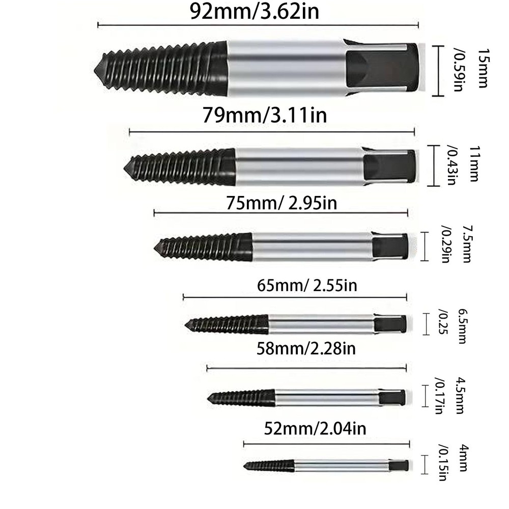 This screw extractor set is a game-changer! The high-quality 35 CrMo steel with 55-65 HRC hardness makes it incredibly durable, even for tough jobs. The 6-piece SAE size range covers everything from small to large screws, so you're always prepared. The surface hardening ensures long-lasting performance—no more stripping or breaking. Perfect for DIYers and pros alike, it's a must-have for any toolbox. Works like a charm every time!