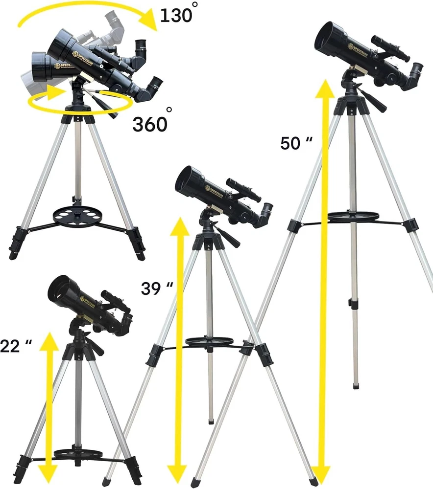 Telescope for Kids 8-12 - Premium Refractor Telescope 70mm Aperture with Carry Bag and Phone Holder Item Description Compact and Portable Design: The AstroLite 70AZ Refractor is a lightweight and compact telescope kit, designed for travelers who want to explore the night sky on the go. It comes with a carry bag, making it easy to transport and set up during camping trips, hiking, or other outdoor adventures. Optics and Accessories: This telescope features a 70mm aperture and a 400mm focal length, allowing for clear and detailed views of celestial objects like the Moon, Jupiter, and Mars. It includes two eyepieces (10mm and 20mm), a 3X Barlow lens for increased magnification up to 120X, and a smartphone adapter for astrophotography. Altazimuth Mount and Tripod: The telescope is mounted on an Altazimuth mount, which provides easy maneuverability for tracking celestial objects. It also comes with a stable and portable tripod, ensuring steady viewing experiences. Payment safe payment via eBay Shipping Fast and Free Shipping Return 30 Days Return