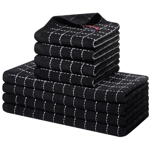Premium 8-Piece Black Kitchen Towel and Dishcloth Set 12x12 and 13x28