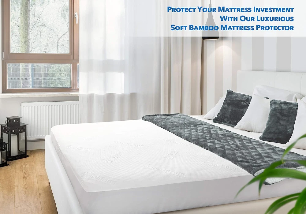 Bamboo Viscose SAFEGUARD YOUR INVESTMENT: Keep your expensive mattress in pristine condition with our Premium Queen Bamboo Mattress Protector. Our ultra-soft mattress cover protects from dirt, water and normal wear & tear, so it stays clean and comfortable. ULTIMATE COMFORT: Our Bamboo Queen mattress cover is made from finest quality, natural bamboo fabric. The ultra-soft and breathable membrane wicks away moisture and regulates heat, so you and your family can enjoy a fresh and cool sleeping environment. 100% WATERPROOF MATTRESS PROTECTOR: Our viscose mattress pad cover effectively resist waters including accidental spills & bodily fluids such as sweat or urine. An excellent choice for dealing with incontinence, potty training, nursing the sick & pets. PERFECT FIT: Our bamboo mattress topper is designed for all types of mattresses including memory foam, latex or spring. It is completely silent - no crinkling sound! Our bed protector stays smooth and neat, so your mattress remains quiet and comfy. Queen measures 60''x80'' and fits any mattress depth up to 18''. Product Description Easy Care: This mattress protector is machine washable for hassle-free cleanup. It is compatible with normal household detergents that do not contain bleach. Great Stay-On Power: The elastic band makes sure that the mattress protector stays in place and does not slip or bunch up. Your mattress will be completely covered from top, bottom and sides. Completely Noiseless: The bamboo mattress protector fits perfectly and does not rustle or make noise to disrupt your sleep. This is especially helpful if you have children or elderly around.