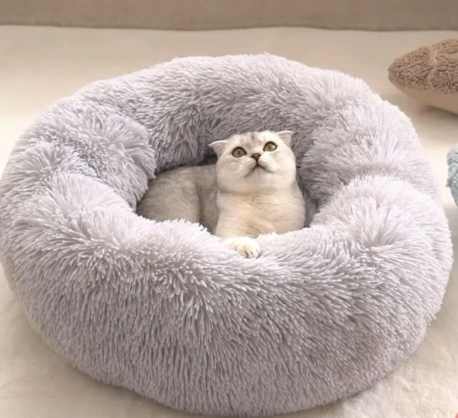 Product Description: Give your furry friend the ultimate comfort and relaxation with our Plush Donut Dog Bed. Designed to provide a cozy and secure sleeping environment, this bed is perfect for dogs and cats who love to curl up and feel safe. The soft, plush fabric and round donut shape create a calming and soothing space that helps reduce anxiety and promotes better sleep. Key Features: Ultra-Soft Material: Made from high-quality, plush fabric that is incredibly soft and comfortable, ensuring your pet feels like they're sleeping on a cloud. Anti-Anxiety Design: The round donut shape and raised edges provide a sense of security and support, helping to ease anxiety and promote relaxation. Machine Washable: Easy to clean and maintain, simply toss the entire bed into the washing machine on a gentle cycle for a fresh and hygienic bed. Non-Slip Bottom: Features a non-slip bottom to keep the bed in place on any surface, ensuring your pet's safety and comfort. Extra Large Size: Spacious enough for larger breeds or multiple smaller pets, offering ample room for stretching and lounging. Ideal For: Dogs and cats of all sizes Pets who love to curl up and feel secure Reducing anxiety and promoting better sleep How to Use: Place the Bed: Find a comfortable spot in your home where your pet likes to rest and place the bed there. Encourage Your Pet: Introduce your pet to the bed and encourage them to lie down and get comfortable. Machine Washable: When it’s time to clean, simply place the bed in the washing machine on a gentle cycle and air dry or tumble dry on low.