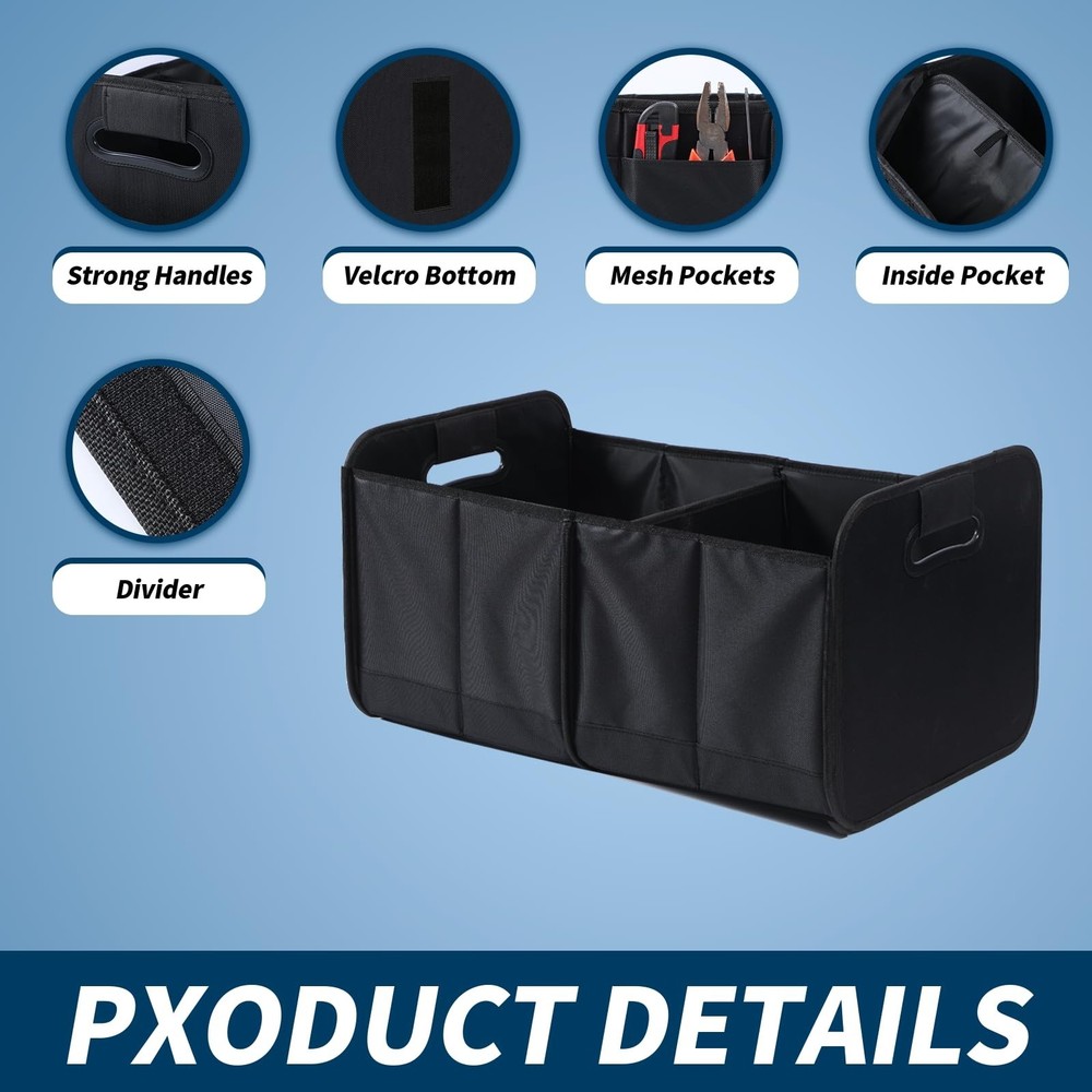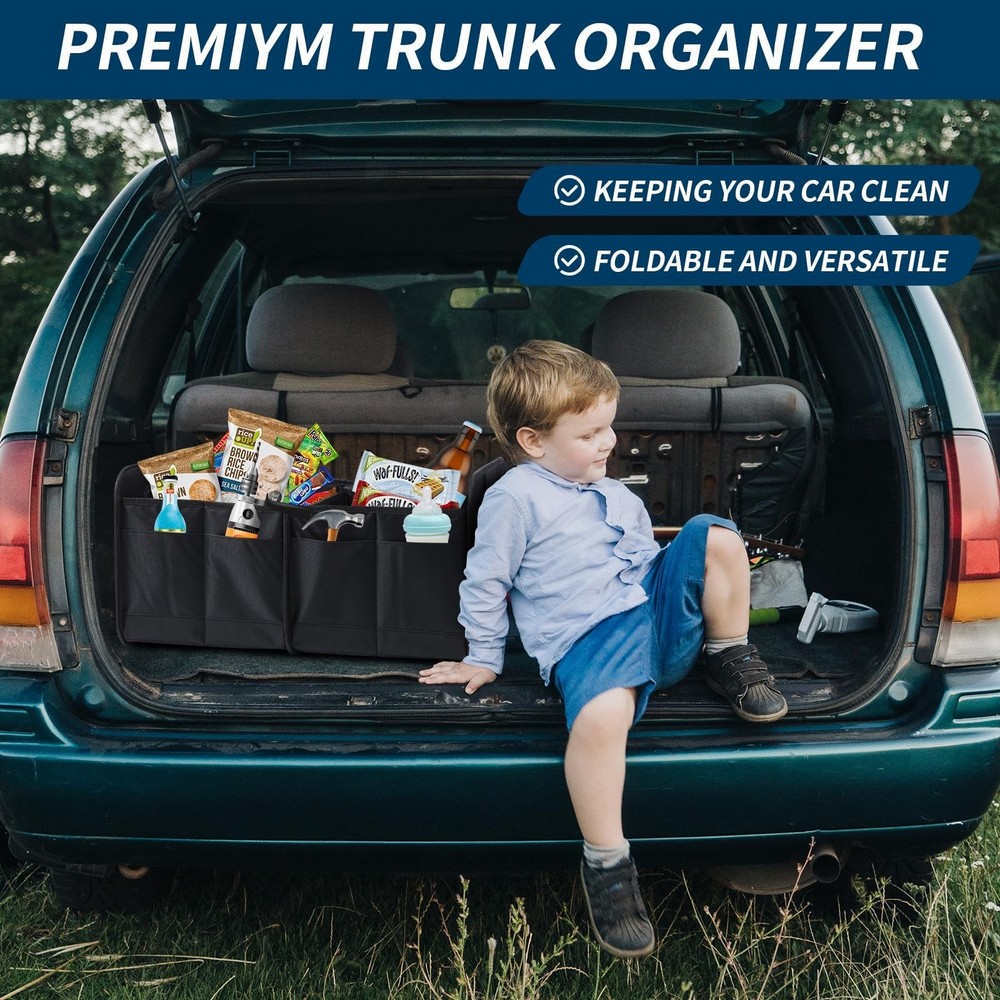 Trunk Organizer for Car - Premium Truck Organizer for Efficient Car Storage, Car Organizers and Storage Solution, Black Product Details Specific Uses For Product: Automobiles Material: Polyester Special Feature: Expandable, Abrasion Resistant, Foldable, Stain Resistant Color: Black Brand: KiauFdcf Product Dimensions: 23.6"D x 13.8"W x 11.79"H Number of Compartments: 3 Shape: Rectangular Capacity: 63 Liters Number of Items: 1 Specific Uses For Product: ‎Automobiles Material: ‎Polyester Special Feature: ‎Expandable, Abrasion Resistant, Foldable, Stain Resistant Color: ‎Black Brand: ‎KiauFdcf Product Dimensions: ‎23.6"D x 13.8"W x 11.79"H Number of Compartments: ‎3 Shape: ‎Rectangular Capacity: ‎63 Liters Number of Items: ‎1 Manufacturer: ‎KiauFdcf Part Number: ‎QCHESN Item Weight: ‎2.2 pounds Country of Origin: ‎China Item model number: ‎QCHESN Item Package Quantity: ‎1 Special Features: ‎Expandable, Abrasion Resistant, Foldable, Stain Resistant Included Components: ‎trunk organizer for car Batteries Required?: ‎No Date First Available: September 25, 2024 TRUNK ORGANIZER FOR SEDANS: Made of high quality Oxford polyester fabric to ensure extreme durability. In order to cope with the most abrasive parts, we have specially designed reinforced stitching to enhance the solidity of the overall structure. Whether it's for everyday use or heavy-duty loads, this organizer can handle it with ease and remains in good condition through many uses, making it an ideal choice for your car storage Collapsible Multi-Compartment Car Organizers: Designed with 3 compartments and removable dividers on the sidewalls, you can adjust the size according to your needs and flexibly adapt to different spaces in the car. It can be easily unfolded when in use and folded up when not in use to save storage space. It is also equipped with 5 extra pockets for quick access to items, making your car storage more efficient and convenient Car Trunk Organizer: Uniquely designed, it is equipped with a reinforced carrying handle to protect your hands and make it easy to move around. The bottom is equipped with anti-slip strips to ensure that the items remain stable and prevent sliding or spilling during driving, providing extra safety for your trip CAR TRUNK ORGANIZER:The best solution to keep your car neat and tidy for all types of vehicles, including trucks, SUVs, vans, jeeps and cars. It is perfect for carrying and organizing groceries, toys, sports equipment and tools, etc. It can effectively solve the problem of trunk clutter and make your trip easier and more organized SUV TRUNK ORGANIZER:Waterproof and abrasion-resistant design, equipped with a sturdy three-layer waterproof reinforced base plate, ensures that it stays dry and tidy in a variety of environments. Simple to install and very easy to clean, it perfectly adapts to your car trunk needs, allowing you to use it with confidence no matter what the weather conditions are.