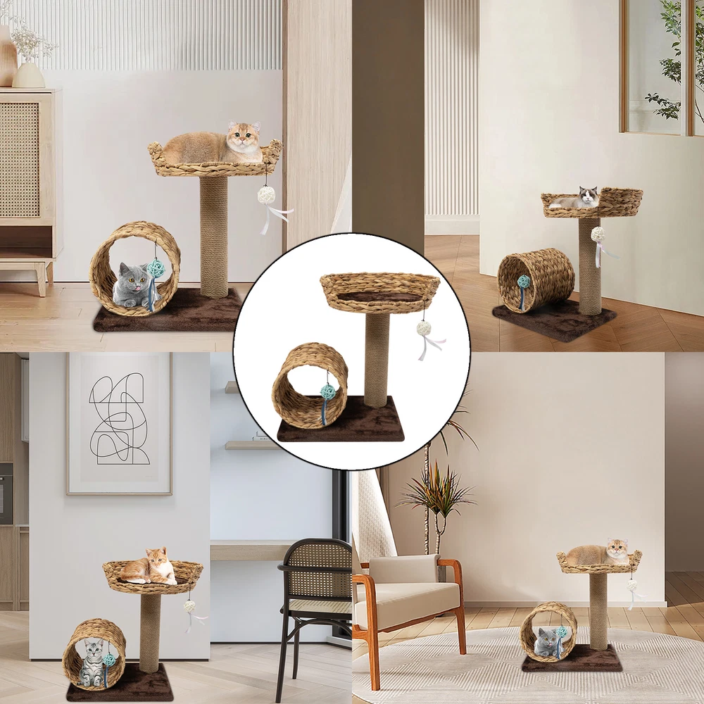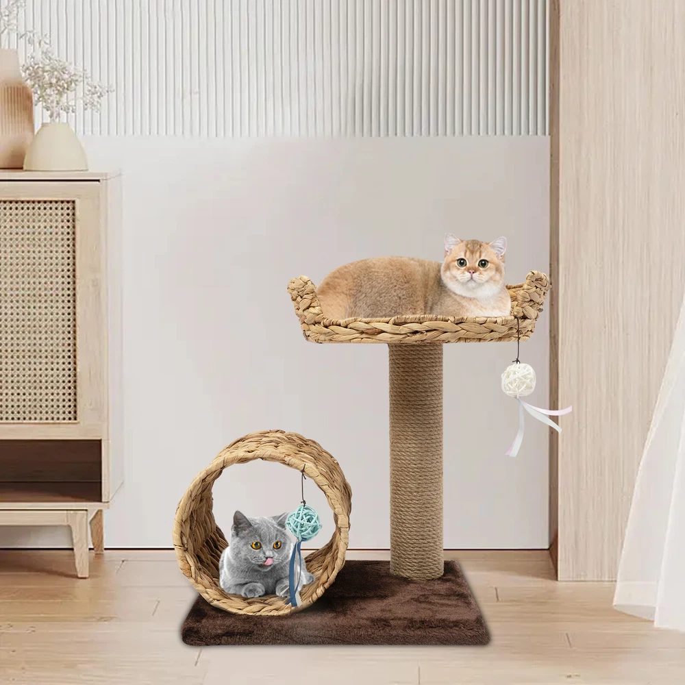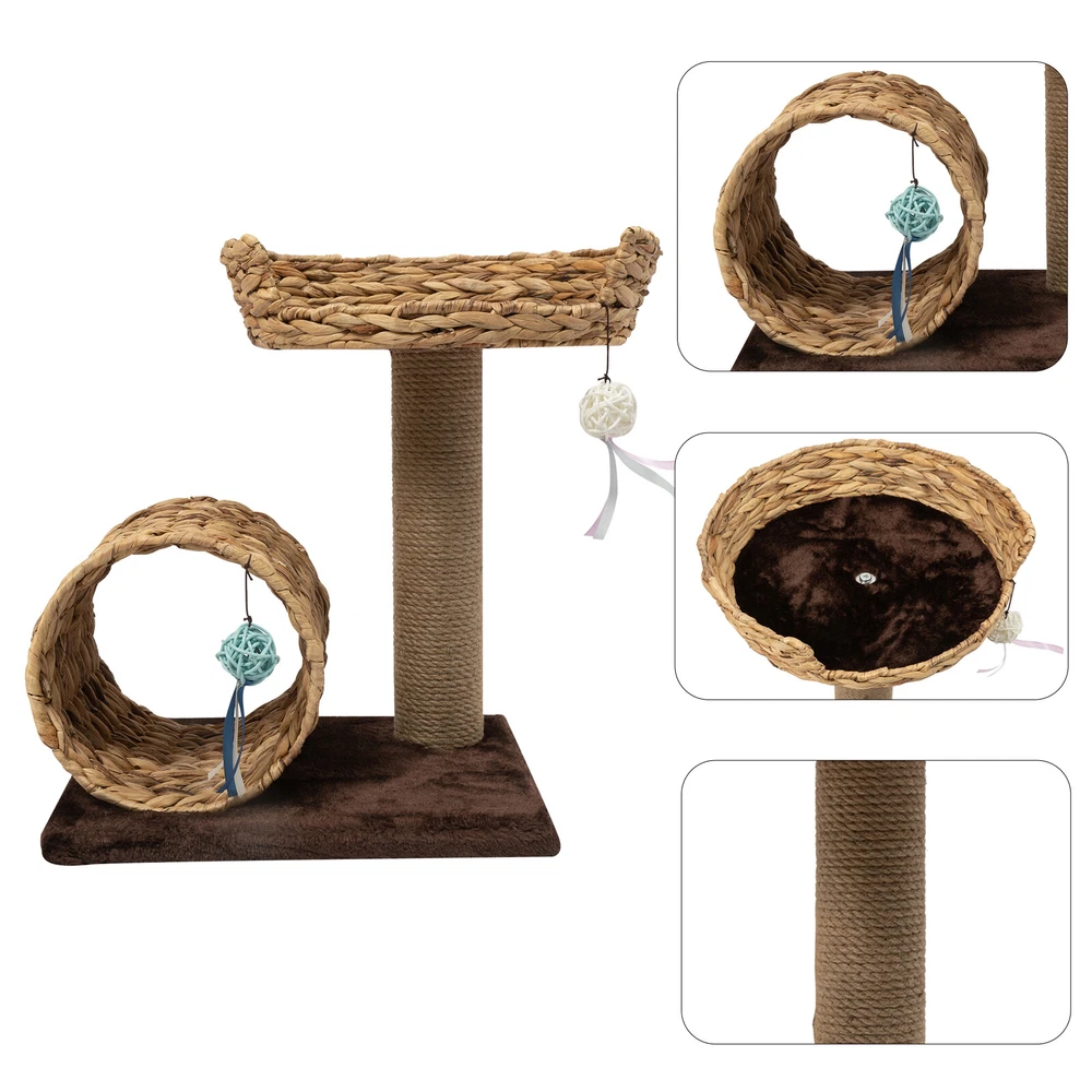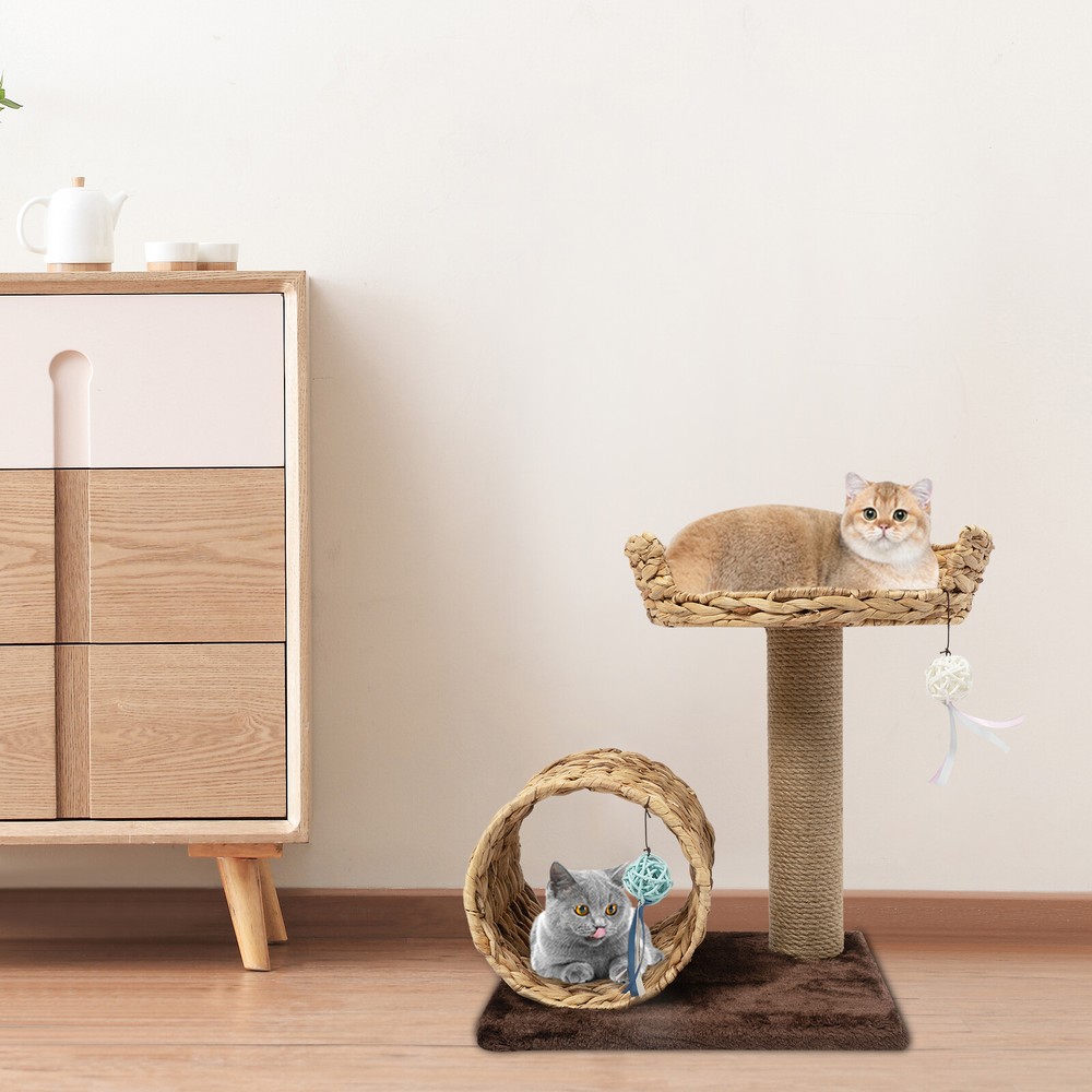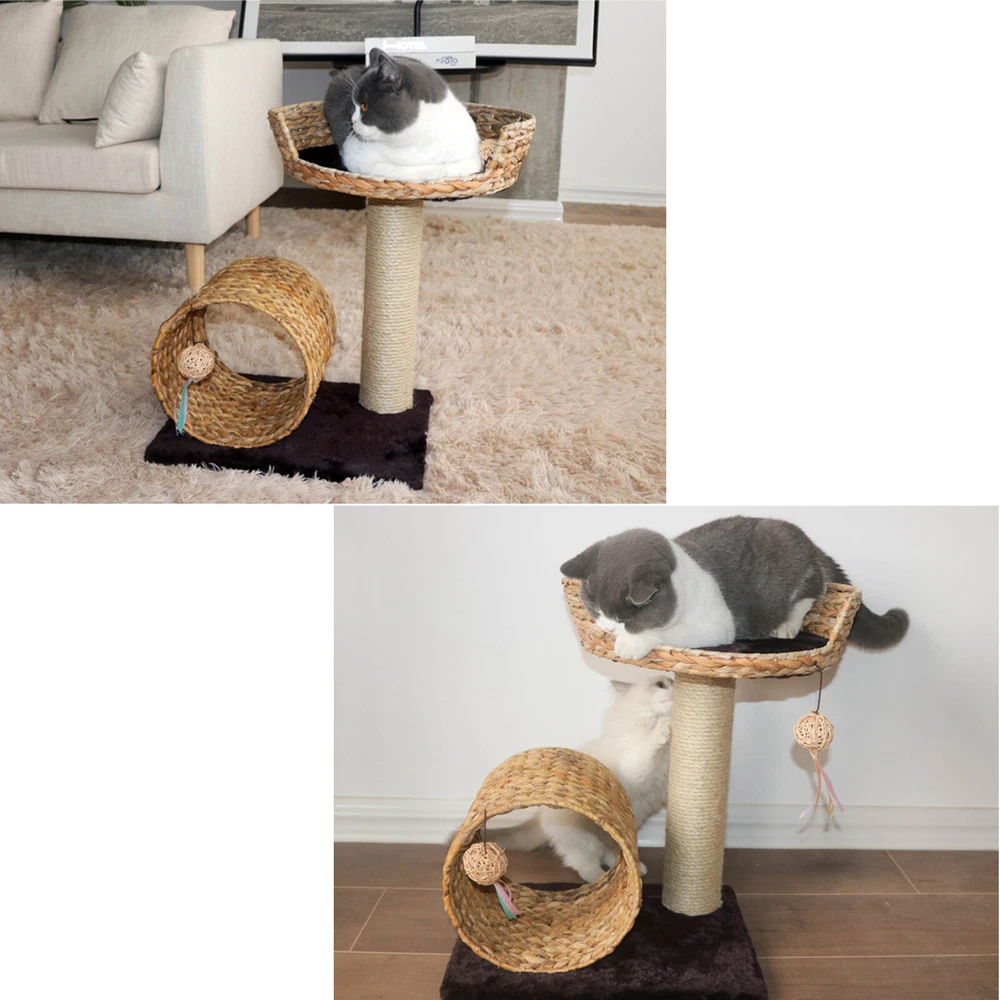 Material: Particle Board, Velvet, Iron, Water Hyacinth, Sisal UPC: Does not apply Height: / gtin13: Does not apply Brand: Unbranded Product Size: 40*31*50cm/15.7*12.2*19.7inch Type: Two-level Cat Tree