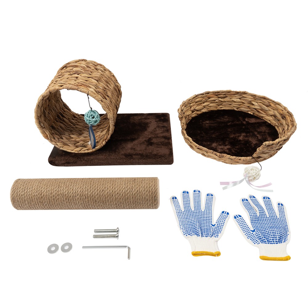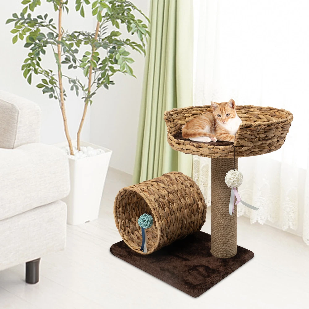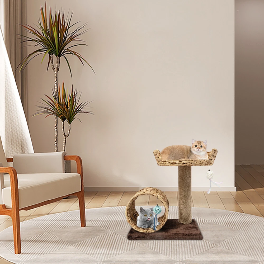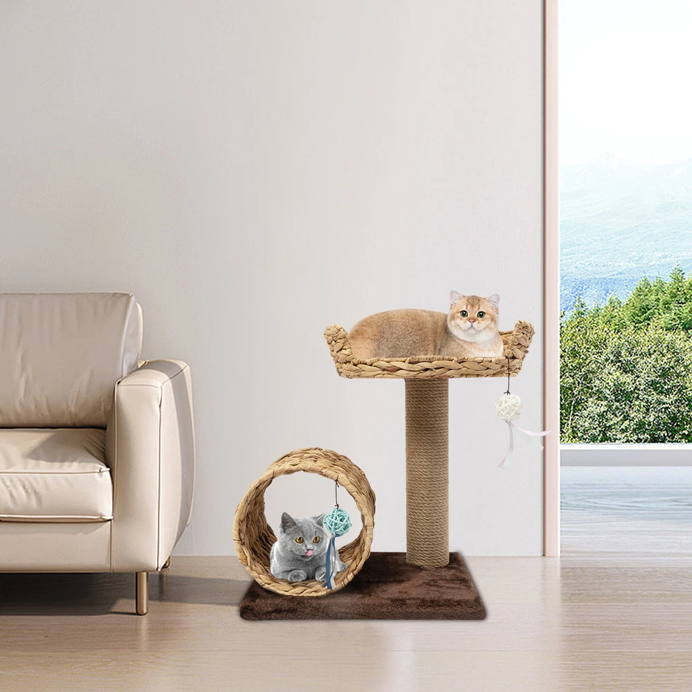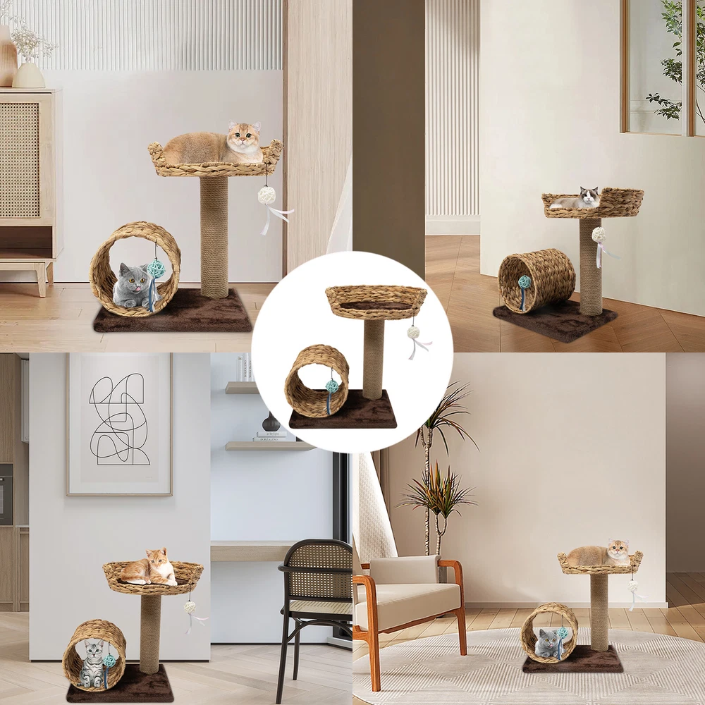 Material: Particle Board, Velvet, Iron, Water Hyacinth, Sisal UPC: Does not apply Height: / gtin13: Does not apply Brand: Unbranded Product Size: 40*31*50cm/15.7*12.2*19.7inch Type: Two-level Cat Tree