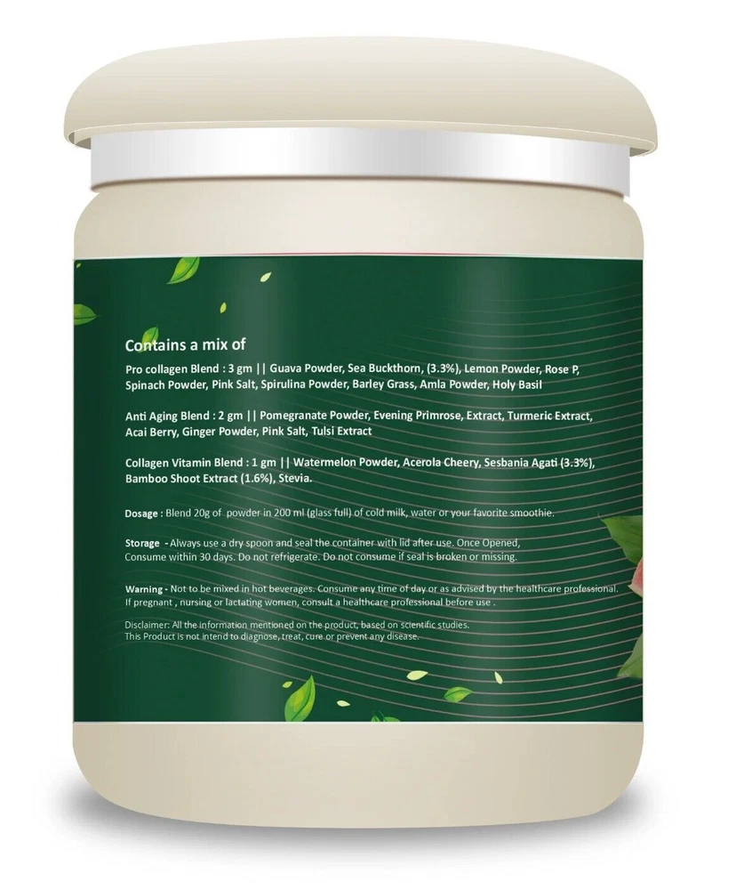 Bhumija Himalayan Shilajit Resin Back to 20's-Plant Based Collagen Powder is 100% natural with more than 20 ingredients. Collagen is an essential protein to restore lost skin elasticity and rejuvenate the skin cells. BHhumija Back to 20's-Plant Based Collagen Powder is enriched in 3 types of advanced collagen blends. Pro collagen Blend : 3 gm || Guava Powder, Sea Buckthorn, Lemon Powder, Rose P, Spinach Powder, Pink Salt, Spirulina Powder, Barley Grass, Amla Powder, Holy Basil. Anti Aging Blend: 2 gm || Pomegranate Powder, Evening Primrose Extract, Turmeric Extract, Acai Berry, Ginger Powder, Pink Salt, Tulsi Extract Collagen Vitamin Blend: 1 gm || Watermelon Powder, Acerola Cherry, Sesbania Agati, Bamboo Shoot Extract, Stevia. All ingredients together deliver a lot of vitamins and minerals to the body and support collagen production. It helps to make the skin look younger and glowing as well as support bone, gut and muscle health too. Well, collage production is natural in the human body. But we start losing it after 25. To stop the collagen loss, we bring Back to 20's-Plant Based Collagen Powder. It helps you to feel like you're in your 20s again with regular use. Make your skin healthy and radiant. Benefits of Collagen Powder · Youthful & Glowing Skin: When skin loses collagen, it starts looking old and dull. Our supplement powder increases the collagen, restores the lost collagen and acts as anti-ageing. Its natural ingredients also provide vitamins and minerals which make the skin healthier and glowing. · Hair Health: Collagen is also good for hair health because it is linked to keratin protein. An ingredient like amla, spinach, etc is great for hair and helps to strengthen the hair roots, nourish the hair roots and support hair growth. · Strong Bones: Collagen is important for tissues that are part of bones, joints and muscles. It also helps in strong bone formation, reduces injuries and smoothes the joint's movements. It maintains strength and flexibility in each part. · Strong Muscles: Synthesis of collagen becomes active as the damaged muscle tissue recovers, so using our collagen at that time may help to form new, strong and hard-to-break muscle tissues. It helps to make muscles stronger. Note : It is a herbal dietary supplement. For better and more effective results, it is recommended to use it for 3-4 months or you can consult your healthcare professional. Results may vary from person to person. Directions For Use: 1. Mix 1 Scoop of Powder in a glass of water 2. Mix well 3. Consume daily twice a day after a meal Note: It is recommended to suggest it to a healthcare professional before starting to use the Bhumija Shilajit Resin. Remember, shilajit can lower blood pressure, so it is not recommended for people who already have low blood pressure. Moreover, shilajit is not suggested for adults. Keep it away from the kids and children Safety Information: · Store in a cool dry place · Keep out of reach of children · If you are pregnant or lactating or prone to any food allergy or under any medical condition consult your healthcare practitioner before use Disclaimer The above description is for information and knowledge purpose, not a healthcare professional advice. Please consult your doctor and/or pharmacist before you take this vitamin. Pregnant or lactating women, diabetics, hypoglycemics, and people with known medical conditions and/or taking drugs, should consult with a licensed physician and/or pharmacist prior to starting any supplementation program. The above statements have not been evaluated by the Food & Drug Administration. Shipping and Handling 1. Shipping time will be 1 business day after the cleared payment 2. We will ship by Indian Post service 3. Shipment will take 15-30 days. Few more days for your local customs delay and formalities. 4. For Express service additional charges will be applied. For any reason you wish to leave Negative or neutral feedback, Please contact us first and let us mutually resolve it. We care for your satisfaction and will make sure that you are happy with the transaction to post us 5**** ratings in all areas. ***Customs Information*** Heroot will not be liable for packages refused or held by customs for delivery. We request that you contact customs office and ask about import regulations and restrictions before placing your order. It is importsnt for you to become familiar with customs policies for your specific country before ordering. Customs regulations differ by country and not knowing their regulations can result in your order incurring high import duties, the delivery being delayed or even returned. Please check with your customs office to see if your country permits the shipment of the products you are planning to order from us and if any additional licenses or permits are needed. Please note: if your order is returned to us due to banned/ restricted products policy, a wrong address, refusal to pay customs fees, refusal to accept the order or because no one was there to accept the delivery of your order, we will refund your order as follow: you will be refunded the total amount of the order, minus the original shipping charge .