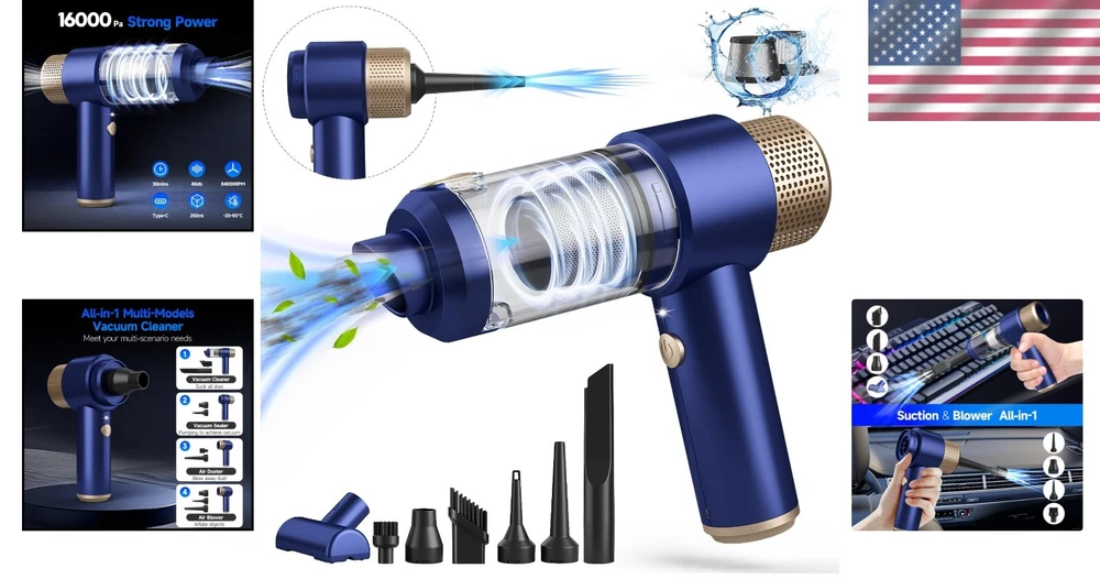 Premium Cordless Handheld Vacuum - Lightweight, Efficient & Pet Hair Friendly ‹ › ‹ › ‹ › ‹ › ‹ › ‹ › ‹ › ‹ › ‹ › Premium Cordless Handheld Vacuum Lightweight, Efficient & Pet Hair Friendly Product Highlights: 🚀 7-in-1 Multifunctionality: This cordless vacuum comes with 7 accessories, allowing for versatile cleaning tasks including vacuuming, blowing, inflation, and pumping. 👍 16000Pa Hurricane Suction: Powered by a new generation Japanese motor, this vacuum delivers impressive suction power to eliminate dust, pet hair, food scraps, and other common messes. 📲 Dual Filters & One-touch to Empty: Features an advanced dual filtration system with Hepa and Metal filters, designed to keep the motor safe while making dust disposal a breeze with a one-touch empty function. 💡 Portable & LED Light: Weighing only 410g (0.8lbs), this vacuum is easy to carry and operate, with LED lights to help you clean dark corners and hidden spaces. 🔋 Type-C Fast Charging: Equipped with a 4000mAh built-in battery, it can be charged via USB in just 2.5 hours, making it convenient for use at home, office, or on-the-go. Why You'll Love It: This Premium Cordless Handheld Vacuum is the ultimate cleaning companion for every home. Whether you need to tackle pet hair, clean hard-to-reach areas, or even inflate a pool float, its multifunctional design caters to all your cleaning needs. No more fussing with cords or searching for outlets; its lightweight and portable design make it easy to handle and store. Plus, with a powerful suction capability and quick-charging efficiency, you can trust it to deliver thorough cleaning every time. A Thoughtful Gift: This stylish and efficient vacuum is a perfect gift for family and friends, especially for pet owners who understand the struggle of pet hair. With its sleek design and remarkable functionality, it’s bound to impress. Experience a cleaner, more convenient lifestyle—add the Premium Cordless Handheld Vacuum to your cleaning arsenal today! Shipping Free & Fast Shipping - We offer free shipping to most of the USA with a normal delivery time of 3-7 days. However, due to the current situation, additional delivery time (up to 3 weeks) may be required for some items. Alternative Carriers - We may use alternative carriers (e.g. USPS, FedEx, UPS, etc.) to ensure your package arrives safely and on time. Due to the use of multiple carriers, we are unable to provide a tracking number automatically. Handling Time - Orders are processed and shipped within 1-2 business days of receiving cleared payment. Shipping Restrictions - Shipping to Alaska, Hawaii, Puerto Rico, Guam, and other US territories may incur shipping charges or delivery restrictions. Please contact us before ordering, or your order can be refunded/cancelled. State Restrictions - There may be restrictions based on your state of purchase. For example, certain items may not be shipped to California due to state regulations. Contact for Tracking Updates - If you require tracking updates or have any concerns about the delivery of your order, please feel free to contact us, and we will be happy to assist you. Return Please see our eBay Return Policy. Thank you. Payment We accept all major credit cards, PayPal, and Apple Pay for your convenience. Your payment information is secure and encrypted to ensure a safe and seamless transaction. Please complete your payment within 3 days of purchase to avoid any delays in shipping. Feedback Your feedback is extremely important to us. We strive to provide the best products and customer service possible. If you are satisfied with your purchase, please take a moment to leave us a positive review. If you have any concerns or issues with your order, please contact us before leaving negative feedback. We are committed to resolving any problems and ensuring your satisfaction. Contact Us If you have any questions or concerns, please feel free to reach out to our customer support team. You can contact us through the eBay messaging system. We are available Monday to Friday, 9:00 am to 5:00 pm EST, and we will do our best to respond to your inquiry within 24 hours. Thank you for supporting our small family business! UPC: Not Set Unit Quantity: 1 Features: Compact,Portable,Cordless,LED Light,Dual Filters,One-Touch Empty,7-in-1 Multifunctional,High Power Suction,Type-C Fast Charging Included Accessories: Accessory Kit,Dust Caps,Nozzles,Brushes Brand: Unbranded Type: Handheld Model: Cordless Handheld Car Vacuum Smart Home Protocol: Not Set Runtime: Not Set Smart Home Compatibility: Not Set Charge Time: 2.5 hrs MPN: Not Set Color: Blue Power: 120 W Filters: HEPA Voltage: 7.4 V Country/Region of Manufacture: Not Set Capacity: 250 ml Protection Plan: No Coverage Manufacturer Warranty: Not Set Item Weight: 1 lb Unit Type: lb Cord Type: Not Set Bagged/Bagless: Not Set