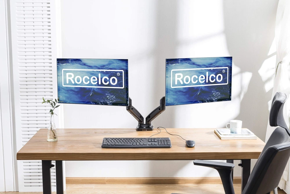 Rocelco Premium Double Monitor Desk Mount with USB 2.0 and Audio Port - Fits Dual 13" - 27" LED LCD Flat Screens - Pneumatic Full Motion Assist Adjustable Arm - Grommet and C Clamp - Black (R MA2) Monitor arms will support two 13” - 27" Screens up to 14.3 lbs. Accomodates 75 mm x 75 mm and 100 mm x 100 mm mounting patterns. USB 2.0 and multimedia ports offer convenient way to connect and charge your devices. Swiveling design at screens (180 degrees), center (360 degrees), and base (360 degrees). Cable channels help you maintain tidy, clutter-free workspace. Adjustable desk clamp and grommet mounting systems included. For surfaces 0.5" to 3.3" thick. Rocelco MA2 – Double monitor Arm with GPCMA (Gas Piston Counterbalance Motion Assist) allows effortless independent screen adjustment for comfortable viewing. Fits two 13"-27” screens up to 14.3 lbs each. Includes USB and multimedia ports to conveniently connect and charge your devices. Quick installation and adjustment - no tools required. Cable channels provide a hassle-free way to run your cables and maintain a tidy uncluttered workspace. Includes two mounting systems to attach to your desk - clamp and grommet. Shipping We offer FREE shipping on all orders! We ship within Three business days of payment, usually sooner. We use a selection of shipping services such as UPS, FedEx, USPS etc. We only ship to the lower 48 states, no APO/FPO addresses or PO Boxes allowed. Local pickups and combined shipping options are not provided at this time. Return You can return a product for up to 30 days from the date you purchased it. Any product you return must be in the same condition you received it and in the original packaging. Please keep the receipt. Payment We accept payment by any of the following methods: PayPal Please pay as soon as possible after winning an auction, as that will allow us to post your item to you sooner! Feedback Customer satisfaction is very important to us. If you have any problem with your order, please contact us and we will do our best to make you satisfied. Contact Us If you have any queries, please contact us via ebay. We usually respond within 24 hours on weekdays. Please visit our eBay store to check out other items for sale! Thank you for shopping at our store.