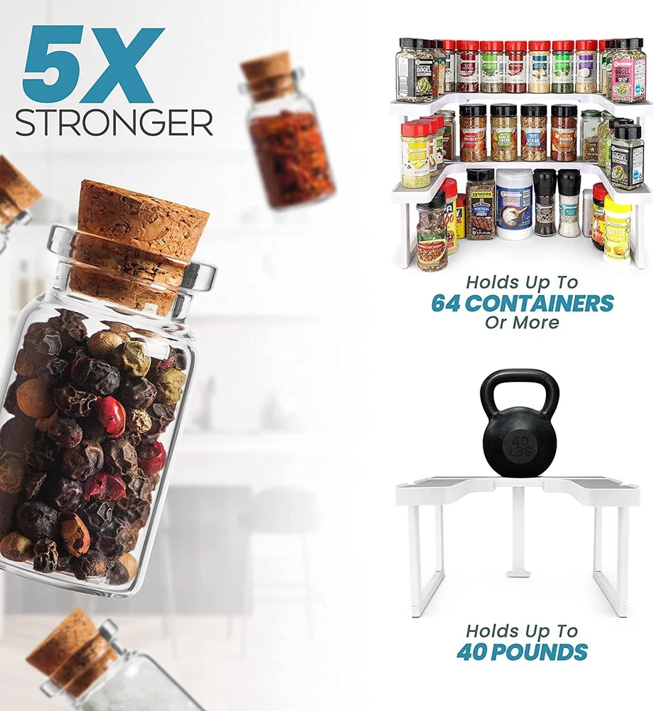 2-Row Spice Rack Shelf Inclined Seasoning Organizer Holder Pans Tabletop