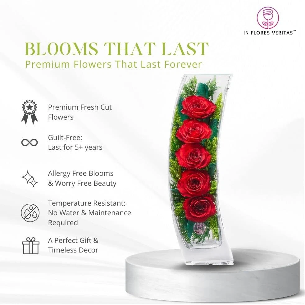 30 Days Return Policy Fast Delivery Trusted seller Premium Fresh Cut Preserved Flower Bouquet in a Sealed Glass Vase | Long Lasting Bouquet Roses Stays Fresh for 5+ Years | No Water Needed | Allergy Free | Unique Rose Gifts for Women Product Description 100% NATURAL FRESH ROSES: Handpicked from Thailand's lush fields flowers are transformed into timeless wonders through a unique non-toxic preservation method. PRESERVED LONG-LASTING BLOOMS REMAIN FRESH FOR YEARS: Vacuum-sealed technology keeps flowers fresh for 5 years and longer SUSTAINABLE, ECO-FRIENDLY & GUILT-FREE: Our bouquets does not require any maintenance, irrigation or water. Allergy-free, pet-proof. MODERN & INSTA-FRIENDLY: The stylish crystal clear vases are sealed and keep the flowers fresh. Vases can not be opened. A PERFECT GIFT & TIMELESS DECOR: Elevate your space, turn heads, and make hearts skip a beat with our show-stopping preserved floral masterpieces. COOL & UNIQUE PRESENT: Standout with your gift idea for birthday, appretiation, retirement or “get-well soon” moments. Shipping Returns Payment Shipping Shipping is FREE to all addresses other than APO/PO boxes in the lower 48 states. All our stock ships from US-based warehouses. Shipped via USPS or UPS (depending on location and package weight) Unless stated otherwise, all orders will ship within 24-72 hours of your payment being processed. Check our feedback to see the great reviews of FAST shipping we offer. Returns As our valued customer, we will do our best to make sure the product you receive arrives to you on time and as expected. If you are not satisfied with your purchase, please contact us within 30 days of receiving your order to process a return. Payment We currently accept payment via eBay managed payments only. Once payment is cleared, we will dispatch your shipment within 1-3 business days. Please refer to the "Shipping" tab for more information regarding shipping speed to your destination.