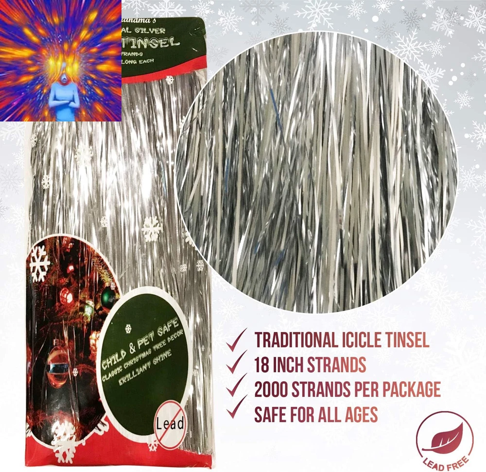 Store New Arrivals Add to Favorite View Feedback Contact Premium Icicle Tinsel Strands for Christmas Tree - 2000 Old-Fashioned Silver Icicles Garland for Xmas Trees Shiny Mylar - Each Strand 18 In. - Kid Pet Safe (Lead-Free) - Hang with Ornaments & Decor Description Item model number REDICICLE1 Batteries required No Product Dimensions 18 x 4 x 0.2 inches Material silver Item Weight 2.24 ounces Color Silver Item Length 18 Inches Is Discontinued By Manufacturer No ICICLE TINSEL SHINE & GLOW - 2000 Old Fashioned Tinsel Strands Will Make Your Christmas Tree Sparkle Like Never Before KID & PET SAFE - Lead-Free Safe Mylar Material Safe for All Ages and Pets. 2000 STRANDS = AMAZING VALUE - Get The Best Value for Tinsel on Amazon and Online GREAT FOR GIFT GIVING - Give the Gift of Joy and Sparkle to Friends and Family To Make This Christmas Even More Special OLD-FASHIONED STYLE - Remember Those Family Gatherings with Family? Icicle Tinsels Were ALWAYS Hanging From the Xmas Tree. Why Not Bring Back Those Heartwarming Memories Once Again? Product Description WDS Premium Silver Icicle Tinsel - "Just Like Grandmas" Silver Mylar Old-Fashioned Tinsel Traditional Icicle Tinsel 18 Inch Strands 2000 Strands Per Package Safe For All Ages Lead-Free Perfect for All Ages Get your kids involved in decorating the Christmas Tree. With 2000 strands, hours and hours of fun and joy will be had. Beautiful Christmas Shine Set the scene for Christmas Eve with your decor. Just like grandma's house, you can now decorate your tree like hers and bring back those childhood memories. Easy to Use Beautifully packaged, our WDS Silver Icicle Tinsel will make your home light up during the holiday season. Silver Tinsel Garland = Christmas Joy Want that look like moms or grandma's old fashioned tree? Choose our old-style icicle tinsel that is safe, lead-free and premium quality. ABOUT US We offer the best prices around on high quality products. Our E-store includes media such as books, movies, music and games while offering electronics, toys, sporting apparel, clothing, tools, general home, garden items and more. SHIPPING We are always working hard to ensure your package arrives as soon as possible. Please understand that some factors like weather, high postal traffic, and the performance of shipping companies are outside of our control. We offer free shipping to the lower 48 states and ship within 2 business days of payment, usually sooner. We do not accept P.O. Boxes. Please provide a physical address. For shipping outside of the continental USA, we only use eBay's Global Shipping Program.The item is shipped to KY and then sent to the rest of the world. International customers are responsible for all duties and taxes. Continue to check out in order to calculate costs for shipping the item to your country. Messages regarding eBay's Global Shipping Program MUST be directed at eBay EXCLUSIVELY. RETURNS We offer a 30-Day Return Policy on items which you are not completely satisfied with. You have the option for a full-refund or an exchange of the item. No returns are available on items shipped outside of the USA. PAYMENT We accept PayPal. CONTACT US This page content is yet to come Please ad us to your favorite seller and visit again later Thank You CUSTOMER SATISFACTION We try our very best to make sure every customer is completely satisfied. If there's a problem, message us! We're happy to help. WE ACCEPT