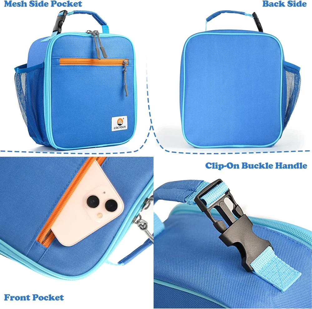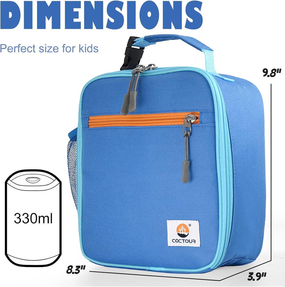 Store New Arrivals Add to Favorite View Feedback Contact Fast deliveries to the customer's home Quality customer service John Make the customers happy! Lunch Box Kids,Premium Insulated Lunchbox for Girls Boys,Soft Mini Cooler Bag Back to School Thermal Reusable Lunch Bag for Work School Picnic (Blue) Description Insulation & Waterproof & Easily Clean - This lunch bag kids is made of insulated material to keep food cold/warm for hours, get fresh food with right temperature. It is made of rip resistant 600D oxford fabric,PEVA linning and the ultra-thick EPE Spacious Design - Insulated lunchbox is 7.9" L x 3.9"W x 9.5"H.Easily fit for food, snacks, drinks, sandwiches, fruit, or vegetable for your kid's fresh lunch.Suitable for ages 3-7 girls and boys to carry it to school, picnic and camping Outside-friendly Design - This lunch bag kids come with a detachable buckle handle which will be easily tied to kids backpack or along side a ice-pack. Compact enough to fit inside a backpack or travel bag to keep up with every kid on-the-go lifestyle Extra Pockets & Double Zipper - This kids lunch bag is designed for maximum storage efficiency, 1 main pocket, 1 internal mesh pocket, 1 side mesh pockets. Suitable for lunch or snacks, side mesh pocket for water bottle.Double zipper make it more sturdy CaCTOUR SUPPORT – Buy with confidence! If you have any questions about insulated lunch bag, please feel free to contact us.We will do our best to resolve your problem quickly and effectively Product Description The CaCTOUR brand is committed to creating a style of interesting, nice, warm character. The CaCTOUR brand pays much attention to respecting the past and creating new chapters. We hope our products could accompany you for years. We will continue to innovate and bring exciting products to market so you can achieve more in life! School Lunch Bag Series The CaCTOUR School kids Lunch Bag is designed for Children, which is great choice for storing love bento. It not only retains the temperature, but also the warmth from the family. Size: 7.9" L x 3.9"W x 9.5"H. Well designed insulated lunch bag for carrying food, snacks, lunch to school, office, work, and on the go. Additional pockets to put ice packs or little snacks. A mesh pockets on the side of the kids lunch bag, which is convenient for carrying water bottles and drinks. With a buckle/handle, it can be tied to any backpack and suitcase for easy and convenient carrying. Perfect for one meal for kids,fits up to 6 cans and can easily store your meal and snacks.,The kids can see their whole meal when it unzips Perfect for one meal Perfect for a variety of snacks Suitable for controlling diet and preparing meals in a balanced manner 1 School & Daycare 2 Picnic 3 Office Item model number O0032 Style Kids,Thermal,Work Capacity 307.53 Cubic Inches Number of Items 1 Pattern Solid Theme Classical Number of Pieces 1 Number of Compartments 4 Material 40% 600D, 30% Foam, 30% PEVA Age Range (Description) Kid Item Form Bag Included Components Bag Closure Type Zipper Item Weight 0.4 Pounds Special Feature Leak Resistant, Thermal Insulated Color A-Blue Shape Rectangular prism Recommended Uses For Product Office, School Product Dimensions 7.9"L x 3.9"W x 9.5"H Product Care Instructions Hand Wash Only ABOUT US We offer the best prices around on high quality products. Our E-store includes media such as books, movies, music and games while offering electronics, toys, sporting apparel, clothing, tools, general home, garden items and more. SHIPPING We are always working hard to ensure your package arrives as soon as possible. Please understand that some factors like weather, high postal traffic, and the performance of shipping companies are outside of our control. We offer free shipping to the lower 48 states and ship within 2 business days of payment, usually sooner. We do not accept P.O. Boxes. Please provide a physical address. For shipping outside of the continental USA, we only use eBay's Global Shipping Program. The item is shipped to KY and then sent to the rest of the world. International customers are responsible for all duties and taxes. Continue to 'check out' to calculate costs for shipping the item to your country. Messages regarding eBay's Global Shipping Program MUST be directed at eBay EXCLUSIVELY. RETURNS We offer a 30-Day Return Policy on items in which you are not completely satisfied with. You have the option of a full-refund or an exchange of the item. No returns are available on items shipped outside of the USA PAYMENT We accept PayPal. CONTACT US This page content is yet to come Please ad us to your favorite seller and visit again later Thank You CUSTOMER SATISFACTION We try our very best to make sure every customer is completely satisfied. If there's a problem, message us! We're happy to help. WE ACCEPT