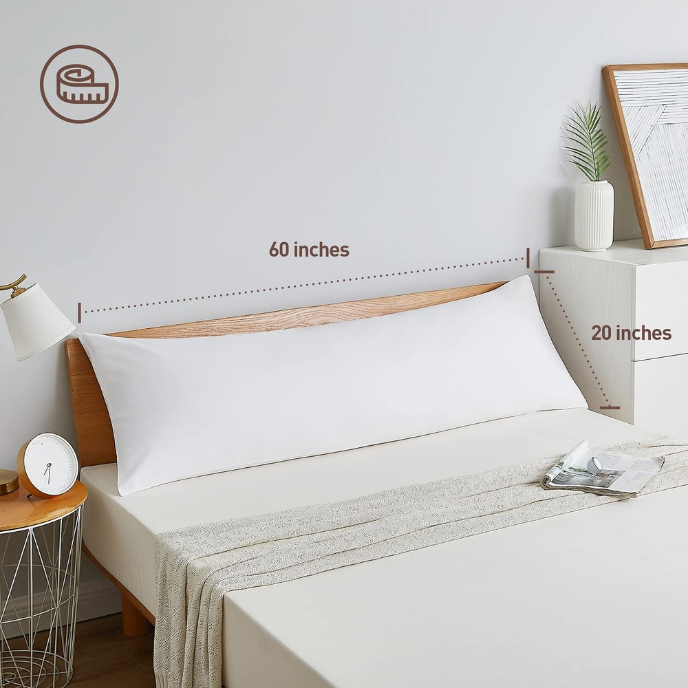 Premium 3D Fiber Filling - The long body pillow is made from quality 3D down-like fiber filling to ensure more elasticity, fluffy, and softness, providing a good bit of thickness and firmness and remaining soft and flexible enough to cradle your body. Pain & Pressure Relief - Soft yet sturdy support 20x60 inch body pillow fits the natural contours of your body to help relieve pressure from your leg, arms, and spine, while allowing for smoother and breathing and comfortable sleep. Ideal For All Sleepers - No chemical smell, no clumpy and the bed pillow won’t catch on dry skin, suitable for those with texture and sensory issues. The long pillow is made for adults and pregnancy. Help ease your body and mind while you’re sleeping, reading, relaxing, or watching TV, no whether you side sleepers, back or stomach sleepers. Hotel Sleeping Experience - Featuring extra soft filling, comfy supportive, smooth, and soft touch, the large pillow lets you experience five-star hotel luxury at home every night. Machine Washable - The big pillow for sleeping is easy to care for and machine washable cold in gentle cycle and tumble dry low. Shipped vacuum packaged and will bounce back to its original shape in seconds.