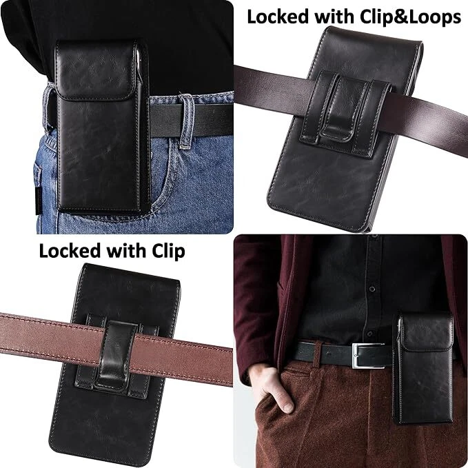 Feature: [Premium Durable PU Leather] The elegant phone holster is made of high-quality PU leather materials with metal belt clip, which not only shows a stylish and unique texture, but also protects your phone from scratches and damage. [Two-Ways to Carry] The flip phone holster has a belt clip and double belt loop. No matter wear a belt or not, you could clip the phone holster to anywhere you like,very convenient to use. The double belt loops are 2 inches wide to ensure that the cell phone belt holder is held tightly on your belt. [Secured Closure] The highly-efficient sturdy magnetic cover of phone pouch can be opened and closed safely and ensure the inside phones in place, slide the phone in and out easily. [Occasions] Suitable for construction work, camping, hiking, outdoor-living, cycling and hiking, etc.. It can also be used as a waist bag, utility belt pouch, outdoor hiking bag, or travel pouch. So convenient to use. Size: Medium is widely compatible with iPhone 15, iPhone 15 Pro, iPhone 14, iPhone 14 Pro, iPhone 13, iPhone 13 Pro, iPhone 12, iPhone 12 Pro, iPhone 11, iPhone 11 Pro, iPhone XR, Samsung Galaxy S24, Samsung Galaxy S23, Galaxy S22, Galaxy S21. Large is widely compatible with iPhone 15 Pro Max, iPhone 15 Plus, iPhone 14 Pro Max, iPhone 14 Plus, iPhone 13 Pro Max,iPhone 12 Pro Max, iPhone 11 Pro Max, iPhone XS Max, Samsung Galaxy S24+, Galaxy Fold 5/4/3, Galaxy S23+ and other folded phones. X-Large is widely compatible with Samsung Galaxy S24 Ultra, Galaxy S23 Ultra, S22 Ultra, S21 Ultra, S20 Ultra, Note 20 Ultra 5G Note 10+ Plus 5G, Google Pixel 7 Pro, Pixel 6 Pro. Package included: 1 x Holster