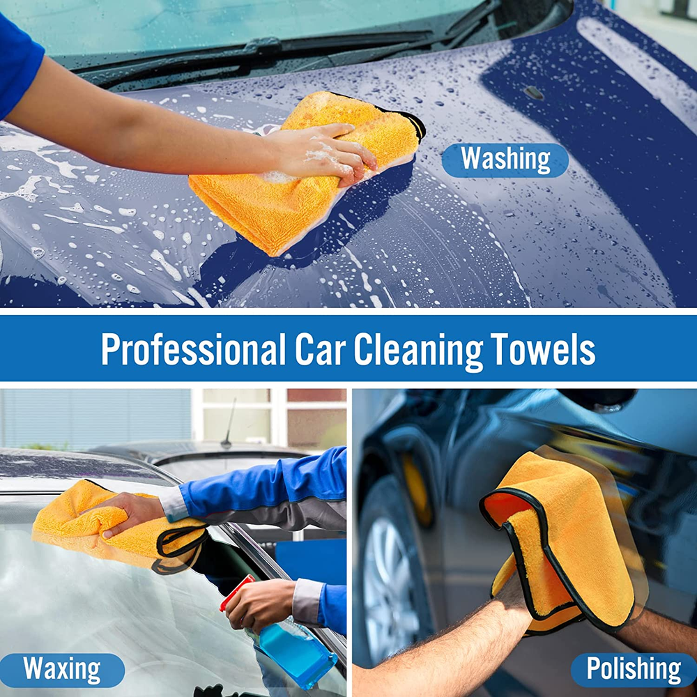 Professional Car Wash Drying Towels: Experience the ultimate car washing and detailing with our high-quality microfiber cleaning towels. These towels are designed specifically for car wash, car drying, auto detailing, polishing, and buffing. They are versatile and serve multiple purposes, saving you time and money Dual Sided And Reusable: Our premium microfiber towels feature two sides for different tasks. The plush side is perfect for removing dirt and debris, while the soft side is ideal for polishing and buffing, leaving your car with a pristine and streak-free shine. These towels are built to last,with reinforced edges that ensure durability even after machine washing them hundreds of times. You can trust that they won't lose their efficacy or shrink Super Absorbent: Our drying towels for cars are engineered with exceptional absorbency. With over 300,000 fibers per square inch, these microfiber cleaning cloths can instantly soak up 20 times their weight in water without leaving behind any lint or streaks. They are lightweight and dry quickly, making them a convenient and efficient choice for car drying Scratch Free: Our lint-free and swirl-free car wash drying towels have a non-abrasive design,ensuring they won't scratch any surfaces, including paint, stainless steel, glass, or ceramics. You can confidently touch and wipe your car without worrying about leaving scratches behind Multi-Purpose Microfiber Cleaning Cloths: Our HOMEXCEL microfiber towels are not limited to auto detailing. They have a wide range of uses in your household, such as cleaning your kitchen, bathroom, windows, tiles, mirrors, glasses, wooden and ceramic furniture, and more Product Description Features: Machine Washable Extremely Absorbent Premium Drying Towel Long Lasting Microfiber Scratch-free, Lint-free, Swirl-free Silk Reinforced Edges Further Reduce Scratches Professional Microfiber Towels for Cars HOMEXCEL focus on developing a high-quality professional towels for car lovers. HOMEXCEL microfiber cleaning towels are the best choice for cleaning,wiping,washing,drying,detailing,waxing and polishing. Microfiber towels quickly trap debris and dust or absorb water and liquids quickly without any scratch because of its super-soft dual sided material. Ideal Cleaning tool for your car. Machine Washable HOMEXCEL microfiber cleaning cloth is made with premium microfiber which has ability to withstand hundreds of washings without losing its efficacy and softness. Super Water Absorbency Microfiber Car Towel is able to absorb 20x its weight in liquid which could quickly pick up water and liquids. Perfect for drying any car, boat, truck, motorcycle after washing without streak-free left behind. Premium Microfiber Towels Extremely soft and non-abrasive microfiber cloths could get effective cleaning under wet and dry conditions. The soft fabric absorbs and traps abrasive debris and dirt quickly and prevent any scratches on paints, glass and stainless steel.
