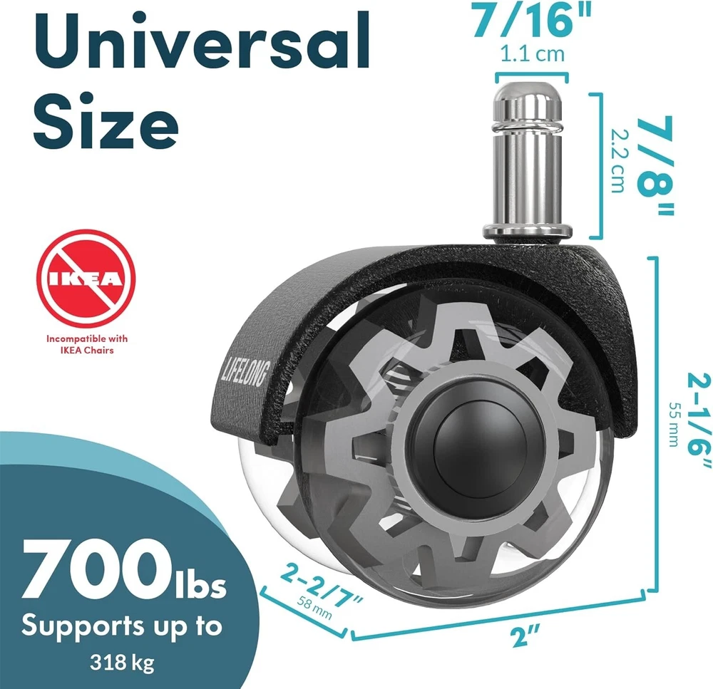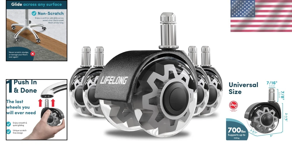Premium Rubber Chair Casters - Safe for Hardwood and Carpet Floors, Set of 5 ‹ › ‹ › ‹ › ‹ › ‹ › ‹ › ‹ › ‹ › Premium Rubber Chair Casters - Set of 5 The Last Office Chair Wheels You'll Need Features: Heavy-duty construction with industrial-grade steel, precision ball bearings, and durable polyurethane material. Compatible with most office chairs (not compatible with IKEA chairs) - stem size: 7/16" x 7/8". Will not scratch, smudge or damage hardwood, laminate, vinyl, tile, or carpet floors. Smooth rolling action with a load capacity of up to 700 lbs. Quiet operation ensures you glide silently across your workspace. Benefits: Eliminate the need for desk chair mats with safe floor gliding. Heavy-duty design ensures longevity and resilience against wear and tear. Reliable mobility solution for home office or corporate environments. Perfect for various flooring surfaces; glide effortlessly without damaging your floors. Easy installation and replacement for most office chairs. Why Choose Our Premium Rubber Chair Casters? Transform your workspace with our Premium Rubber Chair Casters - the ultimate solution for anyone seeking durability, sleek design, and reliable performance. With industrial-grade materials, these heavy-duty casters glide seamlessly over any surface, maintaining the integrity of your floors while keeping your office chair as mobile as you need it to be. No more concerns about the noise and damage caused by standard wheels. Our casters provide a smooth and quiet experience, handling weights up to 700 lbs, making them suitable for every workspace scenario. Elevate your office experience and invest in a set of chair wheels that will stand the test of time. Order your set today and experience a difference in gliding comfort and floor safety! Shipping Free & Fast Shipping - We offer free shipping to most of the USA with a normal delivery time of 3-7 days. However, due to the current situation, additional delivery time (up to 3 weeks) may be required for some items. Alternative Carriers - We may use alternative carriers (e.g. USPS, FedEx, UPS, etc.) to ensure your package arrives safely and on time. Due to the use of multiple carriers, we are unable to provide a tracking number automatically. Handling Time - Orders are processed and shipped within 1-2 business days of receiving cleared payment. Shipping Restrictions - Shipping to Alaska, Hawaii, Puerto Rico, Guam, and other US territories may incur shipping charges or delivery restrictions. Please contact us before ordering, or your order can be refunded/cancelled. State Restrictions - There may be restrictions based on your state of purchase. For example, certain items may not be shipped to California due to state regulations. Contact for Tracking Updates - If you require tracking updates or have any concerns about the delivery of your order, please feel free to contact us, and we will be happy to assist you. Return 30-Day Hassle-Free Returns - We want you to be completely satisfied with your purchase. If you are not, you can return the item within 30 days of receiving it for a full refund or exchange. Easy Return Process - To start a return, simply contact us and we will provide you with a prepaid return shipping label and detailed instructions. Restocking Fee - There are no restocking fees for returns. However, the buyer is responsible for return shipping costs if the return is not due to a seller's error. Refund Processing Time - Refunds will be processed within 5 business days of receiving the returned item in its original condition. Payment We accept all major credit cards, PayPal, and Apple Pay for your convenience. Your payment information is secure and encrypted to ensure a safe and seamless transaction. Please complete your payment within 3 days of purchase to avoid any delays in shipping. Feedback Your feedback is extremely important to us. We strive to provide the best products and customer service possible. If you are satisfied with your purchase, please take a moment to leave us a positive review. If you have any concerns or issues with your order, please contact us before leaving negative feedback. We are committed to resolving any problems and ensuring your satisfaction. Contact Us If you have any questions or concerns, please feel free to reach out to our customer support team. You can contact us through the eBay messaging system. We are available Monday to Friday, 9:00 am to 5:00 pm EST, and we will do our best to respond to your inquiry within 24 hours. Buy it now and enjoy a pleasant shopping experience! UPC: Not Set Model: Not Set MPN: Not Set Unit Quantity: 2 Brand: Unbranded Country/Region of Manufacture: Not Set Unit Type: Not Set