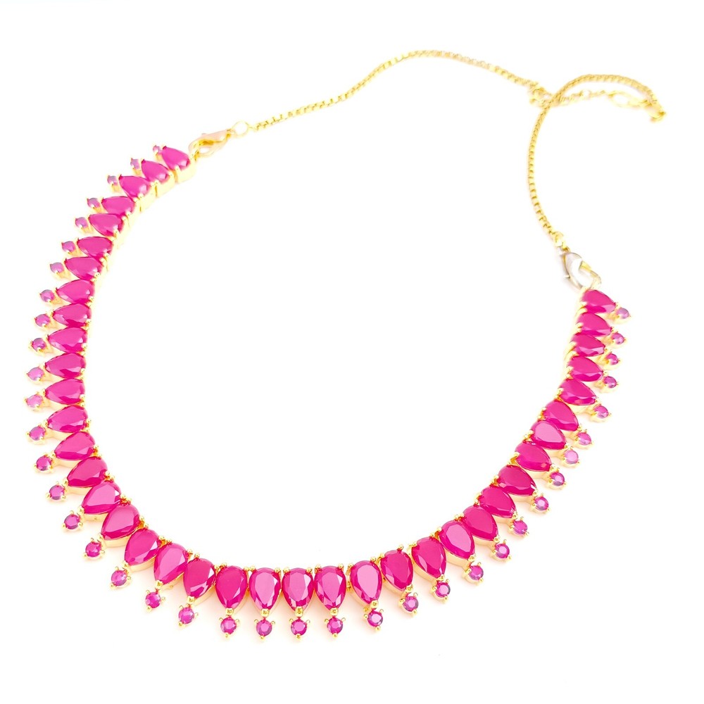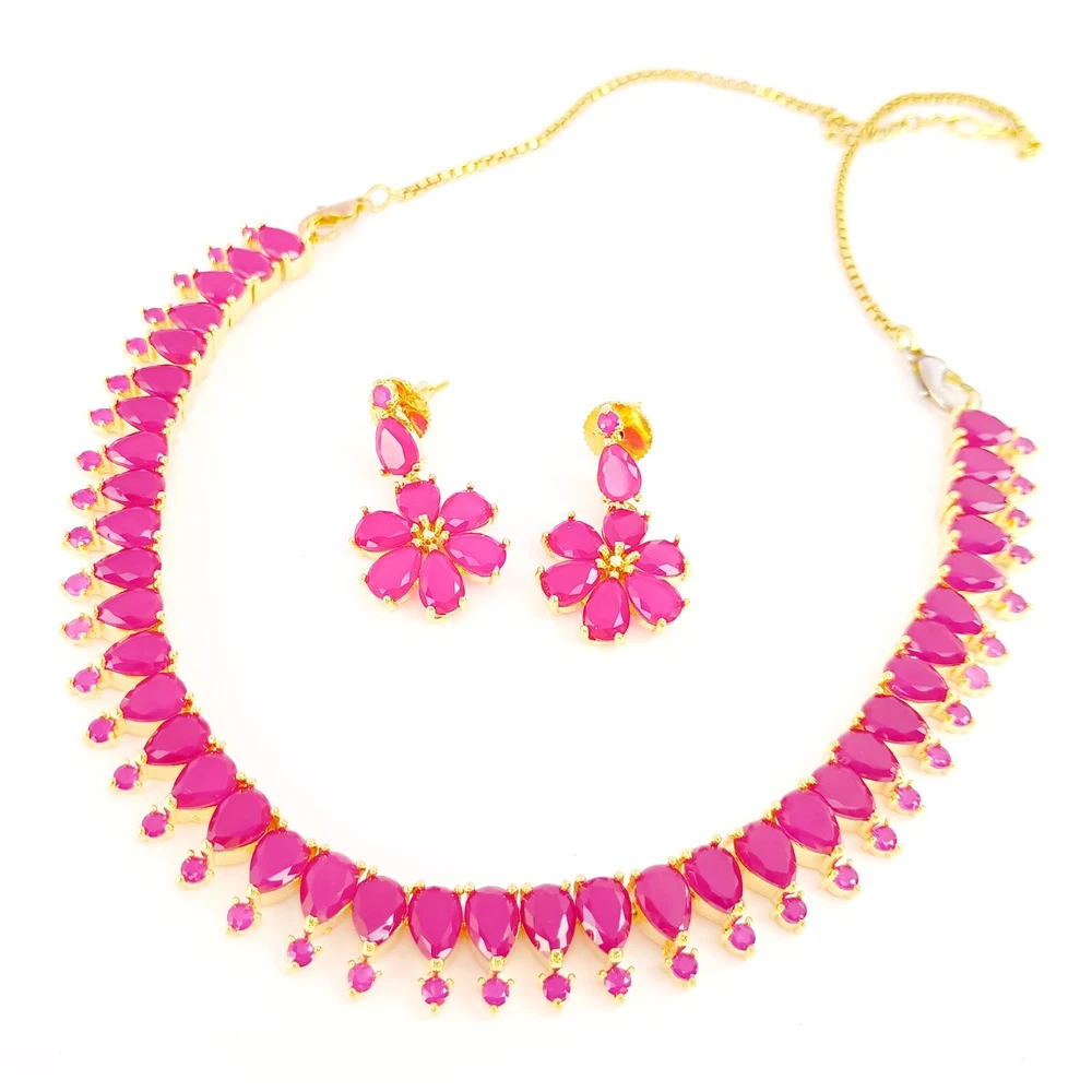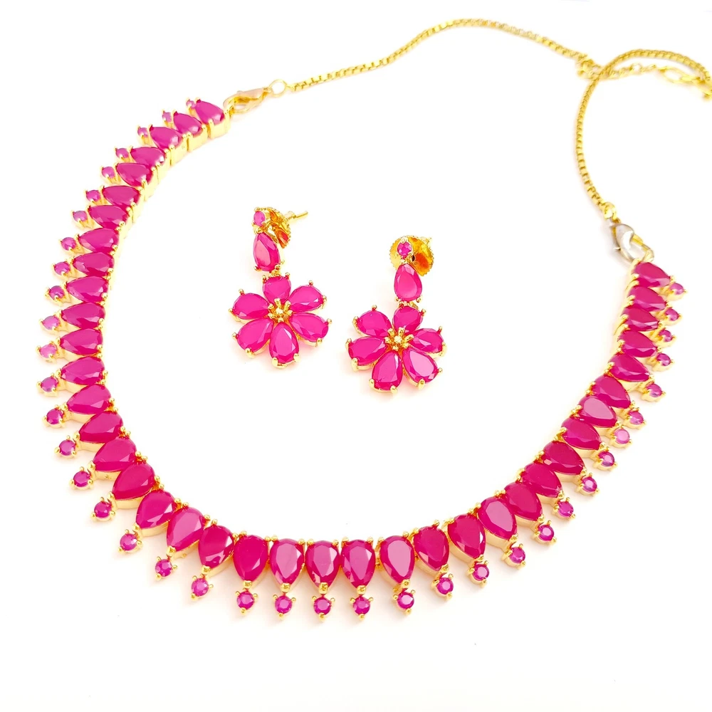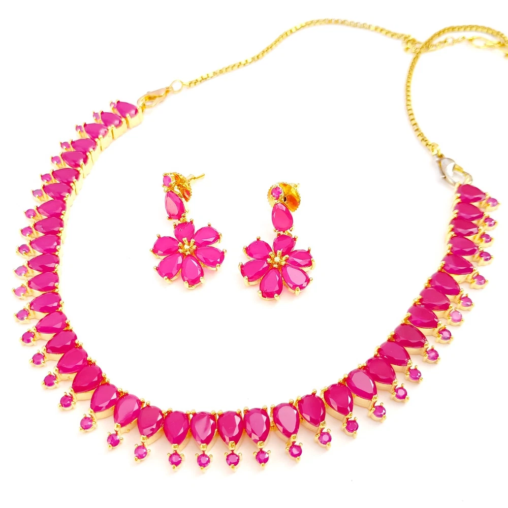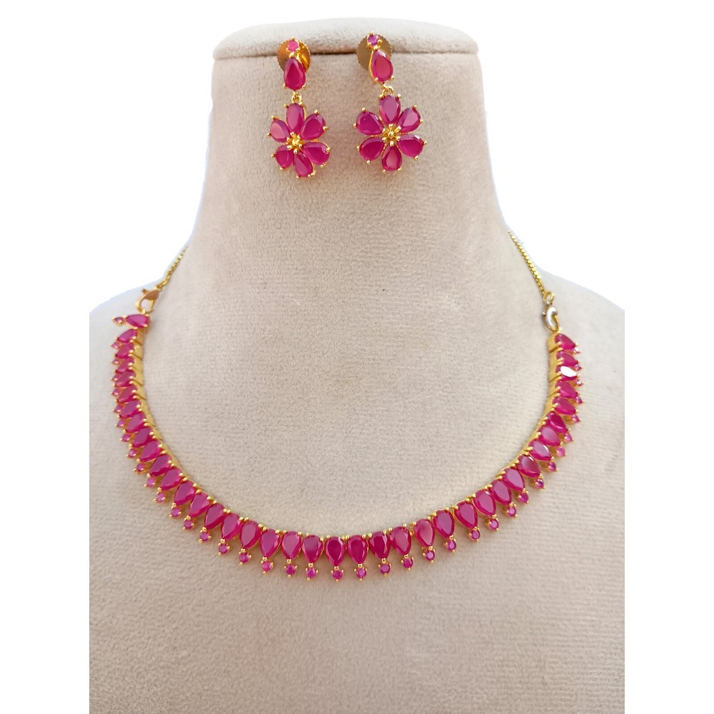 Gold Plated Ruby Stone Necklace & Earring set | Stud Earring Traditional jewelry