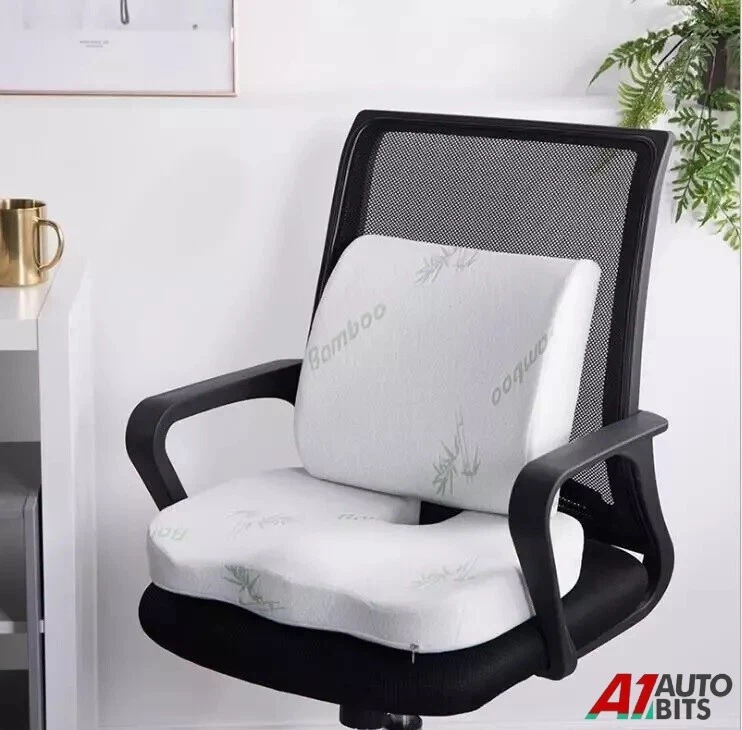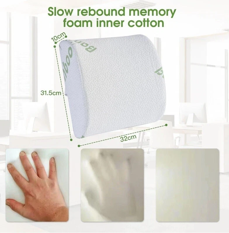 LUXURY PREMIUM BAMBOO FIBER SOFT MEMORY FOAM LUMBAR SUPPORT & PILLOW SET , ANTI-BACTERIAL •FABULOUS MEMORY FOAM: -The latest in memory foam shredded technology is used. •ANTIBACTERIAL BAMBOO MATERIAL: -The state-of-the-art bamboo material has inbuilt anti-bacterial properties, creating a clean, comfortable and healthy place. •HYPOALLERGENIC HEALTH BENEFITS: -Those with sensitive systems will adore this pillow, equipped with the natural hypoallergenic properties of bamboo allowing you to rest more comfortably free from the worry of irritating allergens. •WONDERFULLY COMFORTABLE: -This exceptional memory foam pillow can also help reduce pain. •EXPERTLY DESIGNED AND MANUFACTURED: -High-quality material and superb craftsmanship. Material: 40% Rayon from Bamboo + 60% Polyester + Memory foam Size: Lumbar support - 31.5 x 32 X 10 cm Pillow - 45 x 35X 7 cm Package Includes: 1x Memory Foam Lumbar Support Pillow 1x Memory Foam Seat Pillow LUXURY PREMIUM BAMBOO FIBER SOFT MEMORY FOAM LUMBAR SUPPORT & PILLOW SET , ANTI-BACTERIAL -The latest in memory foam shredded technology is used. •ANTIBACTERIAL BAMBOO MATERIAL: -The state-of-the-art bamboo material has inbuilt anti-bacterial properties, creating a clean, comfortable and healthy place. •HYPOALLERGENIC HEALTH BENEFITS: -Those with sensitive systems will adore this pillow, equipped with the natural hypoallergenic properties of bamboo allowing you to rest more comfortably free from the worry of irritating allergens. -This exceptional memory foam pillow can also help reduce pain. •EXPERTLY DESIGNED AND MANUFACTURED: -High-quality material and superb craftsmanship. 40% Rayon from Bamboo + 60% Polyester + Memory foam Lumbar support - 31.5 x 32 X 10 cm 1x Memory Foam Lumbar Supp