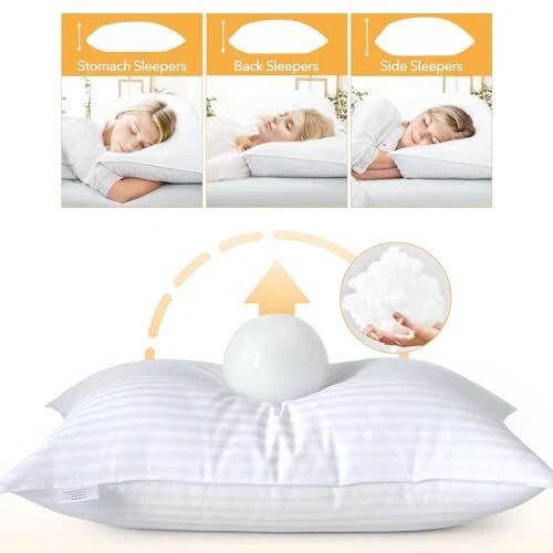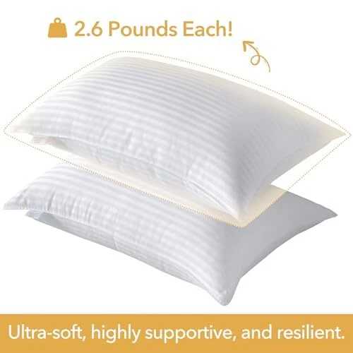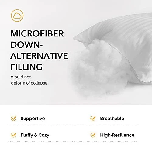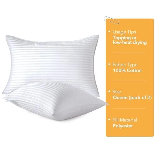 Return Policy Fast Delivery Trusted seller Premium Striped Bed Pillows Queen Size Set of 2, Breathable Cooling Cotton Cover, Soft and Fluffy 3D Down Alternative Microfiber Filled for Side Back and Stomach Sleepers, 20"x30" Product Description 100% Cotton Cover Luxury Hotel Bed Pillows: A pack of two queen bed pillows, each weighing 2.65 pounds! Vacuum-sealed for shipping. We provide plenty of filling for our pillows, and they're shaped all around. Note: The bed pillows may not be fluffy immediately after opening, you can press it to speed up its return to its original shape. Soft and Fluffy: These bed pillows are filled with a abundant amount of high-quality 100% 3D microfiber polymester filling, which is noiseless, ultra-soft, highly supportive, and resilient. The filling is evenly distributed, providing comfortable support for your neck and shoulders. After multiple optimizations, support and comfort are perfectly balanced. Healthy Breathable Cover: The stripe pattern on the 100%cotton pillow cover is woven using a diagonal high-density technique, greatly enhancing the durability and longevity of the pillow. It maintains its shape and gives the pillow a neat appearance while reducing wrinkles on the surface of the pillowcase, improving facial comfort during sleep. Usage Tips: For a quick fluff, we fully support heating the pillow in a medium to low heat dryer for 10 to 15 minutes. We recommend exposing the pillow to sunlight after pressing and tapping. This not only helps with fluffiness but for healthy. Easy Care: Our bed pillows can be machine-washed with a mild detergent and tumble-dried. Regular cleaning helps keep the pillows durable and fluffy. Shipping Returns Payment Shipping Shipping is FREE to all addresses other than APO/PO boxes in the lower 48 states. All our stock ships from US-based warehouses. Shipped via USPS or UPS (depending on location and package weight) Unless stated otherwise, all orders will ship within 24-72 hours of your payment being processed. Check our feedback to see the great reviews of FAST shipping we offer. Returns Seller does not accept returns Payment We currently accept payment via eBay managed payments only. Once payment is cleared, we will dispatch your shipment within 1-3 business days. Please refer to the "Shipping" tab for more information regarding shipping speed to your destination.