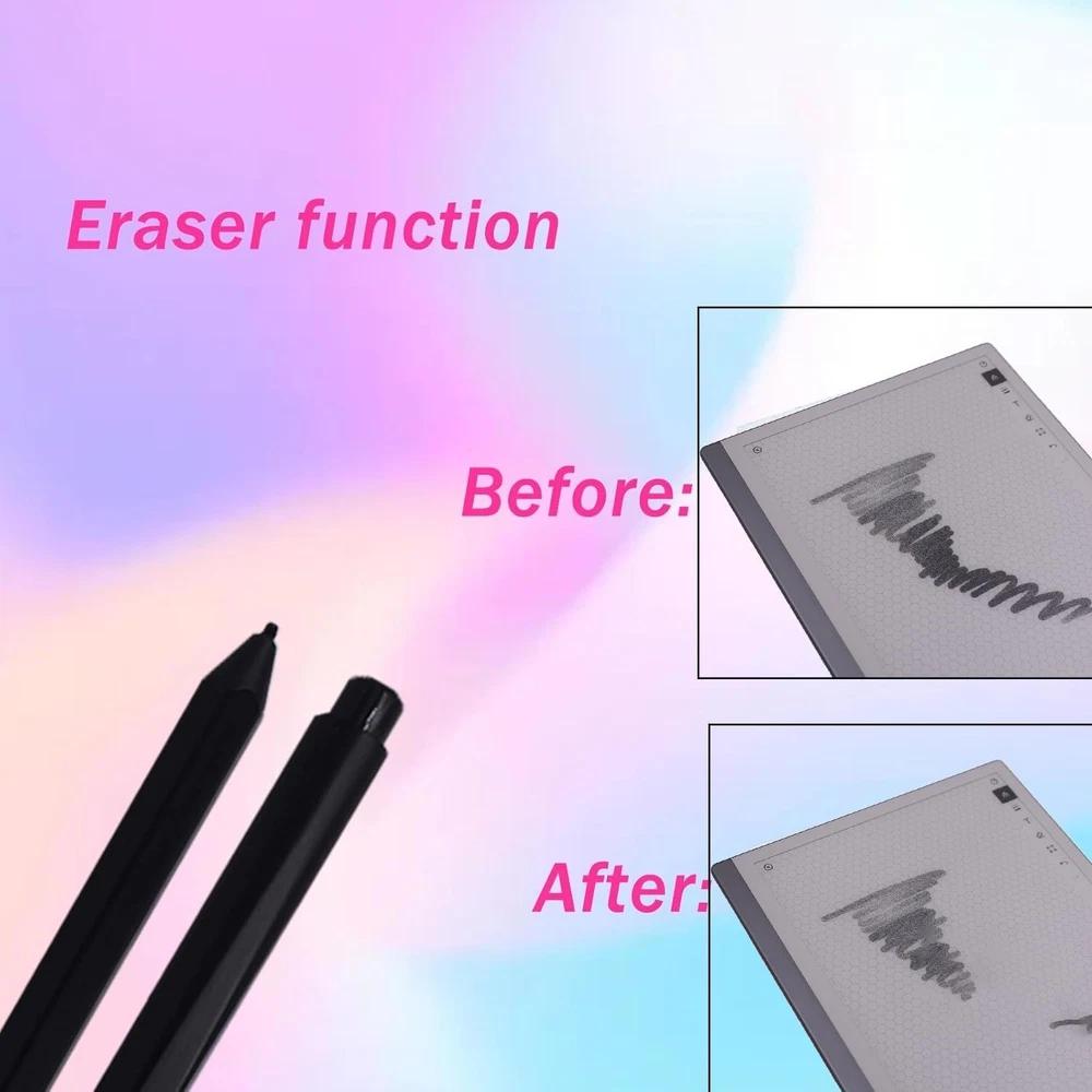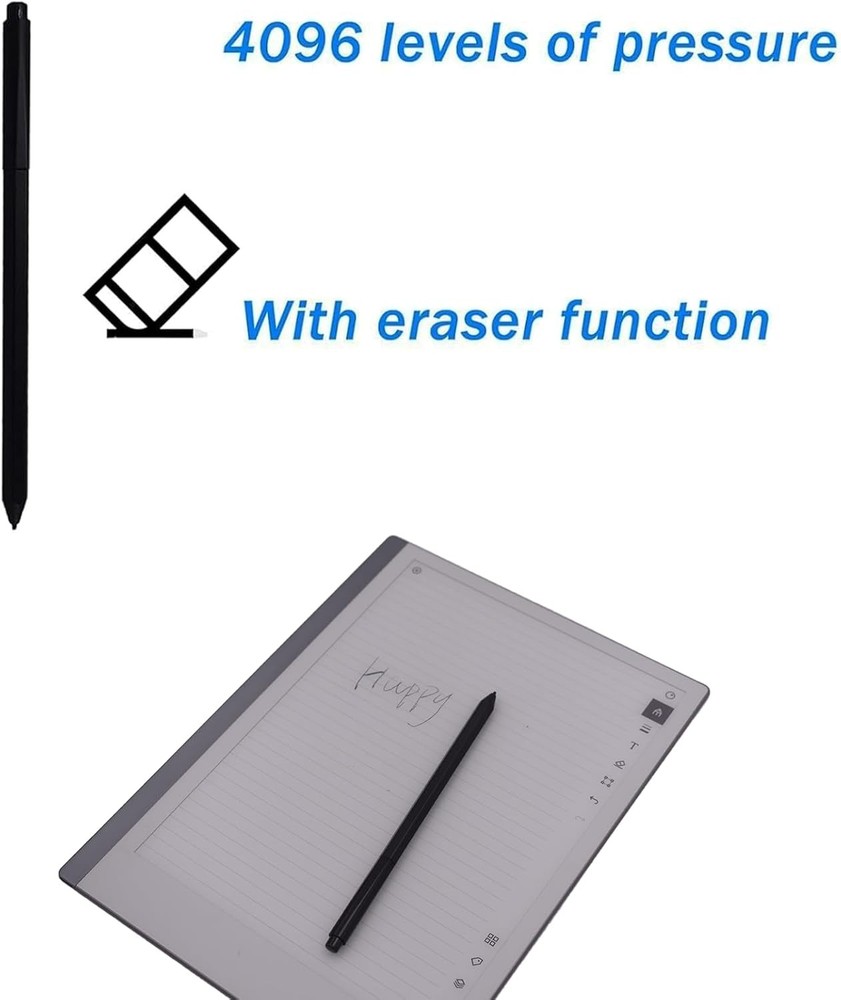 Pen for Remarkable 1/2 Tablet with Eraser, Stylus Black Product Details Product Dimensions: 0.79 x 0.39 x 0.39 inches Item Weight: 0.176 ounces Item model number: PPP-DELL-EMR-Pen-828TT-Remarkable Manufacturer: Peixiong Color: Black Brand: Peixiong Material: Plastic Item Weight: 5 Grams Compatible Devices: Remarkable 2 Item dimensions L x W x H: 0.79 x 0.39 x 0.39 inches Are Batteries Included: No Batteries Required?: No Compatibility device: EMR Stylus Pen replacement compatible with Remarkable 2 Tablet, for Remarkable 1 Tablet. Useful function: When using the eraser function, simply flip pen for remarkable 1/2 tablet pen with eraser over and easily erase any excess lines or text. High precision: Stylus pen for remarkable 2 pen replacement has 4,096 pressure sensitivities and a significantly smaller tip diameter than traditional capacitive pens for a smooth writing experience. 4096 Pressure Sensitivity: Stylus Pen for Remarkable 2 Pen Replacement with 4096 pressure sensitivity supports greater precision and control, allowing you to write and draw on digital devices in a variety of ways, just like you would with a traditional pen. Smooth operation: Ideal for taking notes, making complex and detailed sketches and drawings.