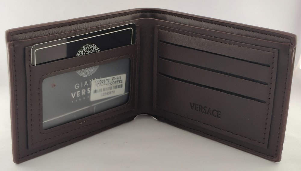 Color: Brown Features: Credit Card, Folding Personalize: No Style: Bifold Type: Wallet Material: Leather Vintage: No Department: Men Country of Origin: Italy Brand: Versace
