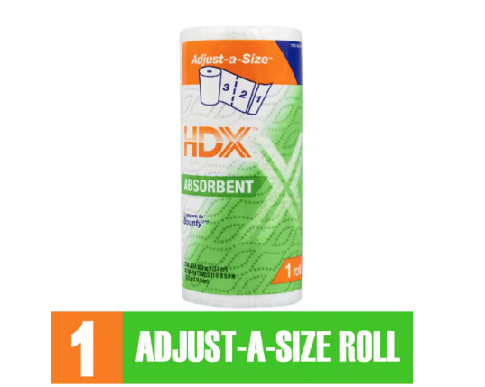 About This Product Our super strong and ultra-absorbent paper towels are ideal for all of your home maintenance and home improvement needs. Whether you are painting, building, renovating, cleaning, cooking or washing your hands, make sure you always have HDX paper towels within arm's reach. Our Adjust-A-Size sheets also make it easy for you to use as much as you need without being wasteful. Highlights Sustainable Forestry Initiative Certified Sourcing Super Strong and Ultra Absorbent Long lasting rolls Quickly absorbs messes and spills Each sheet is 11 x 5.9