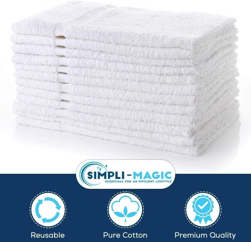 Cotton Hand Towels, 16"x27", 12 Pack, White 100% Cotton Made with 100% Cotton - These Hand Towels are Soft and Plush - Providing Great Absorbency and Quick Drying Includes 12 Towels - Use Them Anywhere Including: Bathrooms, Gym Bags, Guest Rooms - There Are Plenty For The Entire Household In This 12 Value Pack Hand Towels are the Perfect Length Measuring 16"x27" - Ideal for Nail/Hair Salons, Gyms, Businesses and Households Easy Care: Hand Towels are Machine Washable and Fast Drying Please Note that Cotton Does Have Lint Cotton Hand Towels, 16"x27", 12 Pack, White