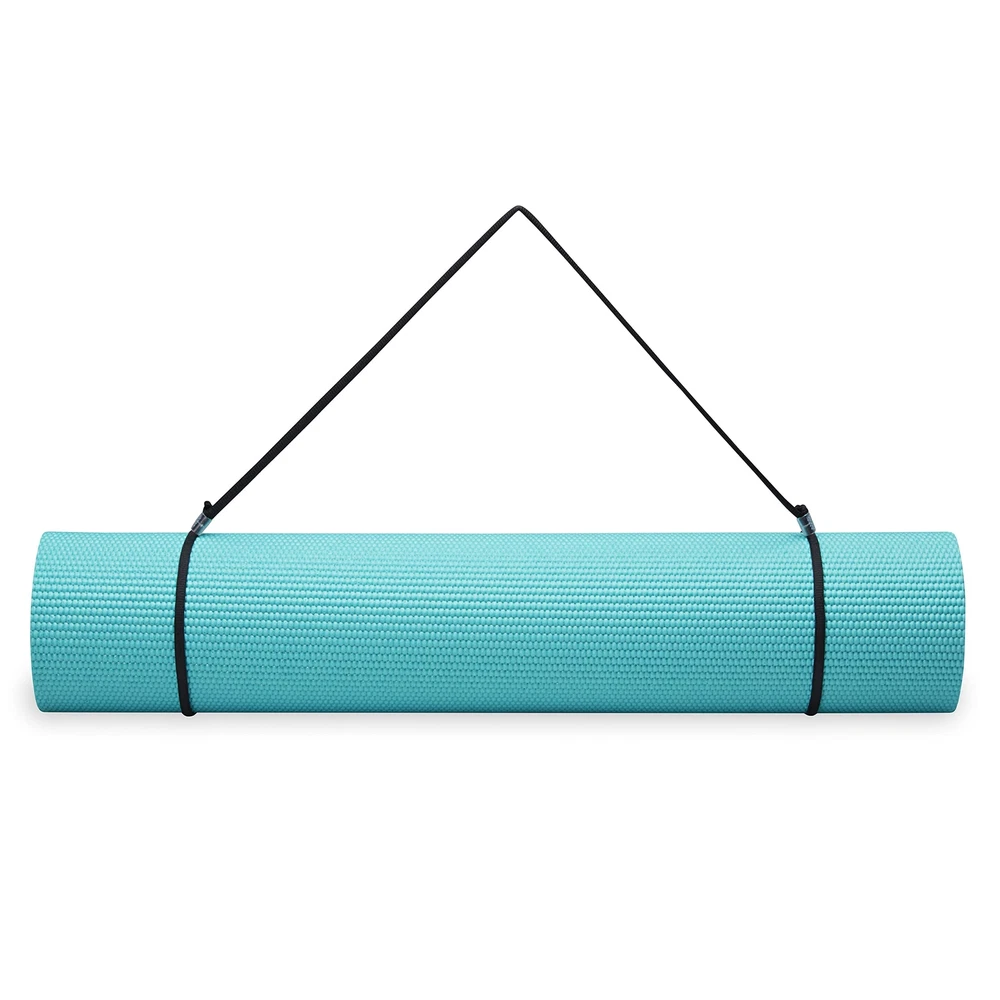 Our classic yoga mat is great for all types of fitness and exercise routines including yoga, Pilates and floor exercise where additional cushion and support is appreciated. We include a convenient carrying strap. These 2/5 inch extra thick exercise mats make for the ideal all purpose fitness mat in the studio or at home even around the house under knees or as a standing pad or cushion. The thick mat helps with comfort and stability. This yoga mat made of NBR foam is designed to provide soft cushioning with the padded material for comfortable stretching and posing - an ideal yoga mat for beginners with comfort in mind. With your yoga mat, you will also receive the easy-cinch adjustable yoga mat strap carrying sling with loops that are specifically designed for yoga mats so you can strap up your mat on-the-go. The yoga mat measures 72 inches long x 24 inches wide x 2/5 Inch thick (3.11 pounds). CLASSIC YOGA MAT: These durable, yet lightweight exercise yoga mats are extra thick (1/4 Inch) for the additional cushioning your joints need during any yoga or fitness routine STICKY NON SLIP TEXTURE: Yoga mat is featured in classic colors with a textured non slip surface for excellent traction and superior grip in all types of yoga, even heated practices and hot yoga NON TOXIC and 6P FREE PVC yoga mat is a healthier choice for you and the planet and free of DEHP, DBP, BBP, DINP, DIDP and DNOP (For best results unroll and air out your mat for 2 to 3 days before use) INCLUDES YOGA MAT CARRIER SLING: Included with your yoga mat is a carrying sling/strap so you can strap up your mat and go DIMENSIONS: 72 inches L x 24 inches W x 1/4 inch thick (3.5 pounds) Sport Type: Gymnastics