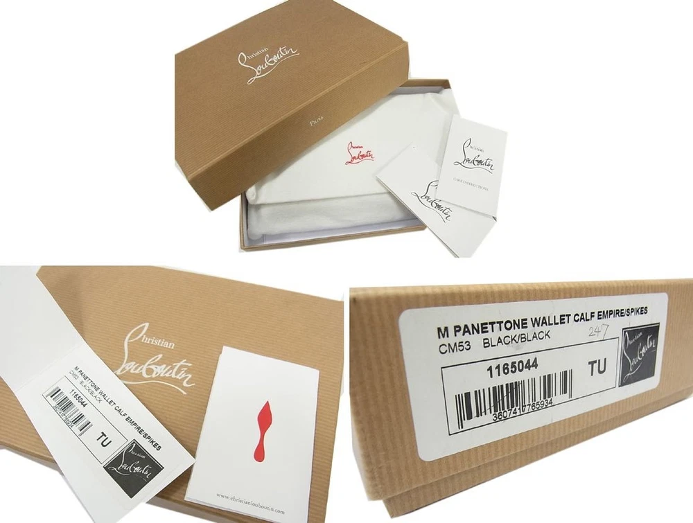 Used Christian Louboutin Panetone Spike Studs Long Wallet Black Bag Key Features **Christian Louboutin Round Zip Wallet** - **Brand:** Christian Louboutin - **Product Type:** Long Wallet - **Model:** N/A - **Size:** 11cm (H) x 19cm (W) x 2.5cm (D) - **Color:** Black - **Material:** Leather - **Lining Color:** Red - **Closure:** Round zipper - **Features:** - Durable body with spike studs design - Spacious opening for easy access - Iconic red interior and red sole motif on zipper pull - **Condition:** - Rank: AA - Light scratches present, but overall in excellent condition - **Accessories:** Includes storage bag and box - **Country of Manufacture:** Italy This luxurious wallet is a statement piece, perfect for any occasion. Specifications Brand Christian Louboutin Country Japan Product Description Please feel free to contact us by message for further information on the detailed condition of the item. We may be able to offer a small discount on some items. Shipping We will ship by eBay SpeedPAK – Ship via FedEx or DHL. We usually ship within 10 business days of receiving cleared payment. It will be securely packed and shipped. We can only ship to the address listed in your eBay account. We can't accept address changes after purchase, so please be sure to change your address in advance if necessary. Depending on your location, there may be special charges in addition to regular shipping charges. About Us We are located in Japan. It's our pleasure to make you happy by proposing our recommend item. If you have any questions or request about items, please feel free to ask us. International Buyers - Please Note: Import duties, taxes, and charges are not included in the item price or shipping cost. These charges are the buyer's responsibility. Please check with your country's customs office to determine what these additional costs will be prior to bidding or buying. Thank you for your understanding.